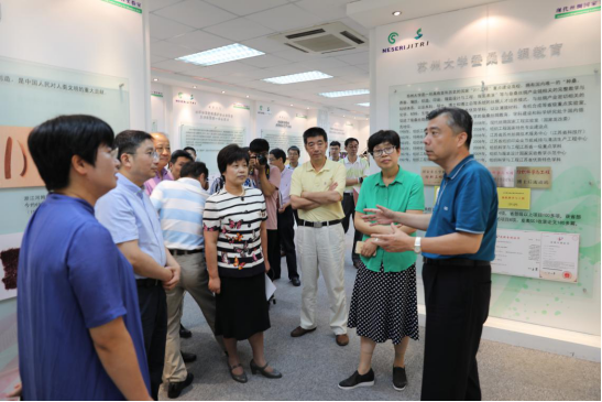 参观结束后,阎立对苏州大学现代丝绸国家工程实验室的发展及所取得的成果表示肯定。他强调,国家提出"一带一路"战略,丝绸作为古代丝绸之路上的主要商品,如今仍具有重要的政治、经济及历史文化意义。苏州大学拥有完整的丝绸产业链学科群和相关支撑学科体系,要注重科技成果转化,加强与企业间的合作,努力为企业做好技术支撑。他希望苏州大学在近年来取得快速发展的基础上,能继续结合自身专业特色优势,在引领产业发展的道路上走在全国前列。