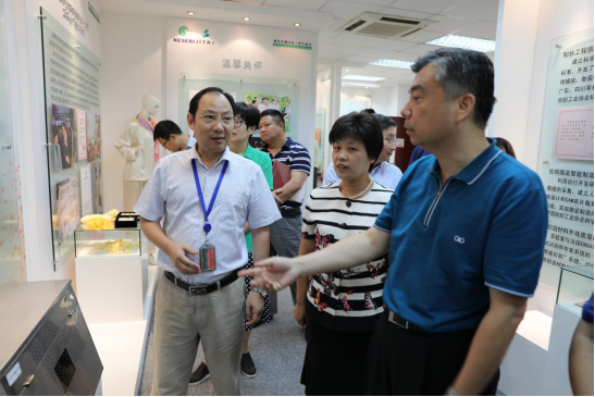 在现代丝绸国家工程实验室展示厅,纺织与服装工程学院院长潘志娟首先向调研团讲述了我校蚕桑丝绸教育的办学历程,并围绕国内外交流与合作、高水平工程技术研究、人才开发情况以及丝绸产品的生态化染整加工、蚕丝蛋白的医用生物材料等技术成果简要介绍了我校现代丝绸国家工程实验室的发展现状。