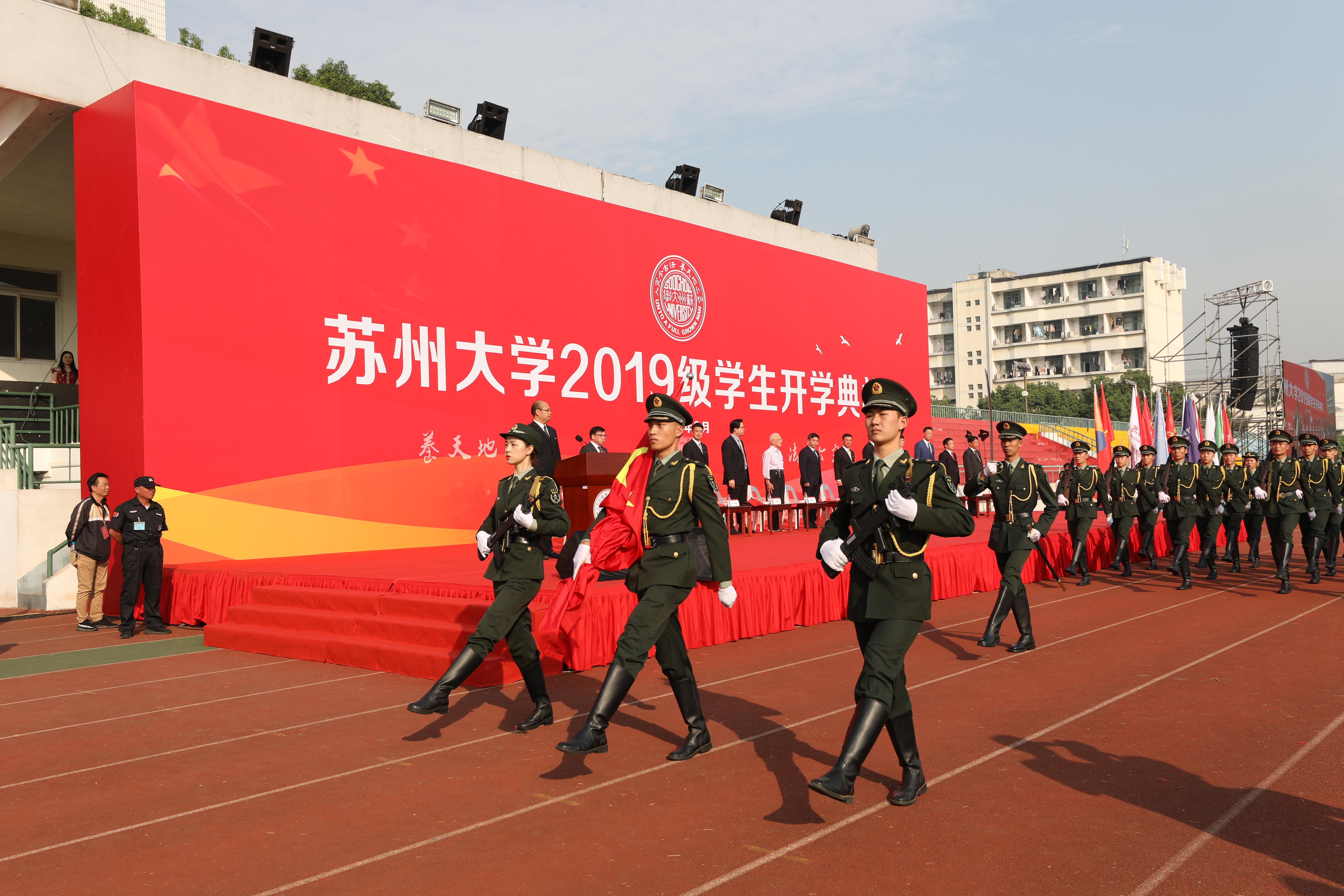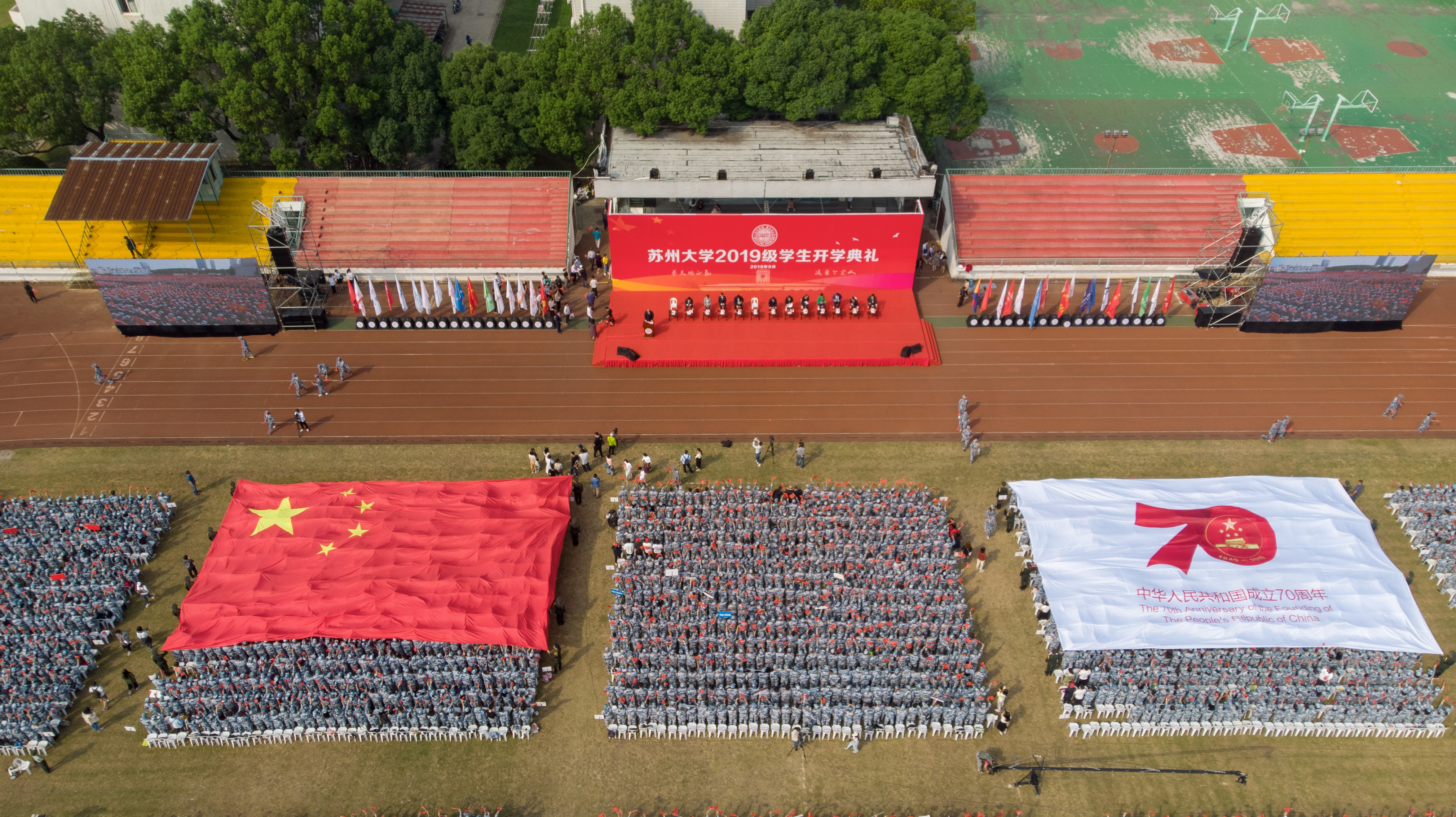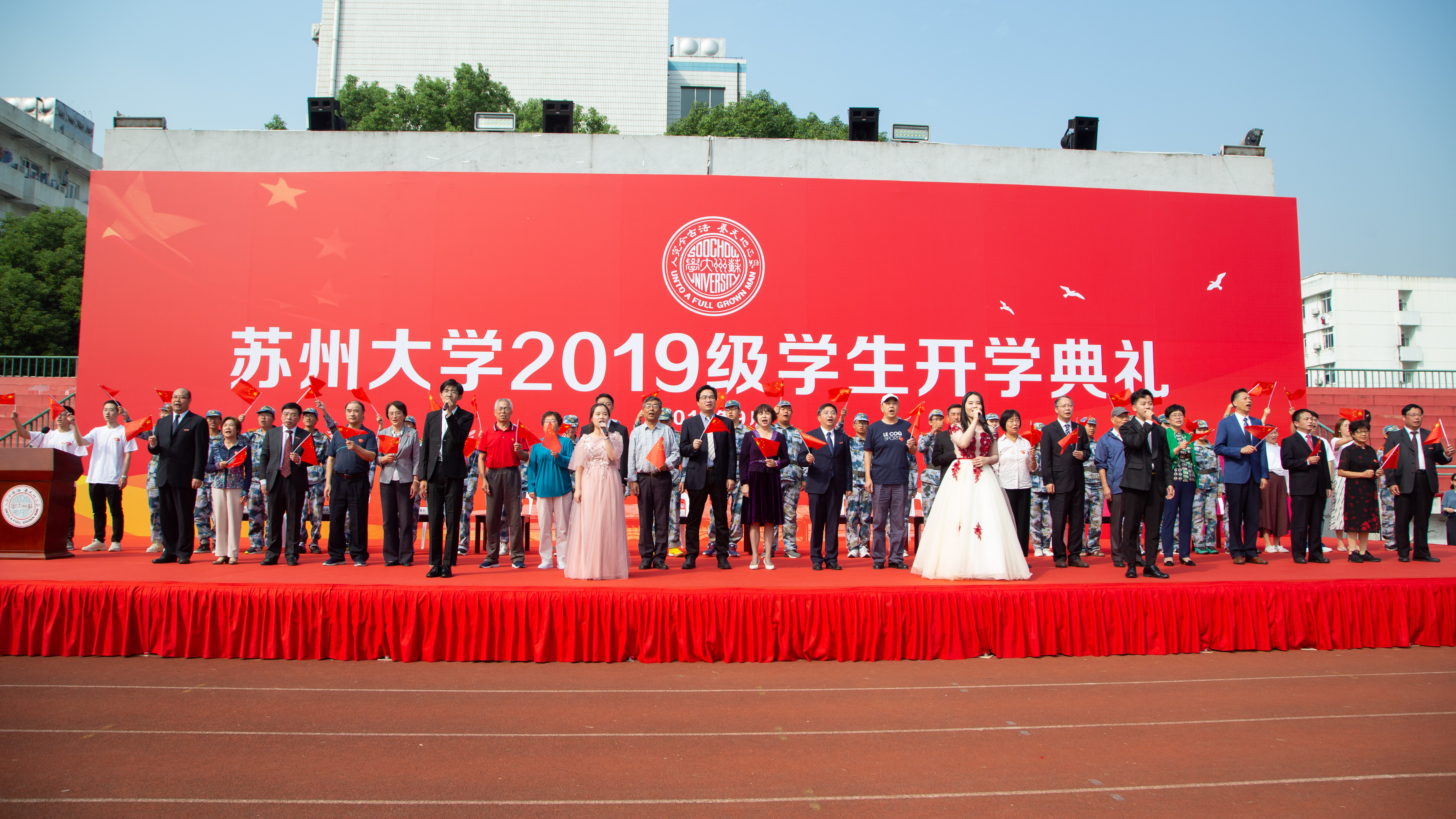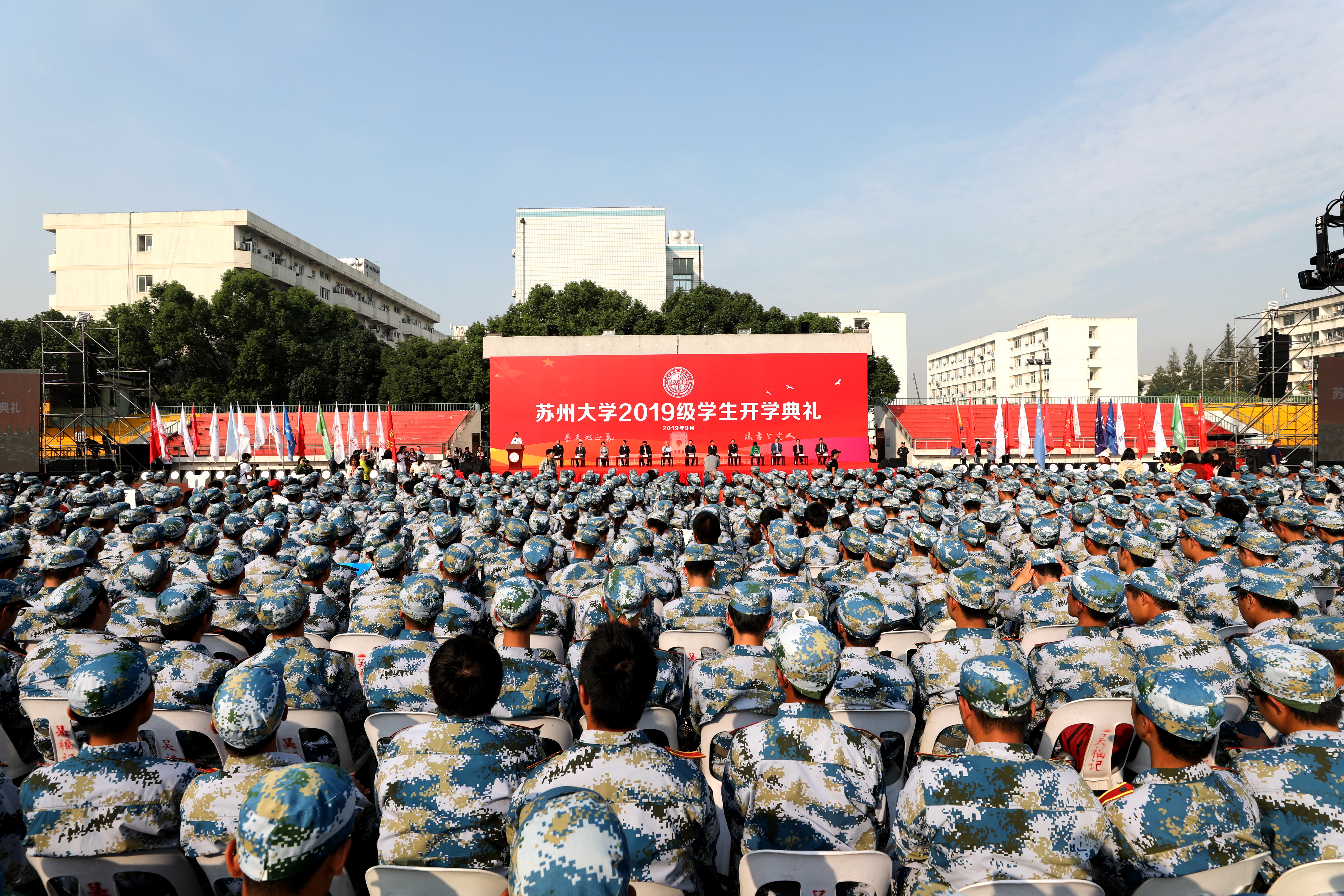 金秋时节,丹桂飘香。9月25日上午,来自五湖四海的12603名2019级新生齐聚天赐庄校区东区体育场,共同迎来了苏州大学2019级学生开学典礼。