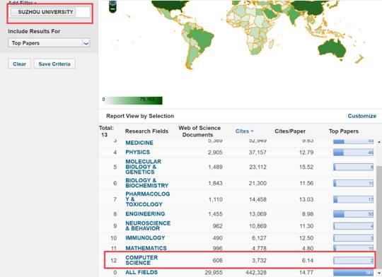 统计数据显示,在本次ESI数据统计区间内,苏大在计算机科学学科领域共发表SCI论文608篇,总被引用3732次,篇均被引用6.14次。这些数据反映了计算机科学学科已迈入世界前列,在科研能力、创新能力、学科建设能力等方面具有较高的学术影响力及同行认可度。