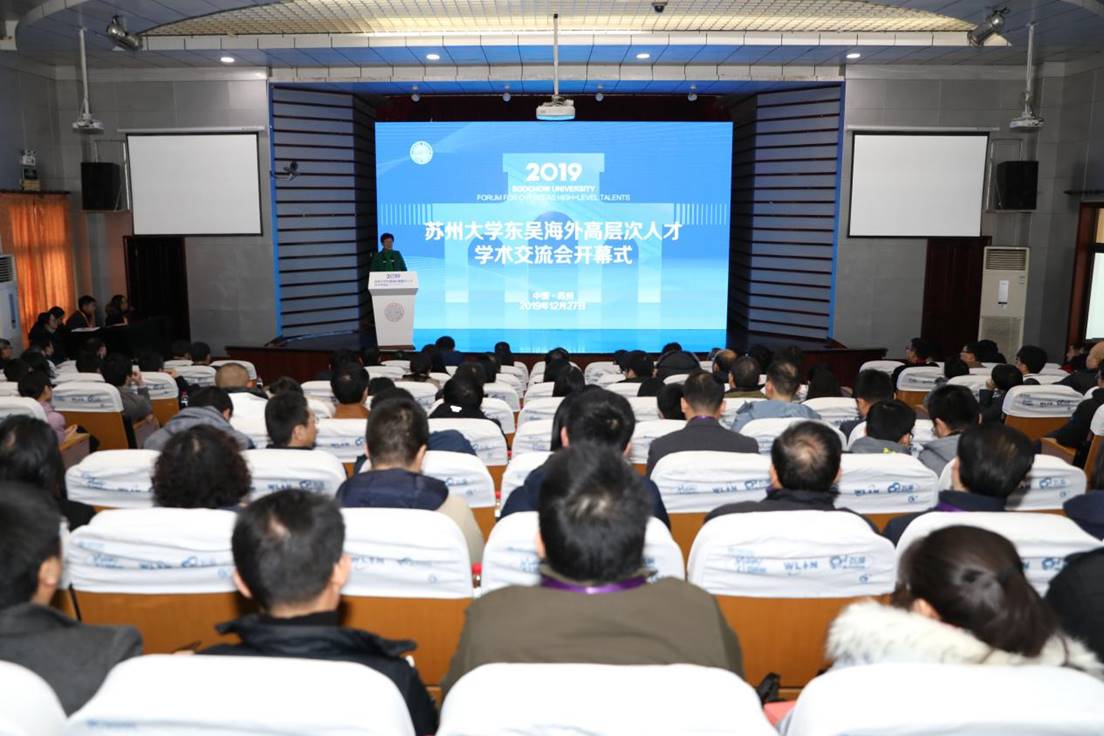12月27日,2019苏州大学东吴海外高层次人才学术交流会开幕式在本部学术报告厅举行。来自12个国家和地区的60名受邀学者共聚一堂,共同开展学术前沿问题探讨,相互借鉴学习。中科院院士、医学部放射医学与防护学院院长柴之芳,校领导熊思东、路建美、蒋星红、芮国强、张晓宏,相关部门负责人、各学院(部)党政负责人参加会议。会议由校党委副书记、副校长路建美主持。