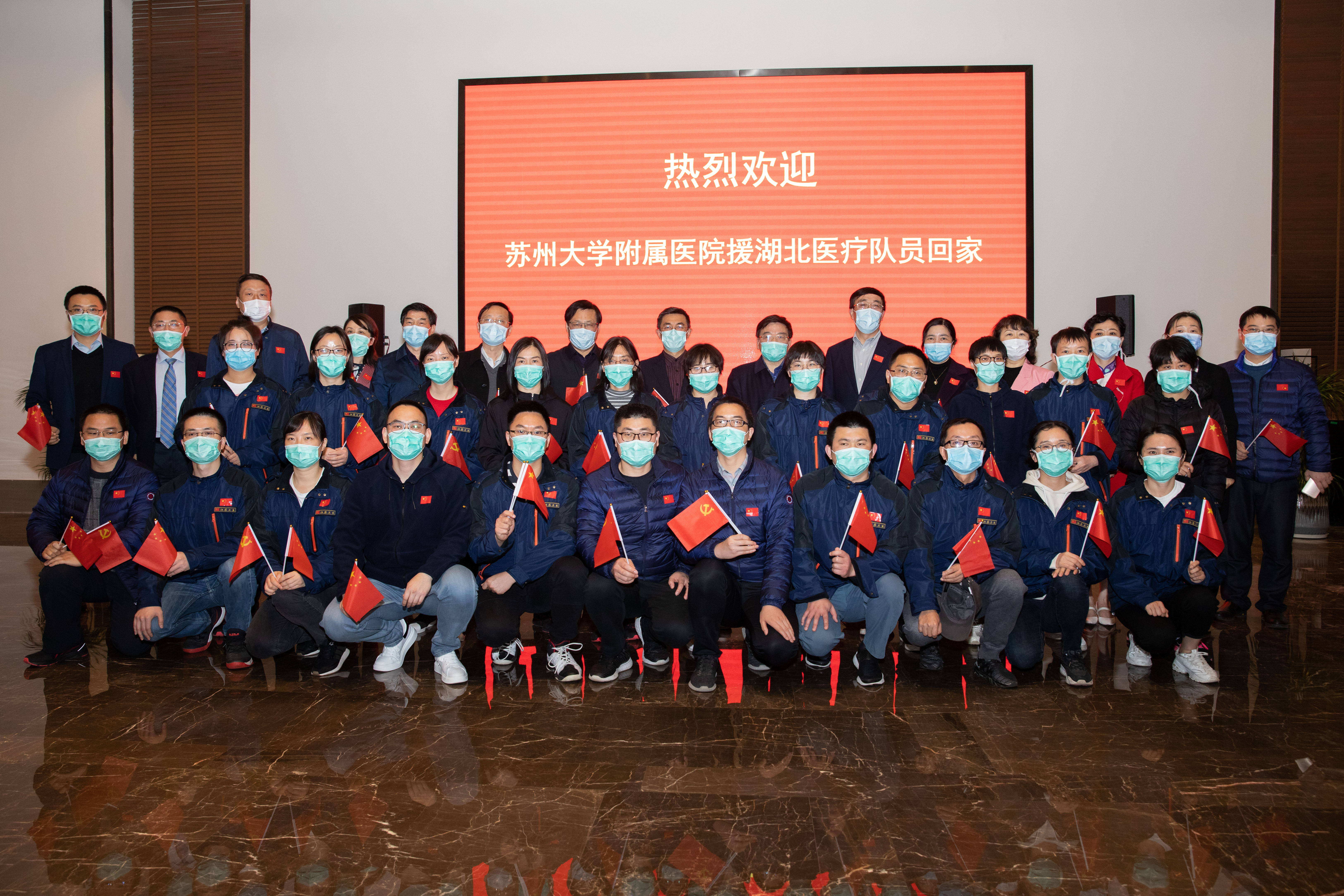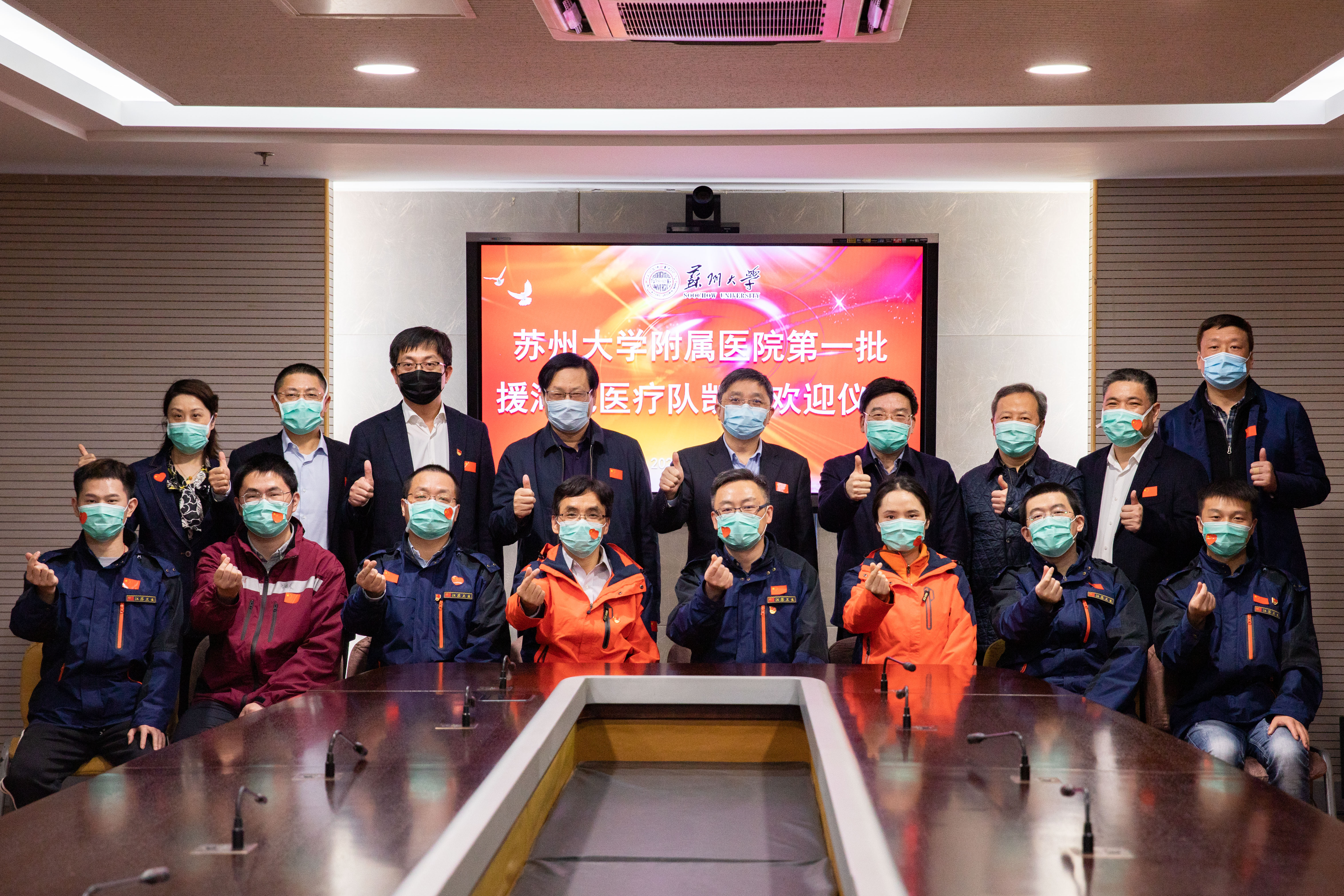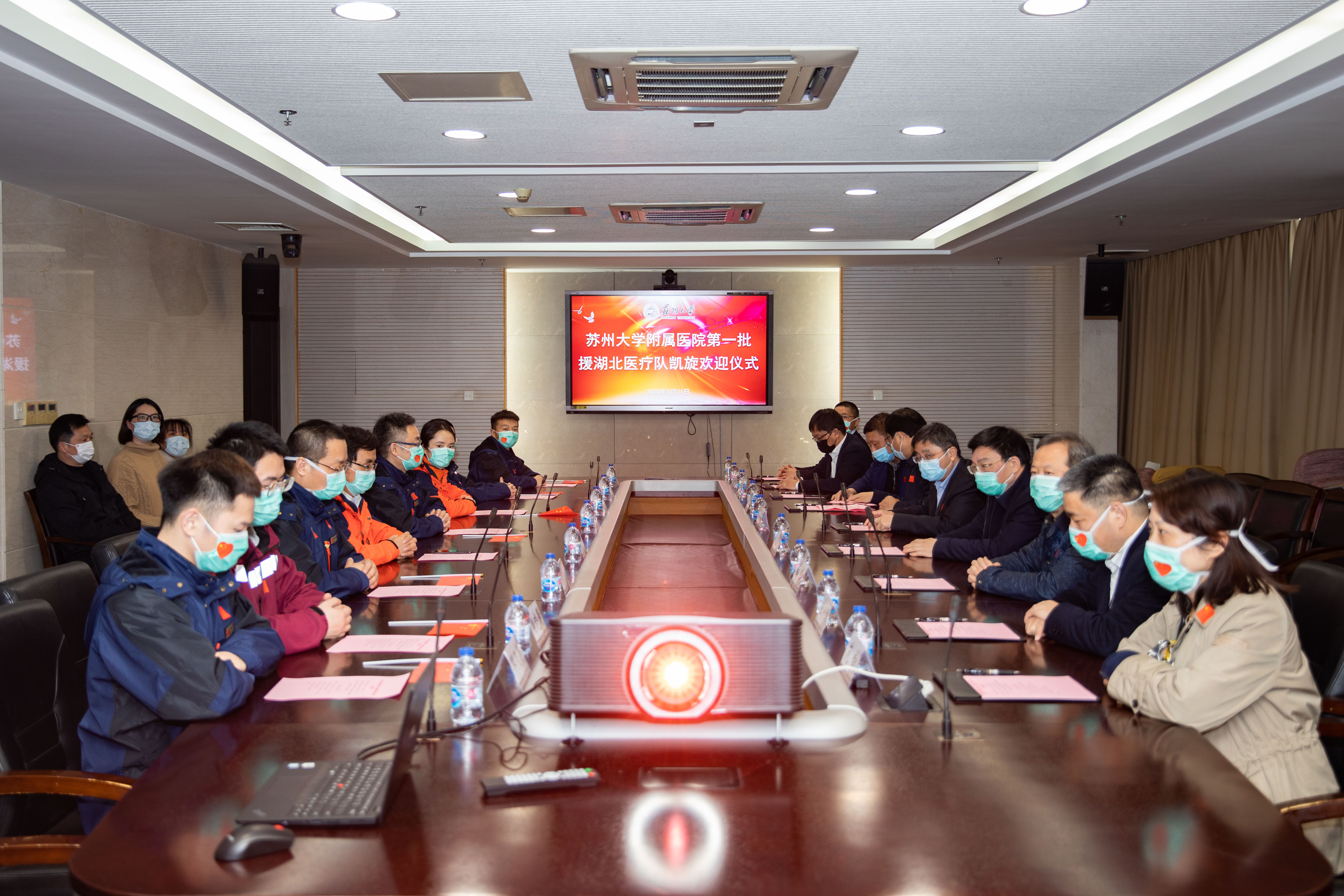 3月31日下午,我校在苏大附二院一号会议室举行欢迎仪式,隆重迎接苏州大学附属医院第一批返苏的8位白衣勇士。校党委书记江涌,校党委常委、副校长、附一院党委书记陈卫昌,校党委常委、总会计师周高,我校相关职能部门负责人和附一院、附二院有关领导出席欢迎仪式。仪式由周高主持。