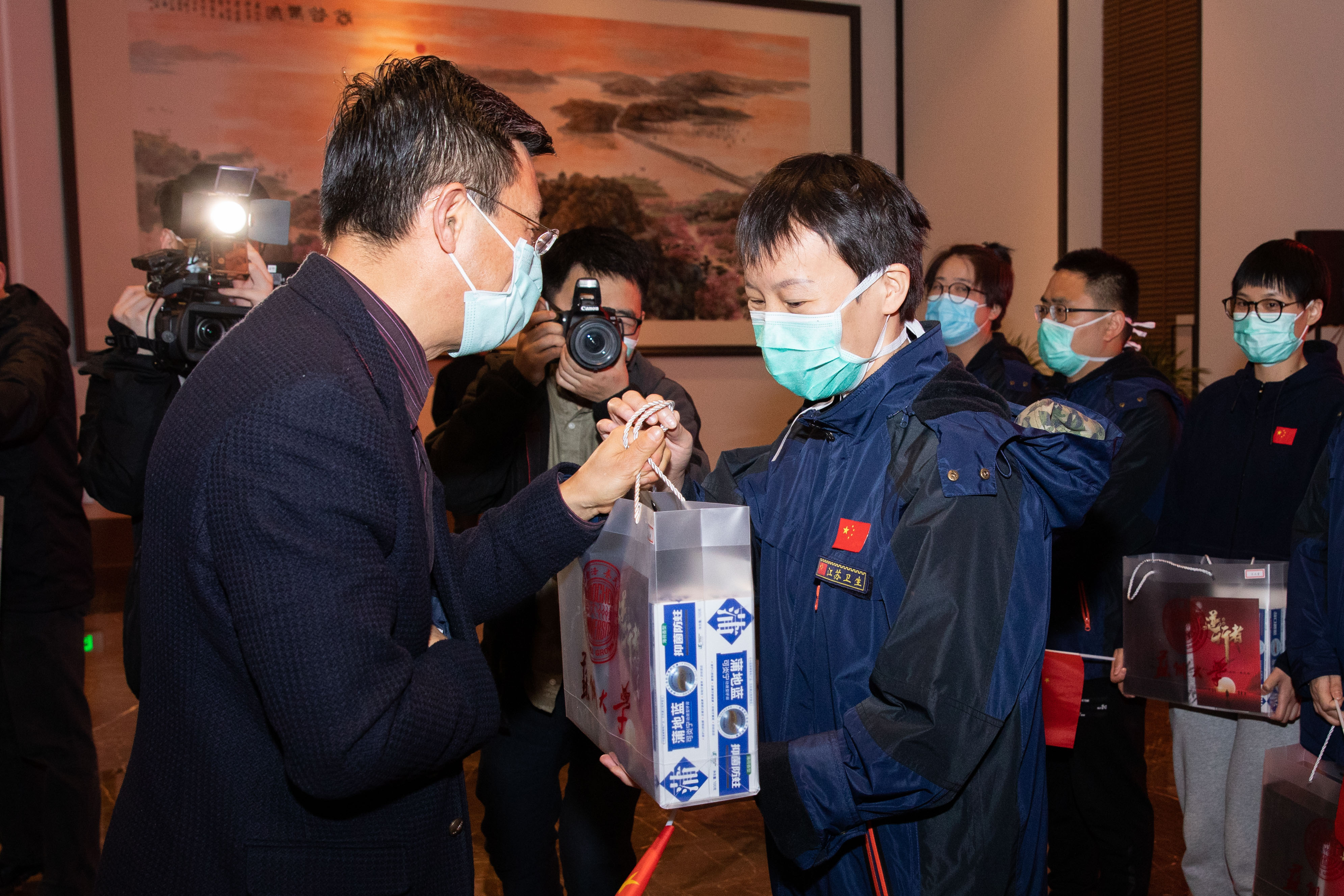 随后,江涌书记向援湖北医疗队队员赠慰问品,全体与会人员合影留念。