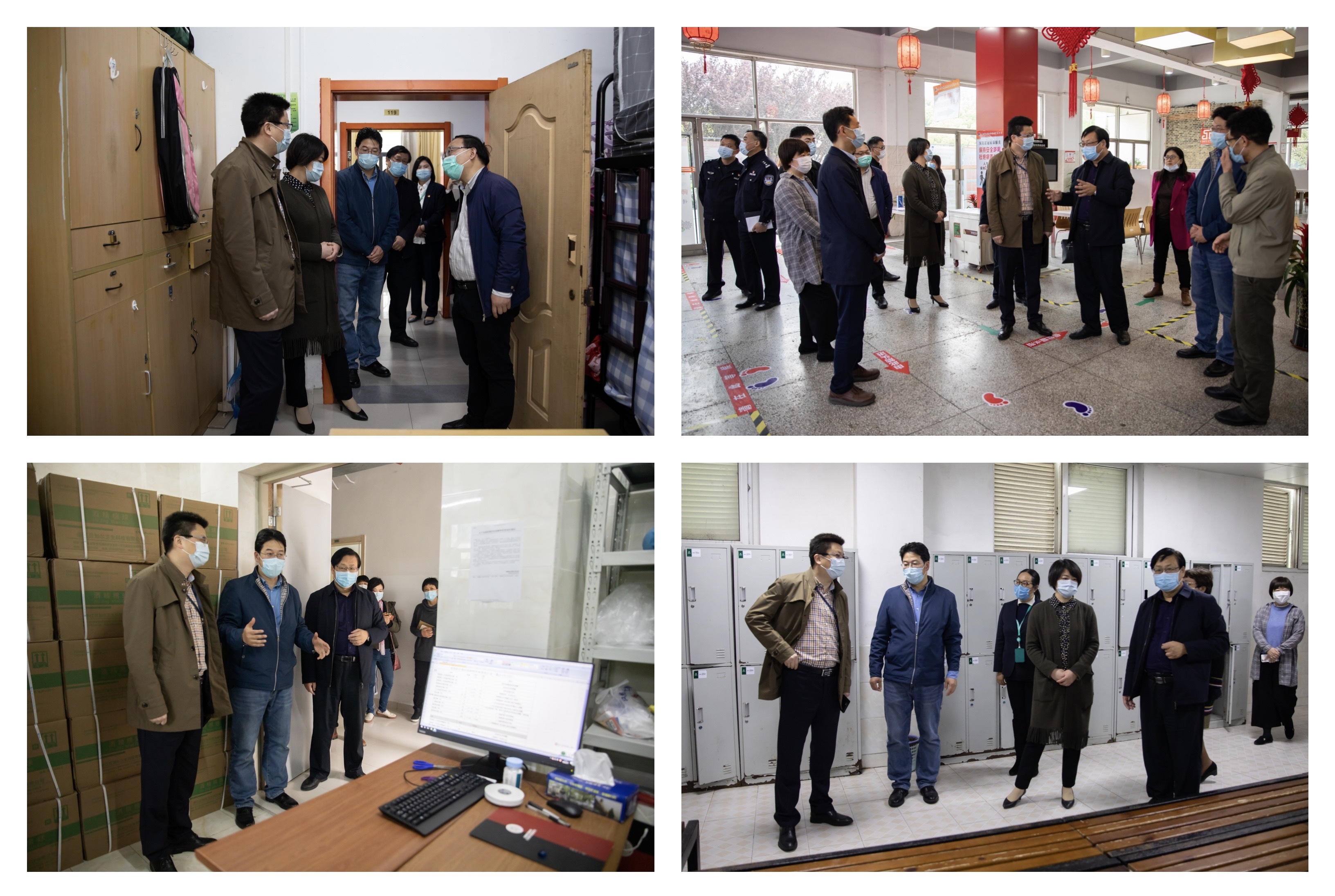 随后,姑苏区委领导对我校的疫情防控工作进行了实地督查验收。从干将路北大门开始,来到快递服务点、学生宿舍、莘园餐厅、公共浴室、博远楼、集中隔离点、东区物资仓库等地,充分了解了学校在各处所做的措施,包括公共区域的消杀、食住环境的维护、隔离区域的安排、防疫物资的储备等。