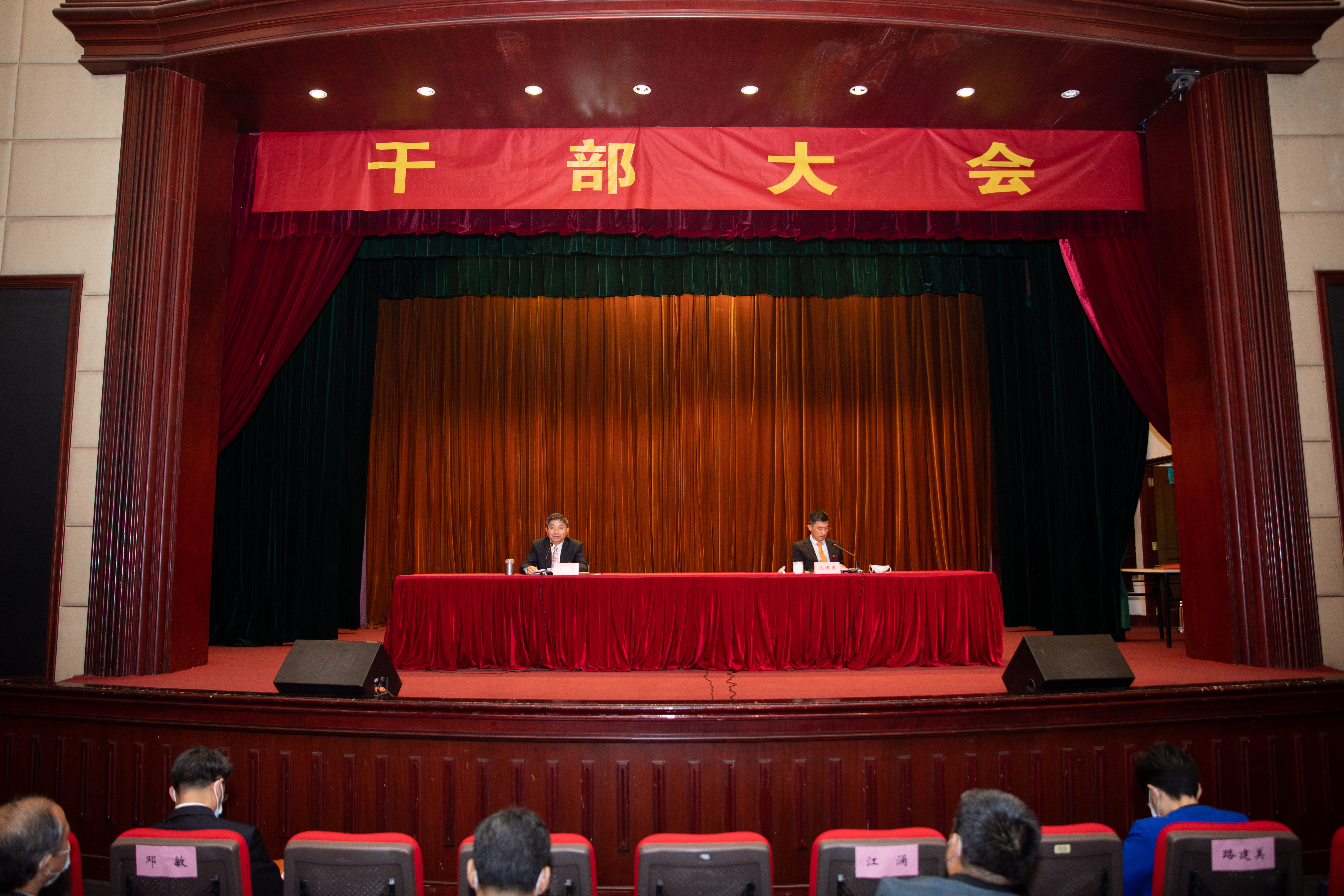 4月26日上午,我校在敬贤堂召开全校干部大会,部署学校主要工作。校领导班子成员,校党委委员、校纪委委员,校机关部门、群直单位、二级学院党政主要负责人,省级及以上党代表、人大代表、政协委员,校各民主党派主要负责人,校学术委员会主任委员,校学位评定委员会正副主席,省部级科研机构主要负责人出席大会。大会由校党委书记江涌主持。
