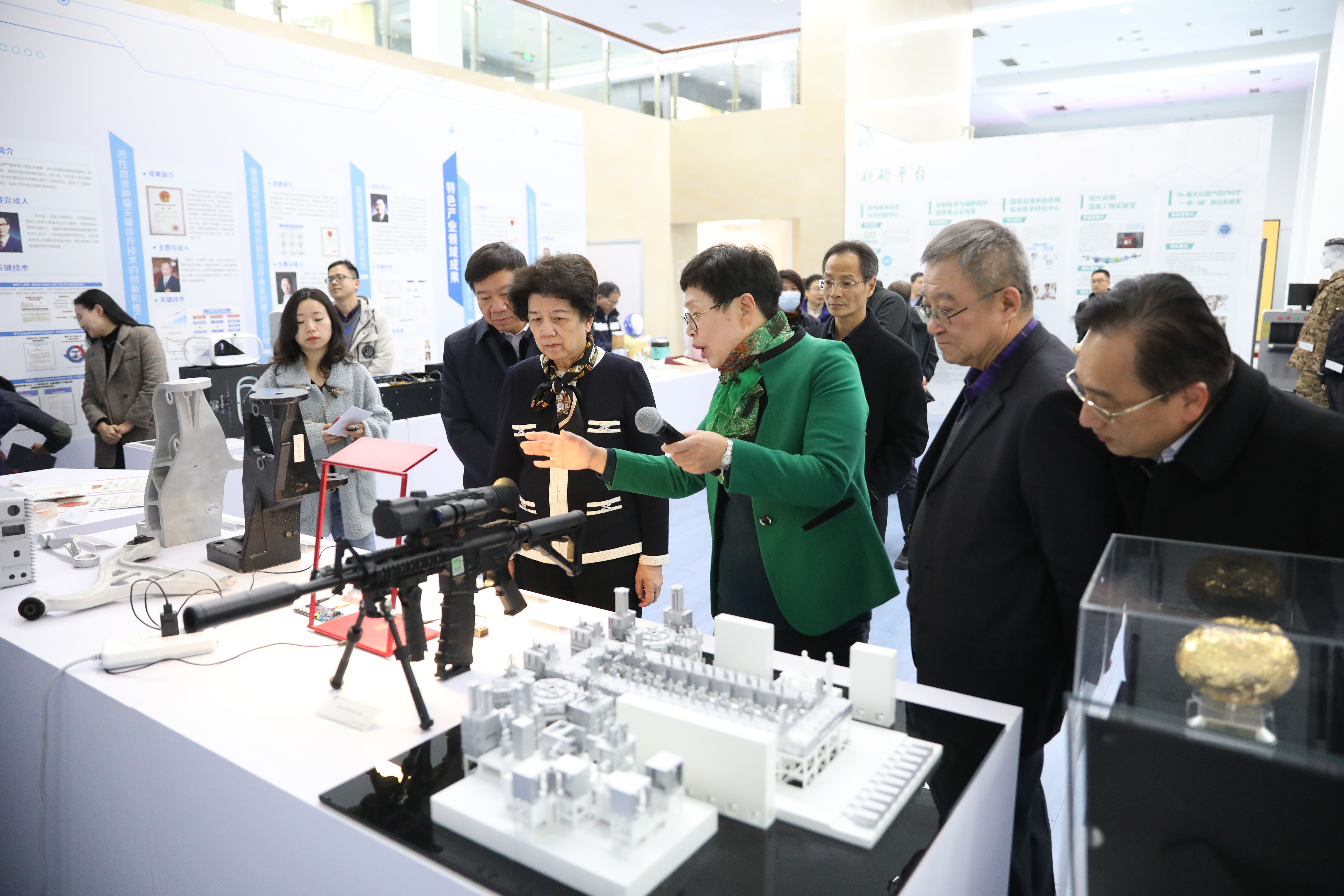 在科研成果展前,陈至立详细观看了天然彩色桑蚕茧、人工心脏、智能机器人、OLED器件等相关科研成果及文字、图片介绍,认真听取了我校在推进科技融合创新方面的有效举措及发展成效,并就成果落地及前景推广等问题与各平台科研人员进行交流探讨。她指出,要瞄准国家及区域产业发展需求,以科技创新为动力,发挥高校人才科研优势,推进科技与产业深度融合,推动地方经济社会高质量发展。