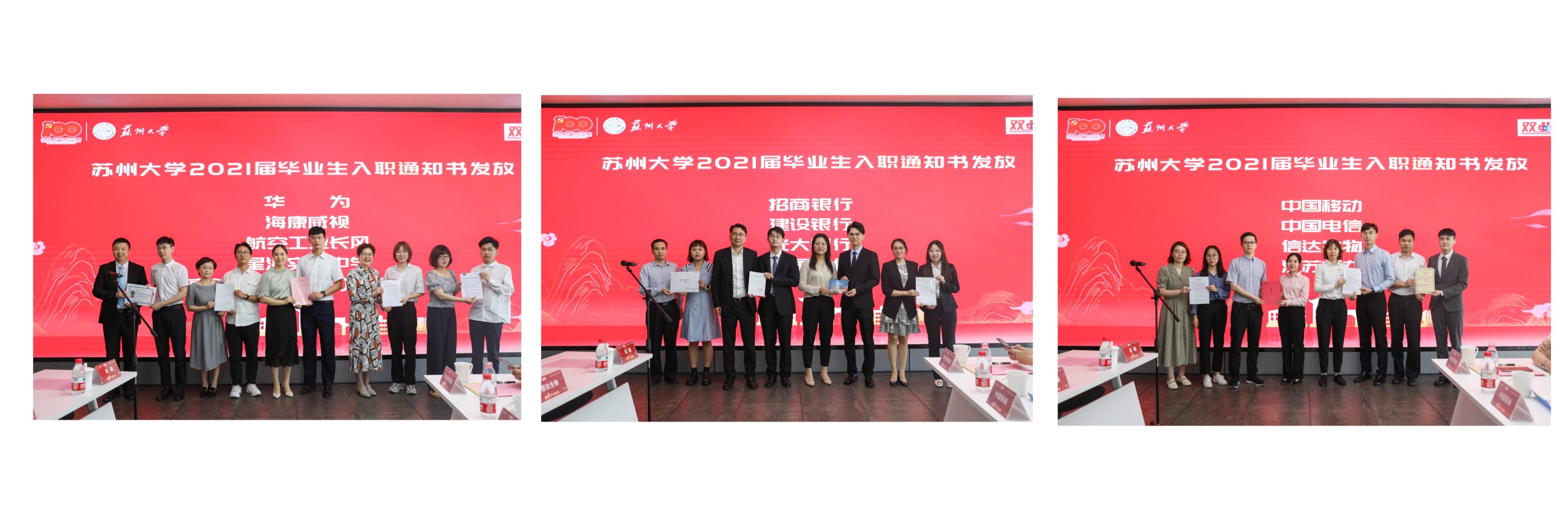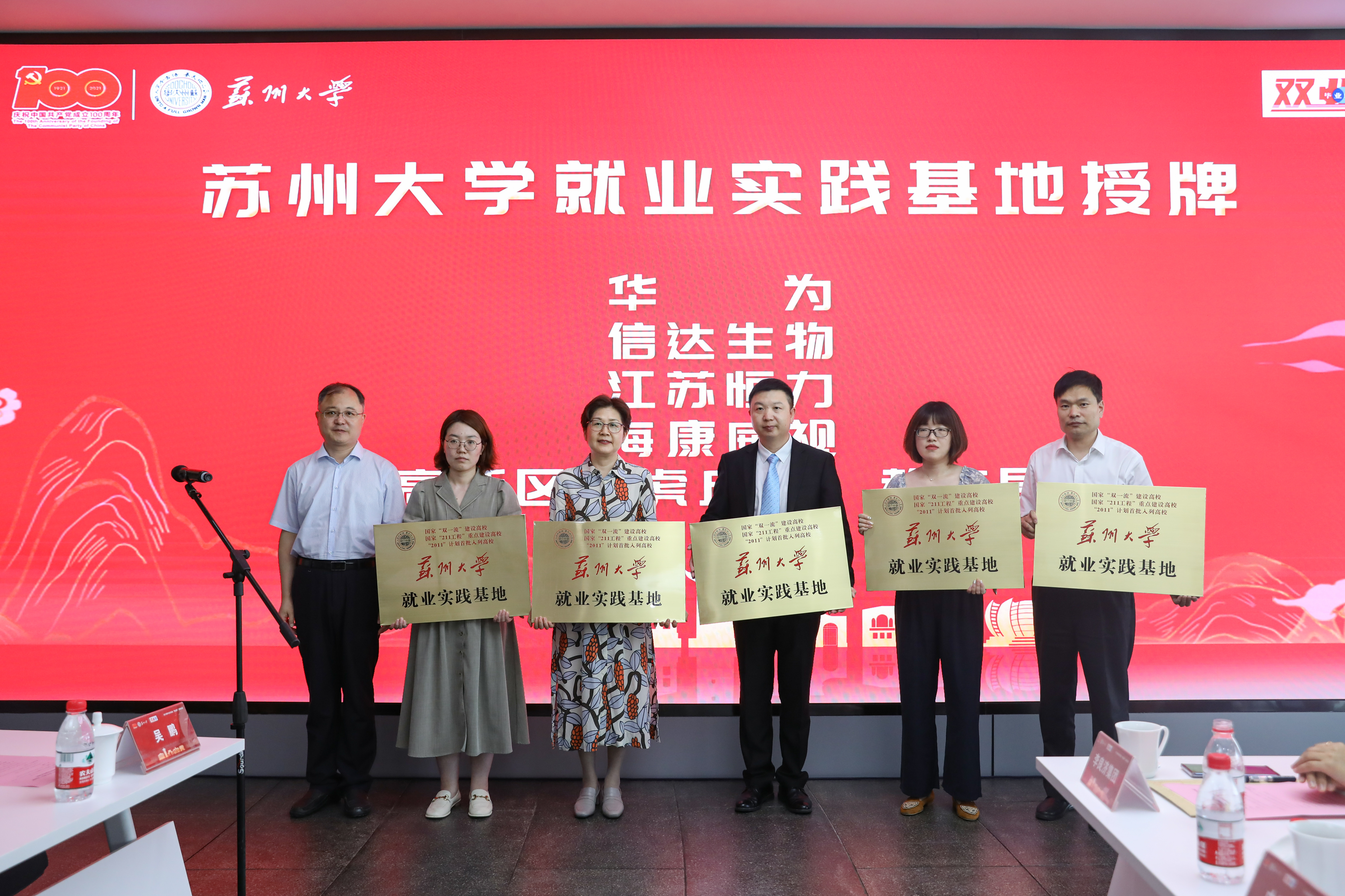 现场,王鲁沛副书记为10家用人单位授牌“苏州大学就业实践基地”,13家用人单位为2021届毕业生发出168份入职通知书。