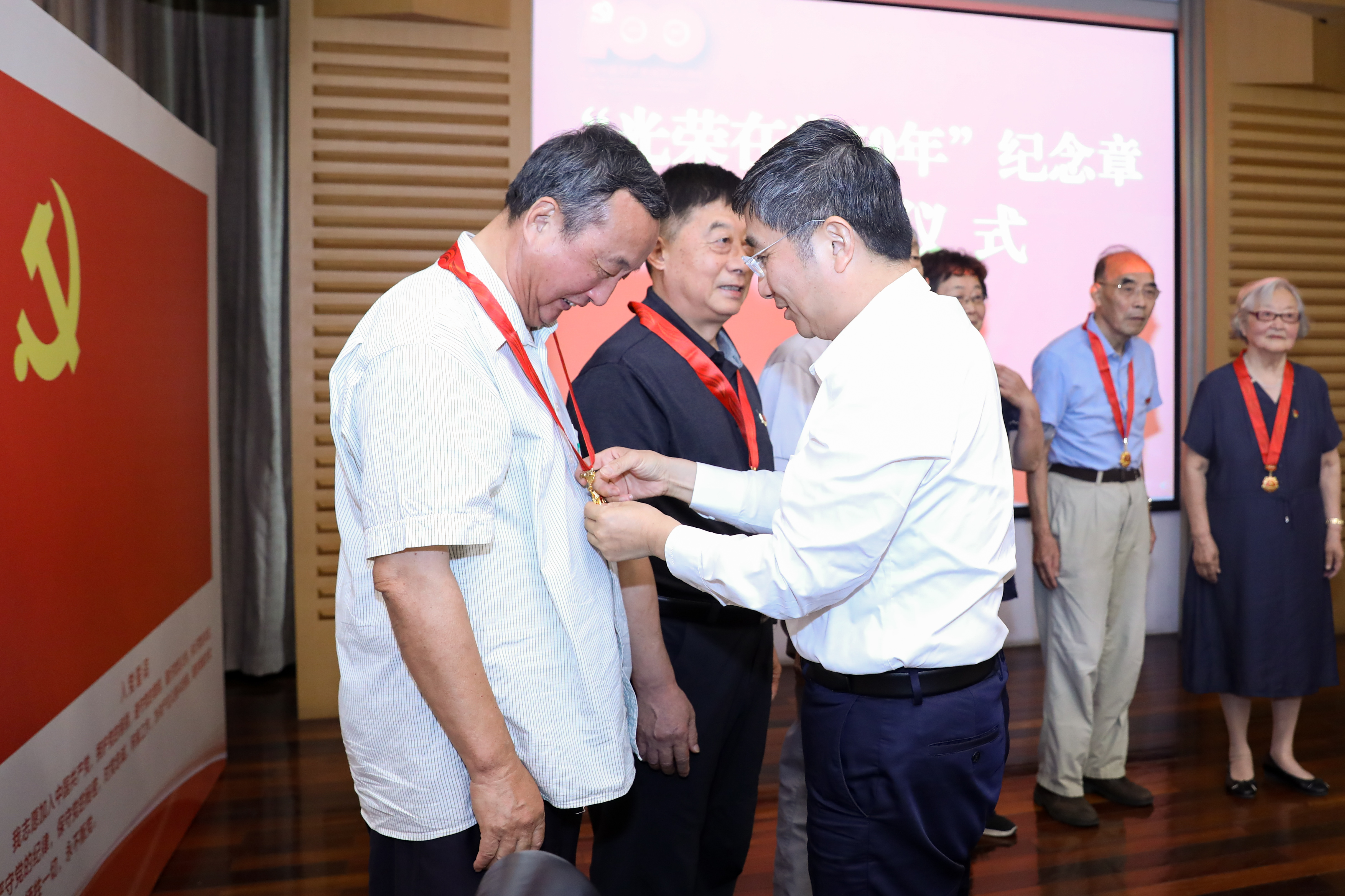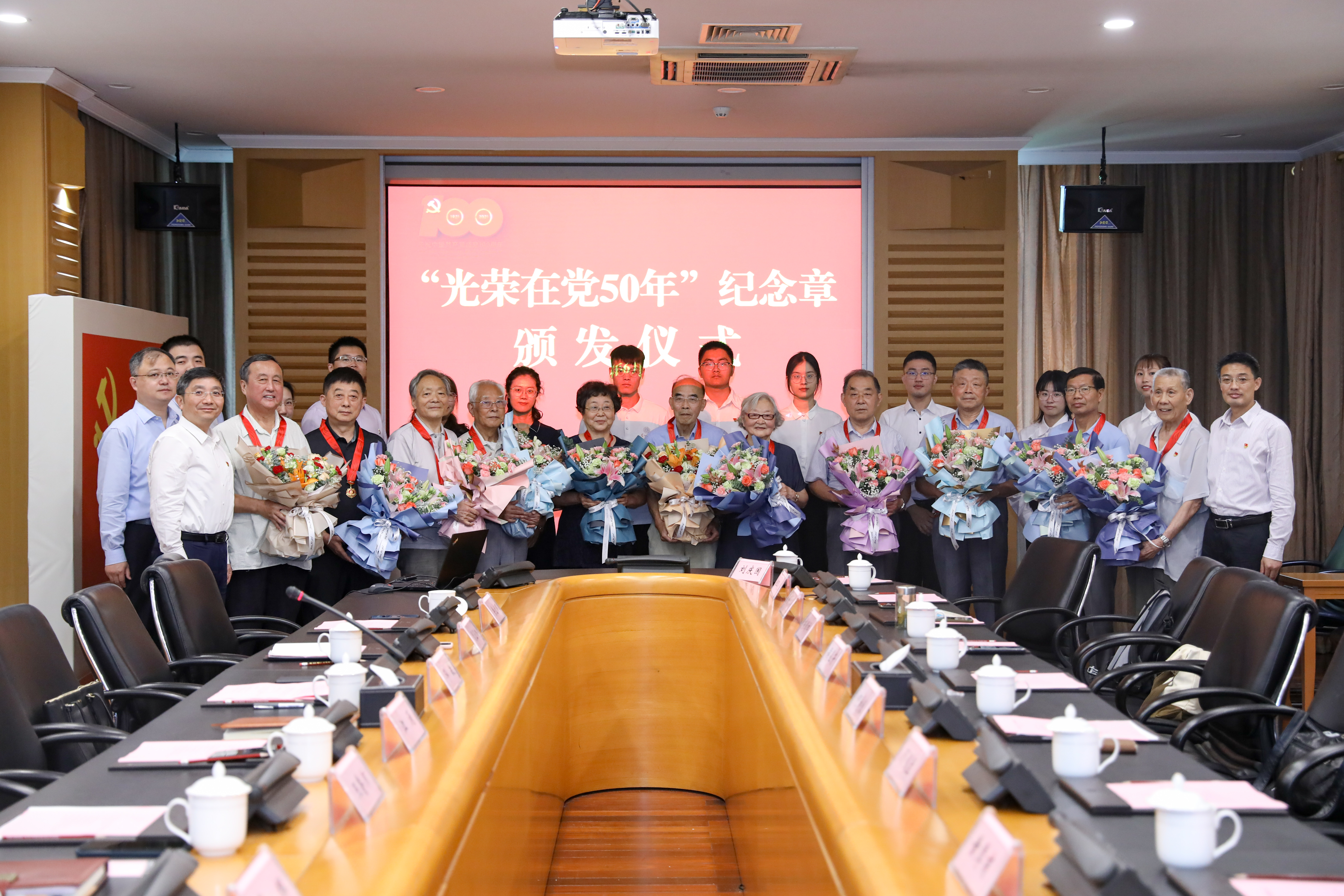 6月21日,苏州大学举行“光荣在党50年”纪念章颁发仪式。校党委书记江涌为党龄满50周年的老党员代表颁发纪念章,并向全校老党员致以崇高敬意和诚挚问候,号召全体党员干部继承发扬前辈们的奋斗精神和光荣传统。校党委副书记邓敏、王鲁沛,学校相关职能部门主要负责人,光荣在党50年老党员代表,新党员代表出席颁发仪式。仪式由邓敏主持。