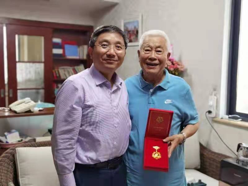 江涌书记来到党龄满50年的离退休老党员、我校原校长陈克潜同志家中,将“光荣在党50年”纪念章送到陈克潜及其夫人手中。“感谢党和国家的培养和厚爱,感谢学校挂念和关心。”捧着珍贵的纪念章,陈克潜激动地说。离休干部、原丝绸工学院党总支书记任志曾参加过抗日战争、解放战争和抗美援朝战争。江涌书记来到任志家中,为他送上纪念章,向他表示亲切慰问,希望他多保重身体。