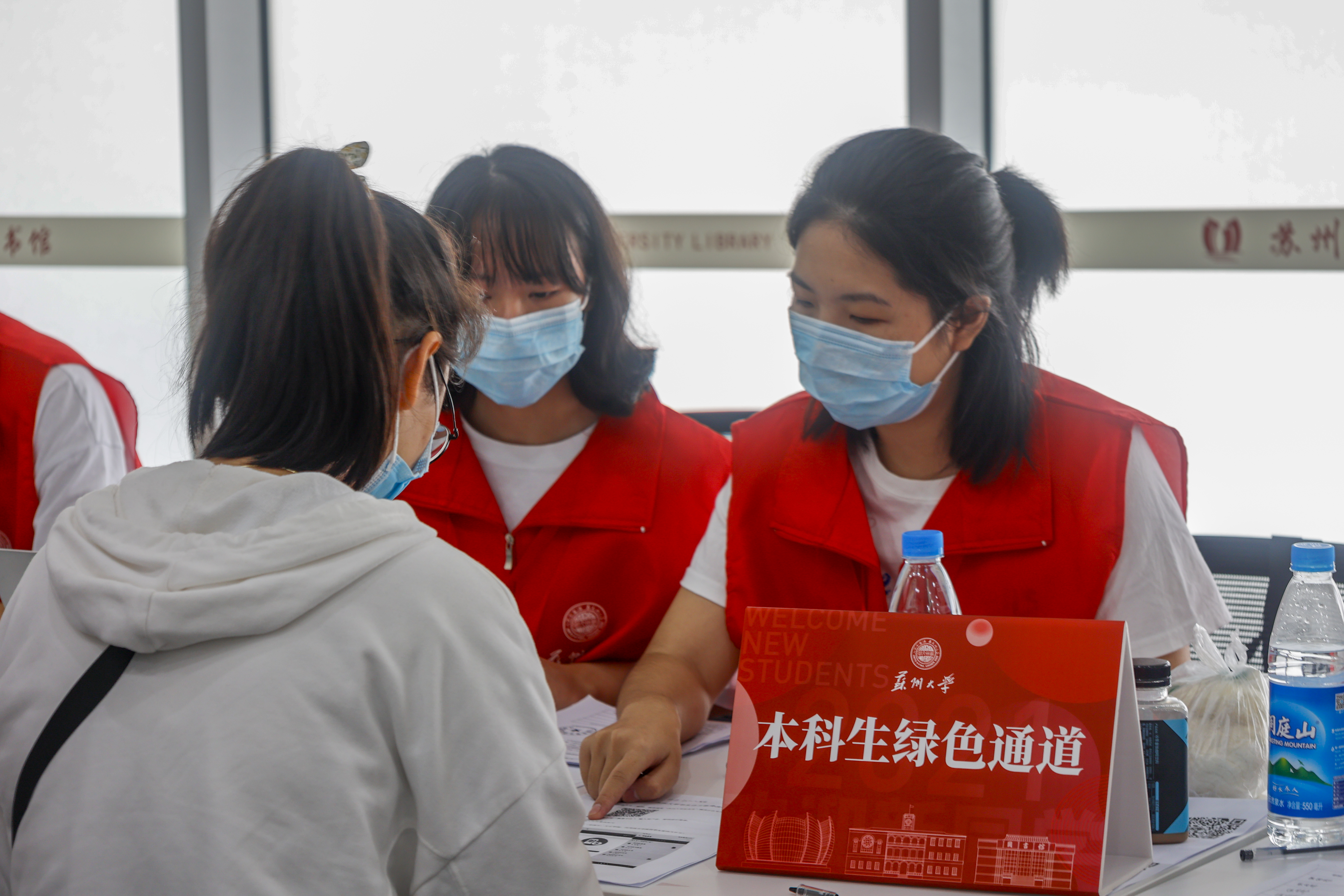 金秋送爽,丹桂飘香,又是一年迎新时。10月9日一10日,一万三千多名来自五湖四海的2021级新生齐聚我校天赐庄、独墅湖、阳澄湖校区,开启大学新生活。在疫情防控常态化的情况下,为了更好地迎接每一位新生,学校提前做好全方位部署,以确保校园师生安全。身穿“欢迎新同学”红马甲的学生志愿者,热情洋溢的老师、工作人员,各学院(部)独具创新的迎新方式,让“萌新”们充分感受到苏大的温暖与朝气。