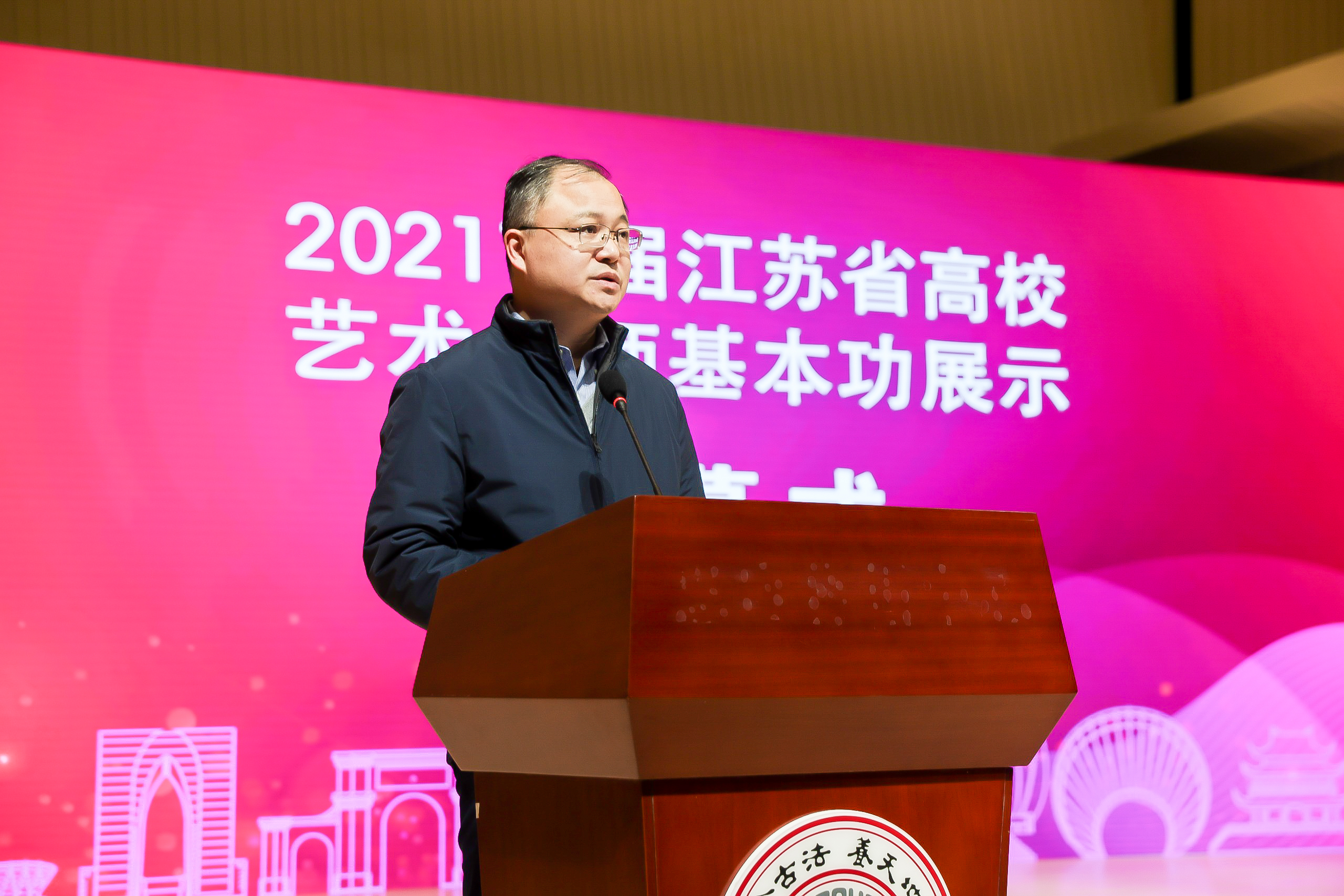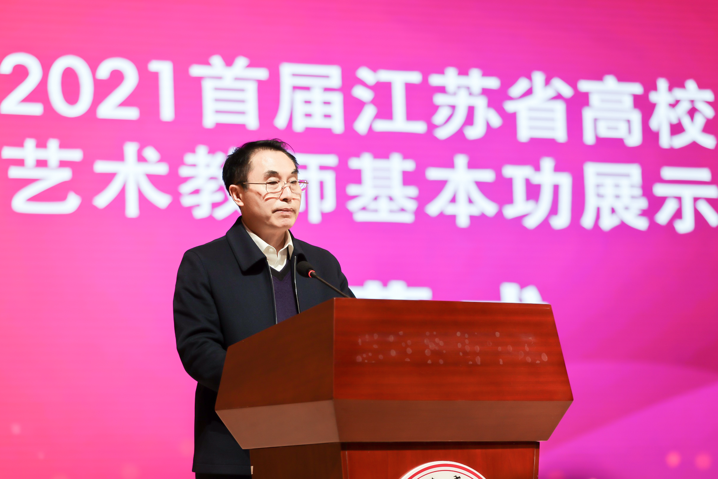 李金泉在讲话中指出,举办本次基本功展示活动,是全省高校美育工作者相聚的盛会,是江苏高校美育工作发展史上的又一盛事。本次活动充分借鉴了2021全国高校音乐和美术教育专业本科学生与教师基本功展示活动的经验、成果,是对全省高校艺术教师职业技能的首次集中检阅,也是对教师队伍建设综合成效的一次显性评价,是江苏省贯彻落实中办、国办美育意见的破题之举、引领之举、示范之举。他对本次基本功展示提出了纪律、文明、诚信、安全的要求,希望所有参展教师全心身投入、全方位展示、全维度观摩,在展示活动中交流学习、取长补短、共同提高。希望各高校之间以美育为纽带,建立更紧密的关系,多交流探讨、多协作共享,为新时代学校美育工作创新发展共同努力。