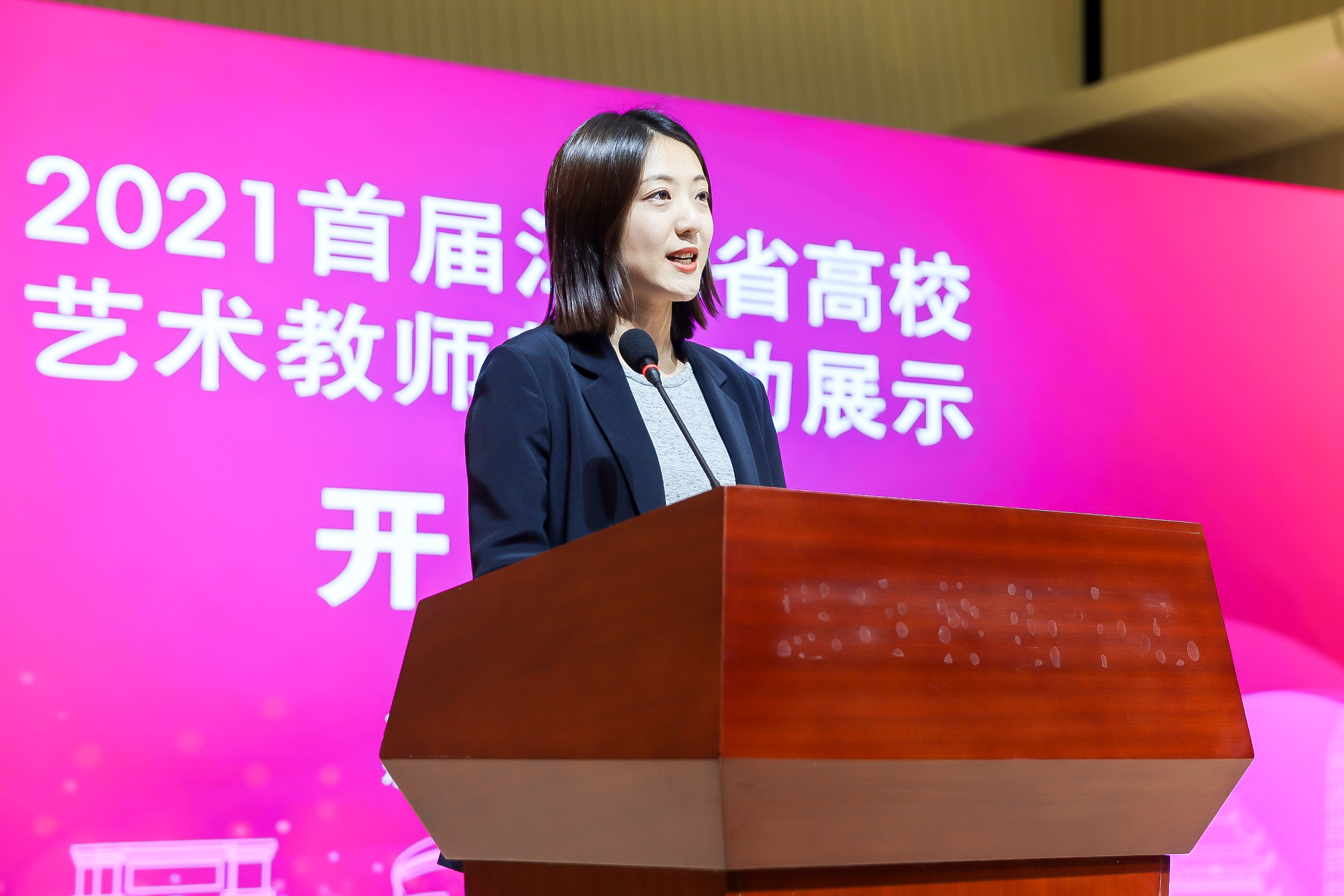参展教师代表、我校音乐学院教师韩瑜在发言中感谢省教育厅为我省艺术教师提供了交流、展示和学习的平台。生逢盛世当不负盛世,生逢其时当奋斗其时,她号召每一位艺术教师,为中国的音乐教育事业、美育事业竭尽所能、努力奋斗,并郑重承诺参展期间严格遵守展示纪律,服从展示安排,尊重评委、尊重对手,展现出高校教师向美向善向上的精神风貌。