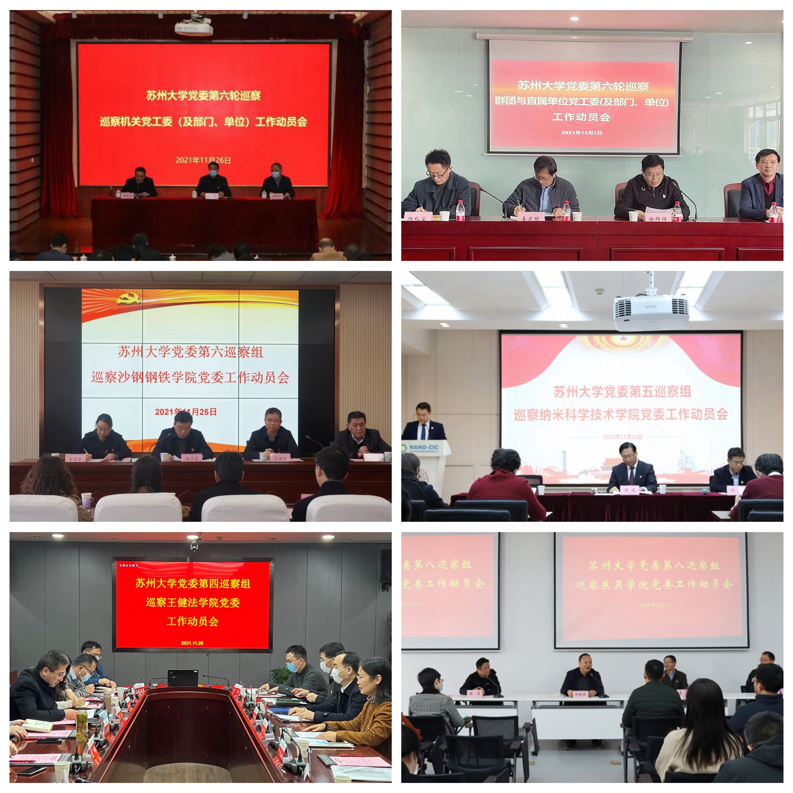 为深入贯彻落实习近平总书记关于巡视巡察的重要讲话精神,落实中央和省委关于巡视巡察最新决策部署,强化政治巡察,推动和实现校十二届党委巡察全覆盖,根据校党委的统一部署,校党委第六轮巡察工作于11月17日启动。本轮巡察设立八个巡察组,分别对机关党工委、群团与直属单位党工委及各部门、单位进行专项巡察,对王健法学院党委、纳米科学技术学院党委、沙钢钢铁学院党委、敬文书院党委、东吴学院党委进行常规巡察。