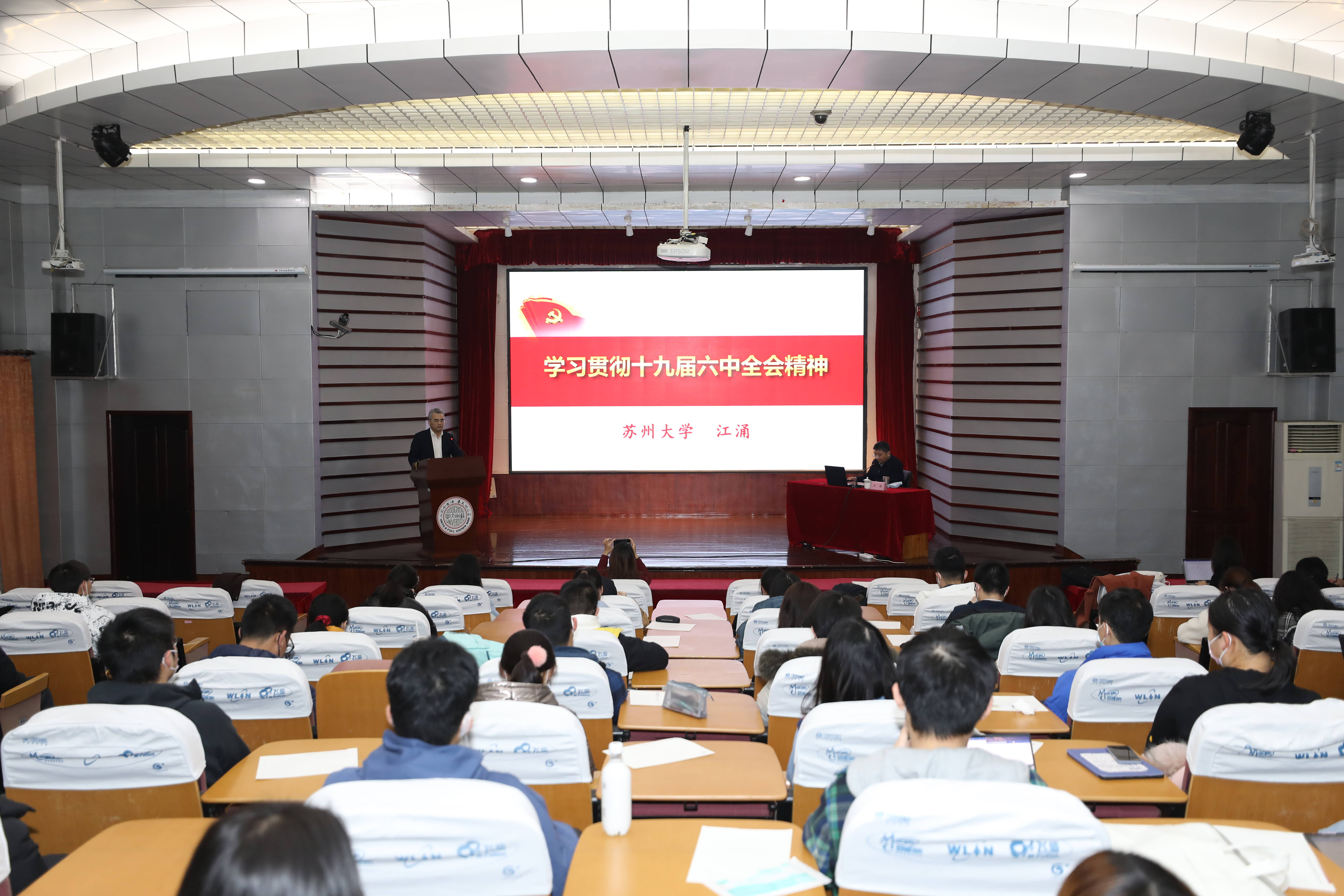 12月15日下午,学习贯彻十九届六中全会精神宣讲团报告会在天赐庄校区学术报告厅举行。校宣讲团团长、党委书记江涌做客敬文讲堂,为书院全体常任导师和2021级新生宣讲十九届六中全会精神。敬文书院院长钱振明主持讲座。