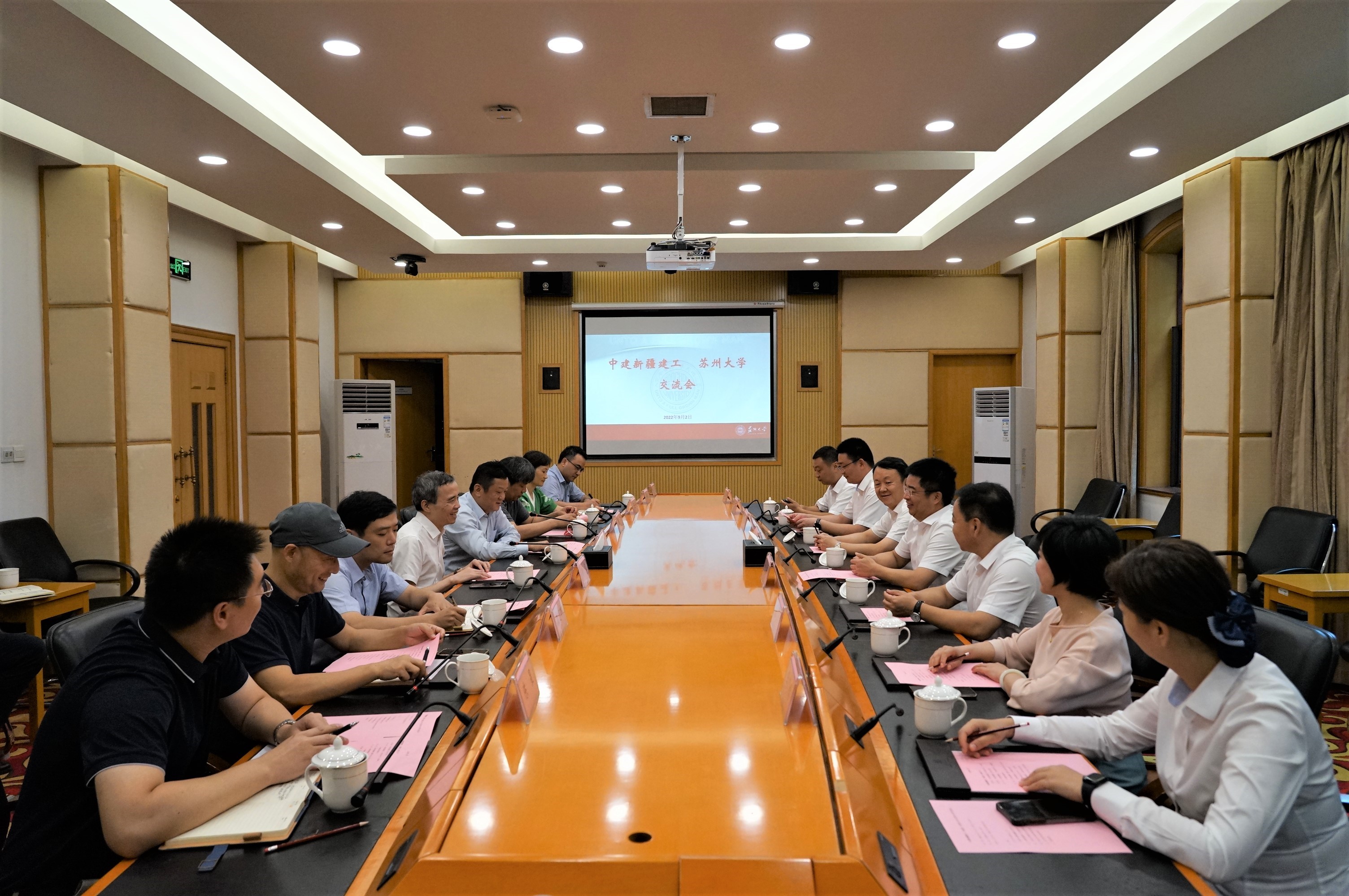 9月2日下午,中建新疆建工(集团)有限公司党委副书记、总经理吴刚柱,副总经理刘元章,中建新疆建工一建党委书记、董事长、中建新城董事长陈刚等一行来我校考察交流,苏州大学党委常委、副校长沈明荣在红楼会议中心接待来访人员并举行座谈,学校相关职能部门、学院负责人出席交流会。会议由国内合作发展处处长陆岸主持。