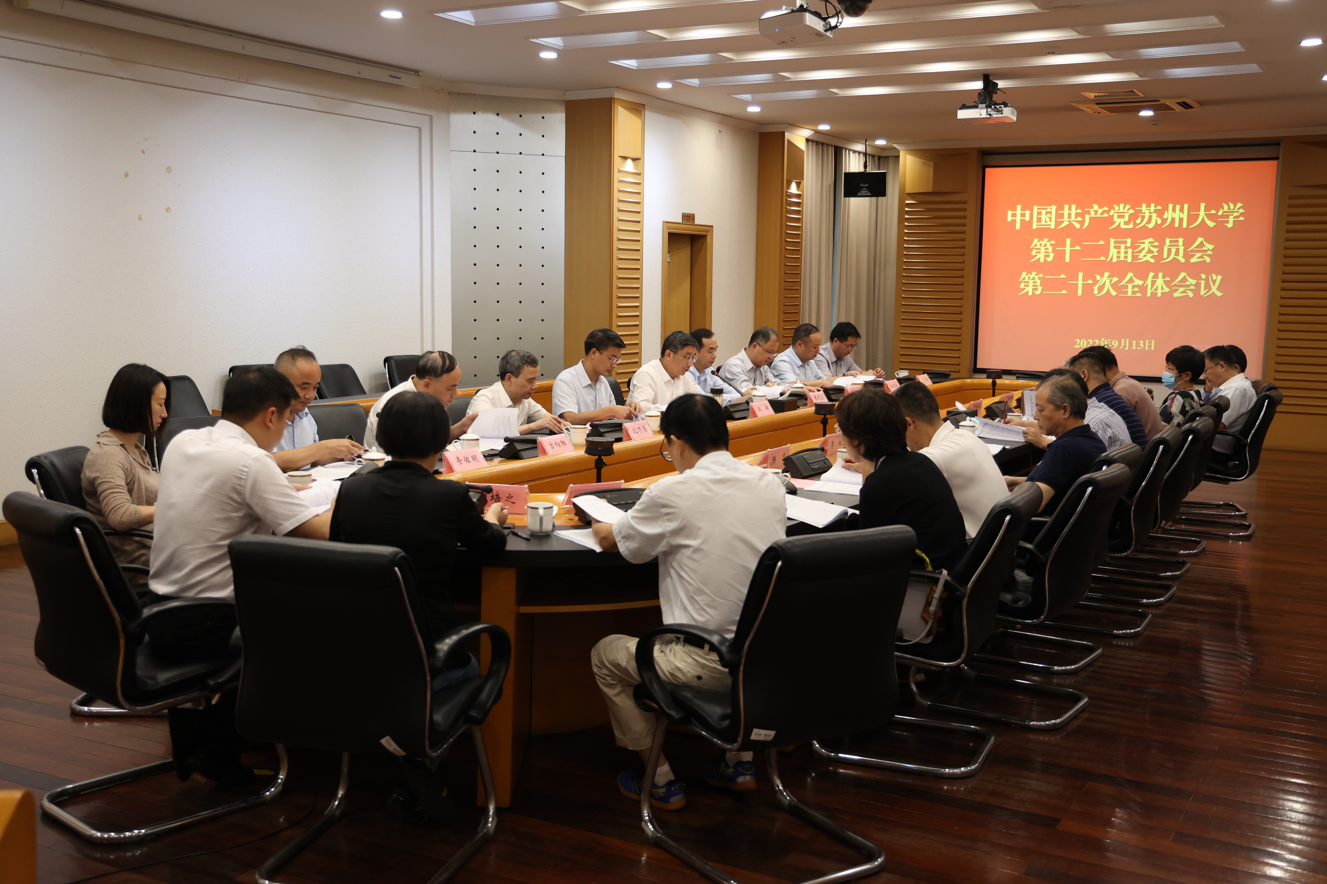 9月13日下午,中国共产党苏州大学第十二届委员会第二十次全体会议在红楼会议中心召开。学校党委委员出席会议,纪委委员列席会议,全会由校党委常委会主持。