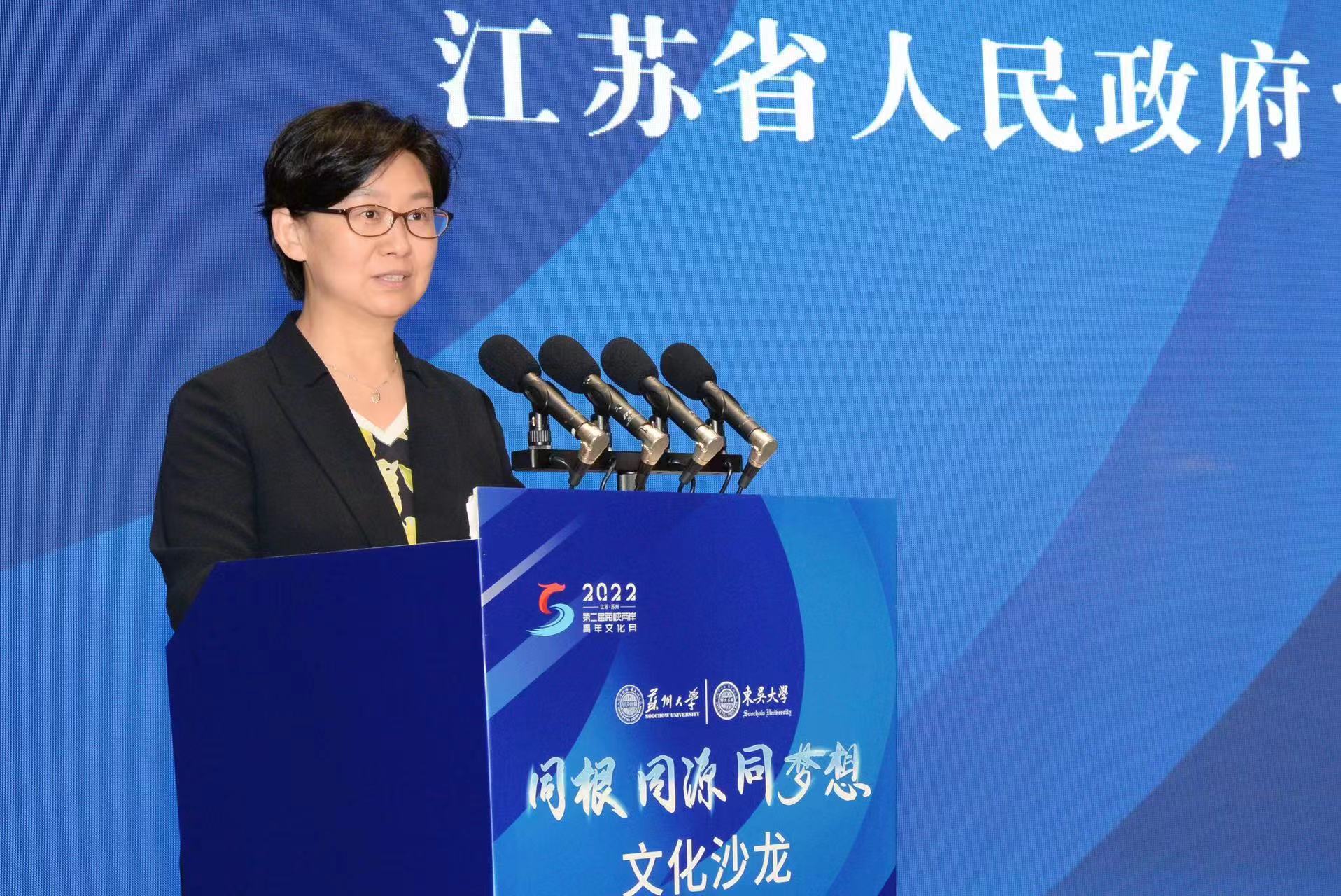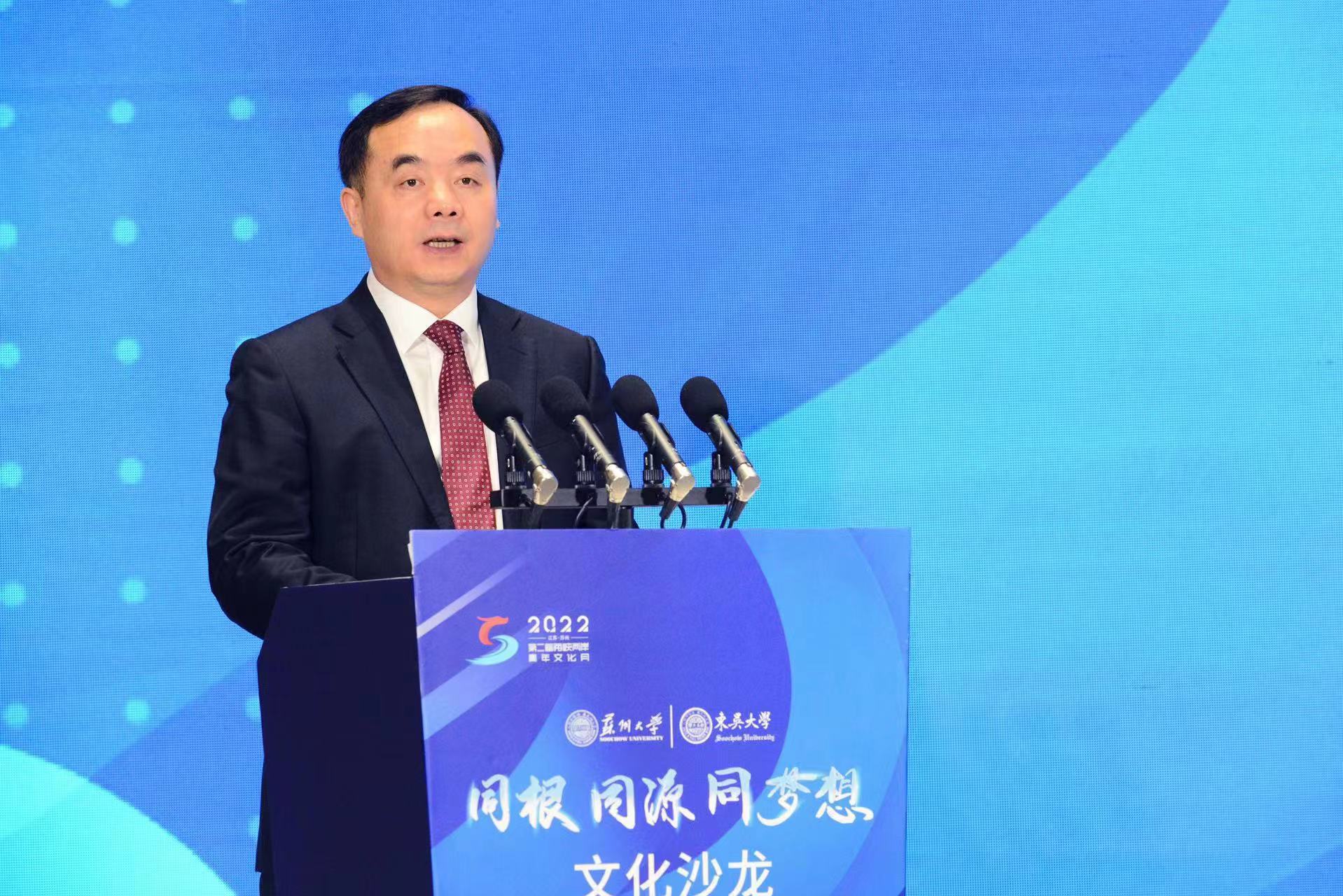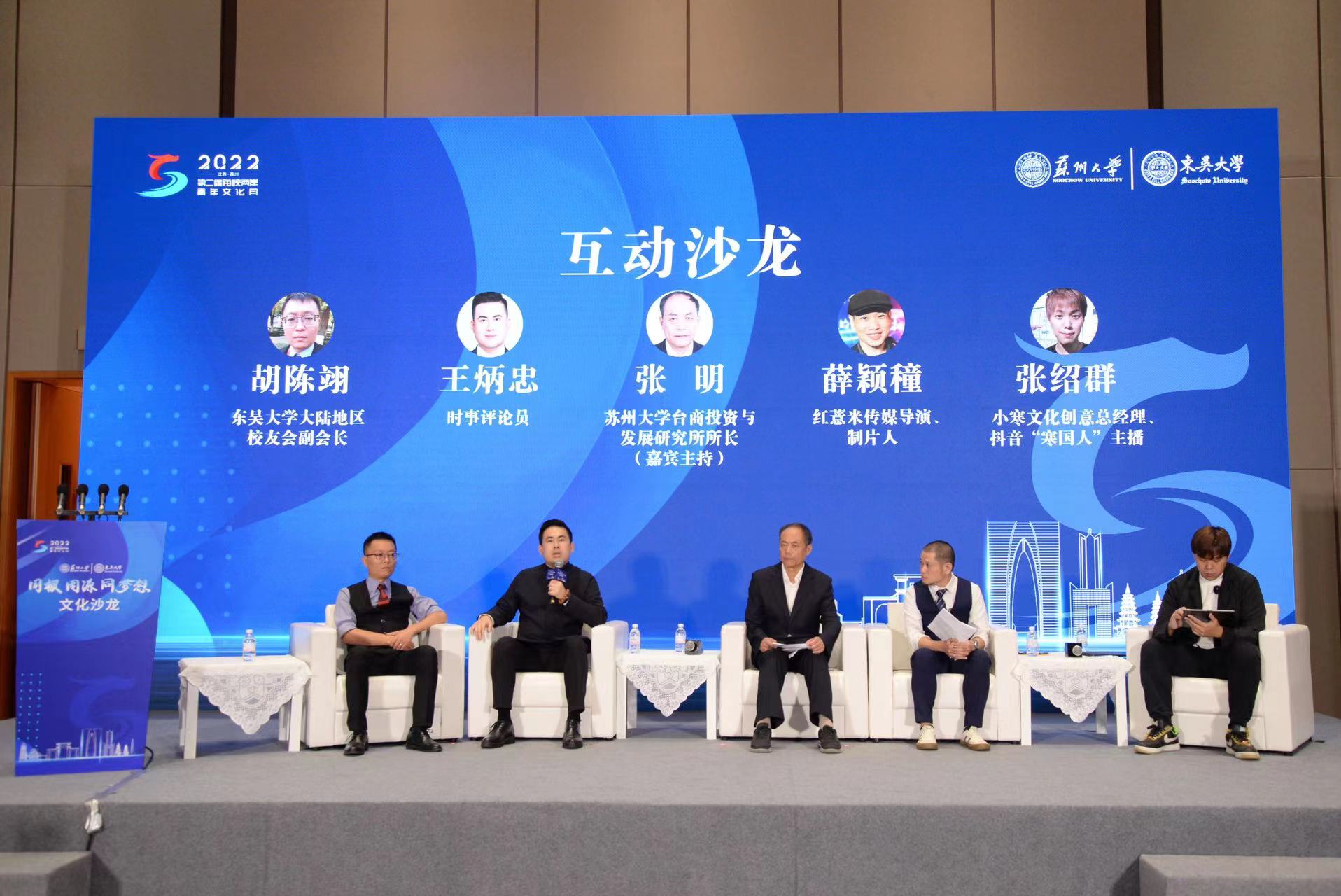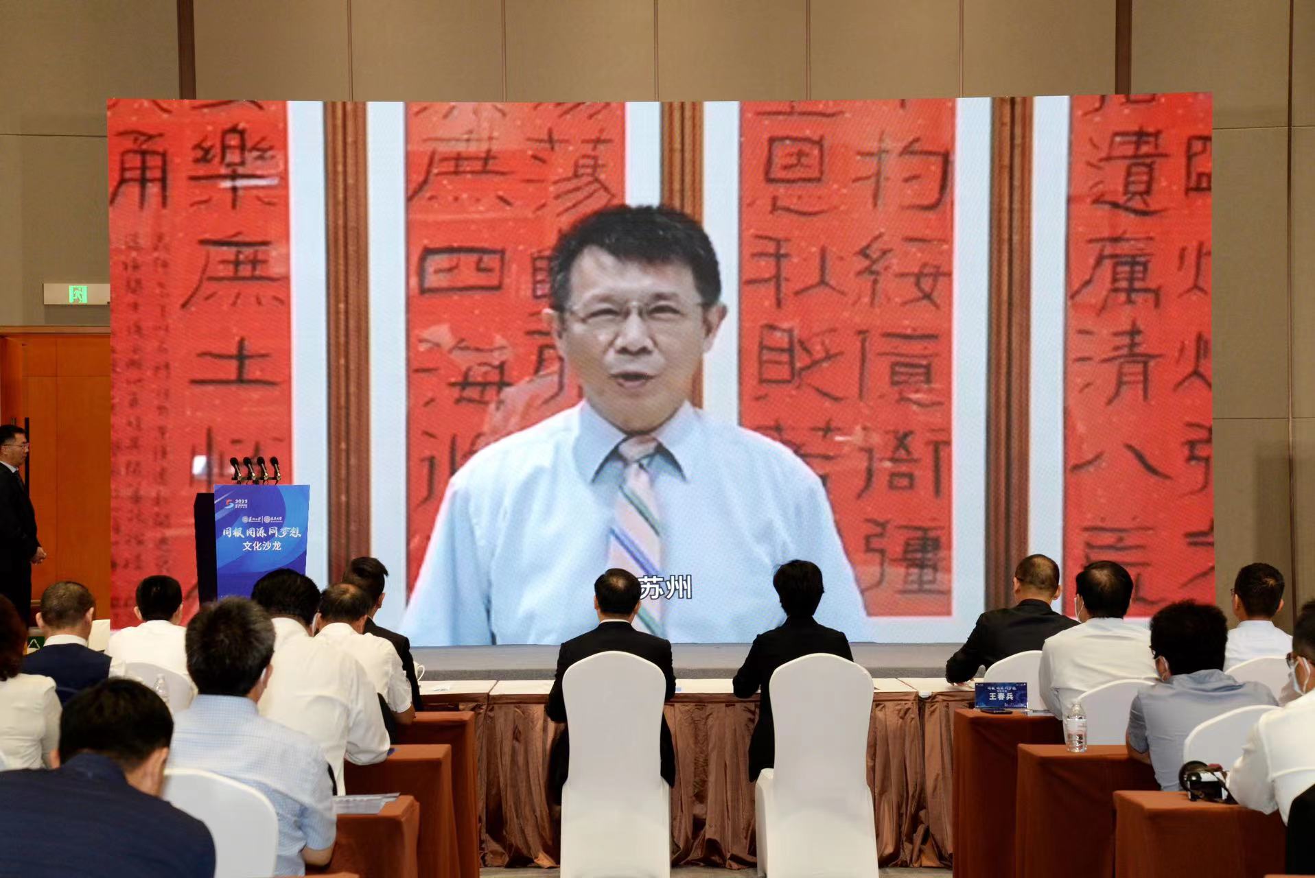 9月17日,“同根同源同梦想”第二届苏州大学与台湾东吴大学文化沙龙在苏州狮山会议中心举行。江苏省人民政府台湾事务办公室主任练月琴、一级巡视员吴伟荣、苏州大学校长张晓宏、苏州市人民政府台湾事务办公室主任沈晶、中华大陈同乡总会理事长胡志伟、中华统一促进党光武党部主委刘万里等省台办、市委市政府、市台办以及我校相关部门负责同志参加活动。活动由校党委常委、副校长李孝峰主持。