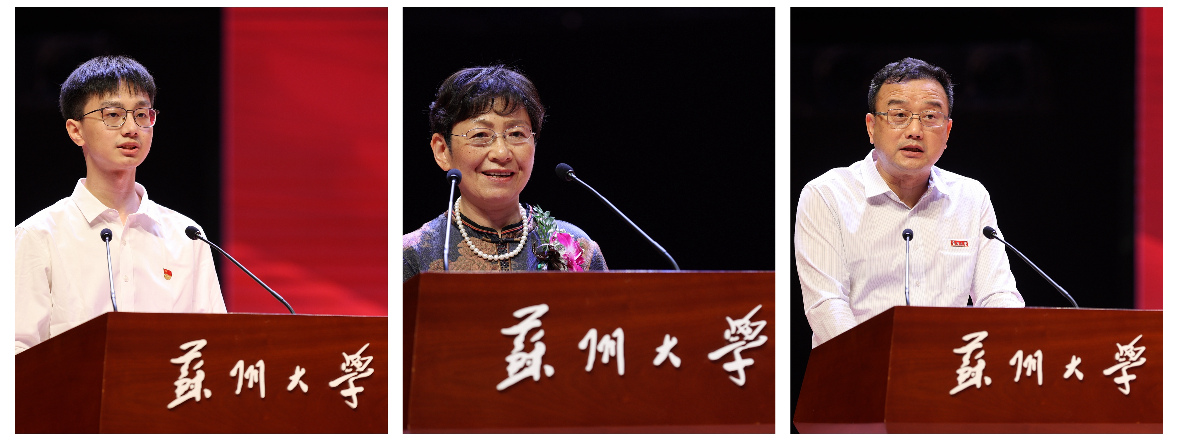 荣休教职工代表、外国语学院教授顾佩娅在发言中表示,无论在职还是退休,帮助自我成长和他人发展是终身使命,作为一个有知识、有理想、有爱心的苏大人,将会继续尽力为学校发展贡献才智和力量,坚信苏大的明天会更好。