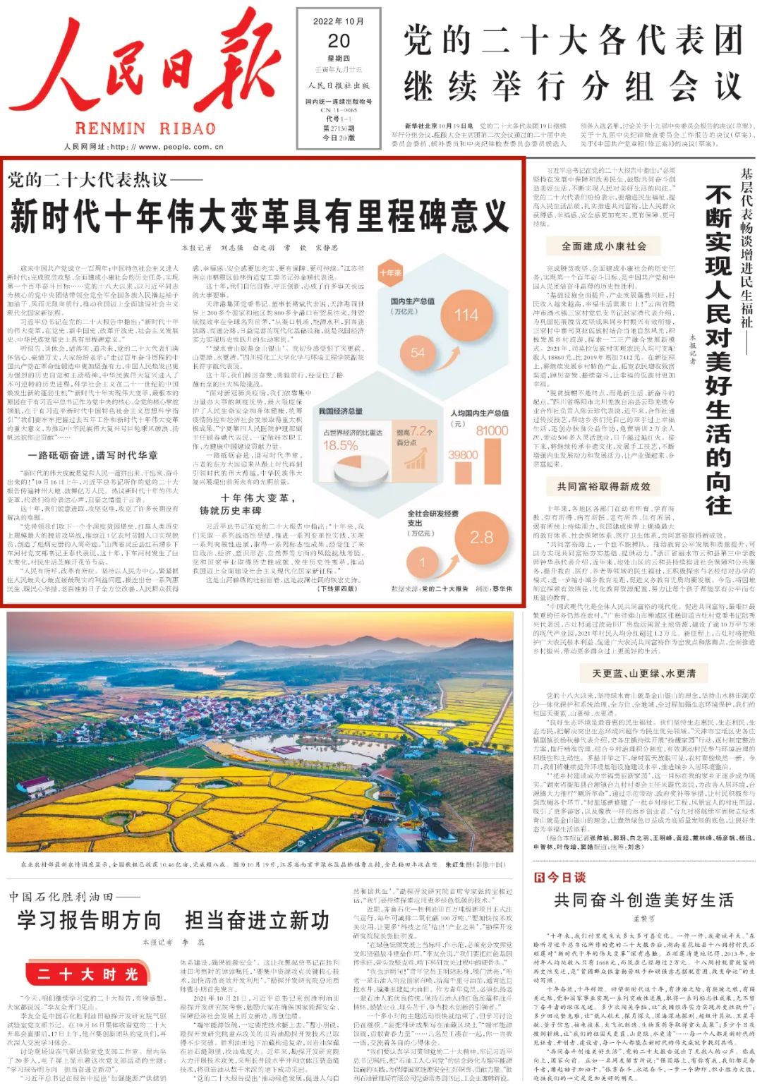 《人民日报》10月20日 头版头条