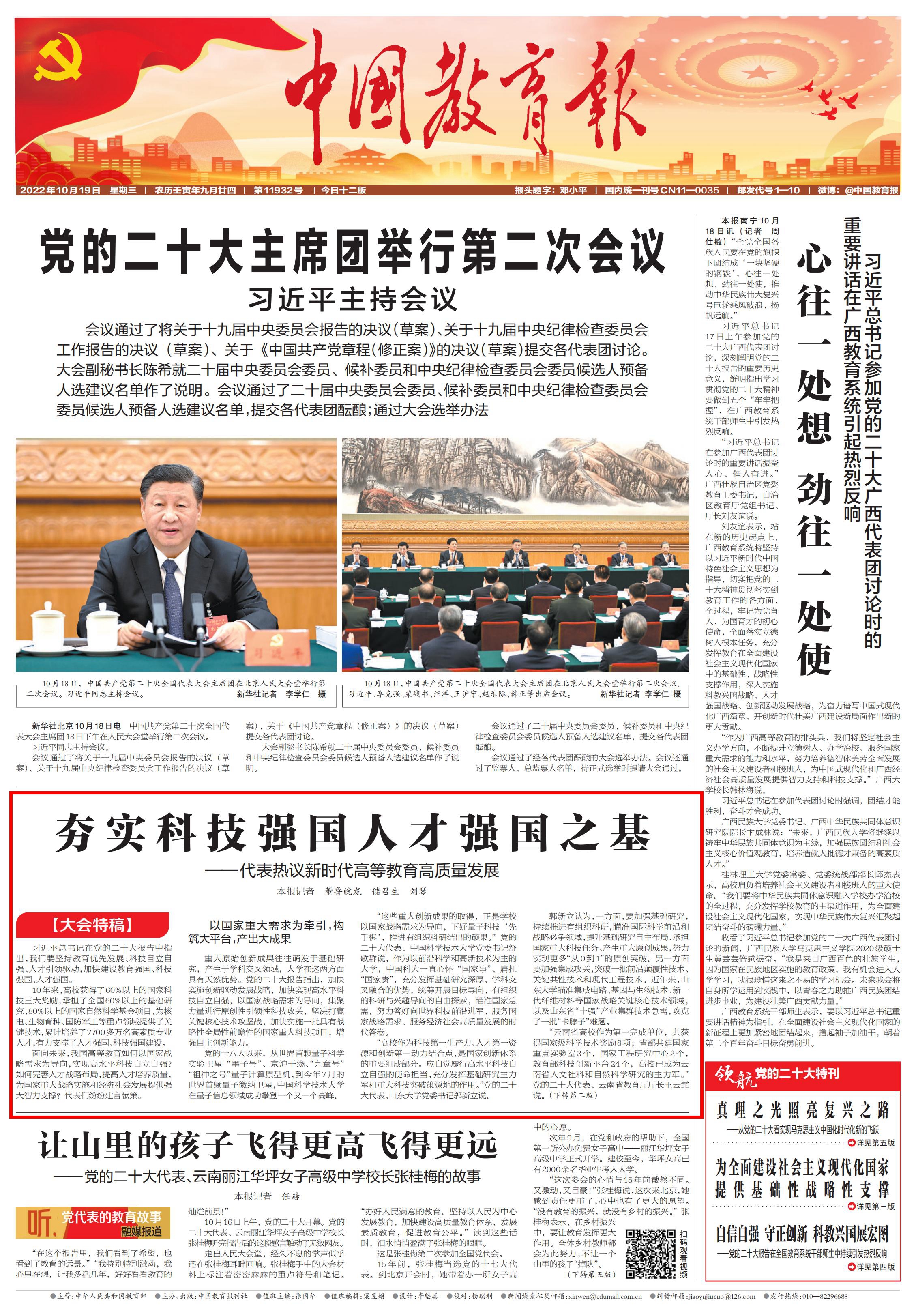 《中国教育报》10月19日 头版