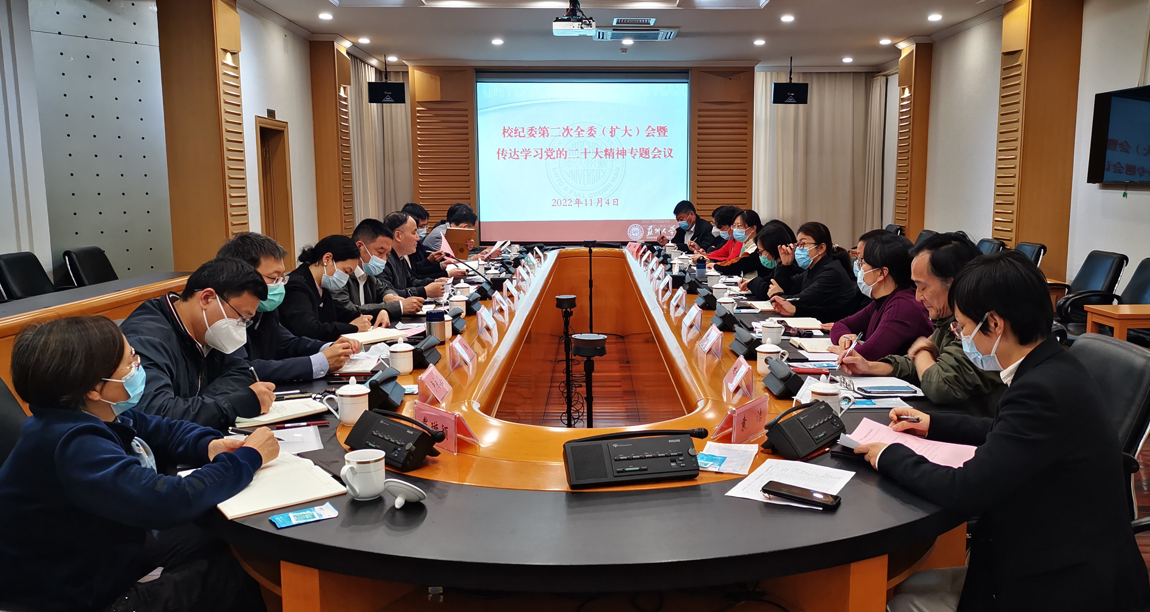 会议专题学习了中国共产党第二十次全国代表大会精神,传达学习了校第十三次党代会精神,学习了《中国共产党纪律检查委员会工作条例》,审议了《关于开展廉洁文化宣教月活动的通知》《苏州大学纪委委员联系二级单位工作办法》和《关于公布苏州大学纪委委员联系二级单位党组织分工的通知》。