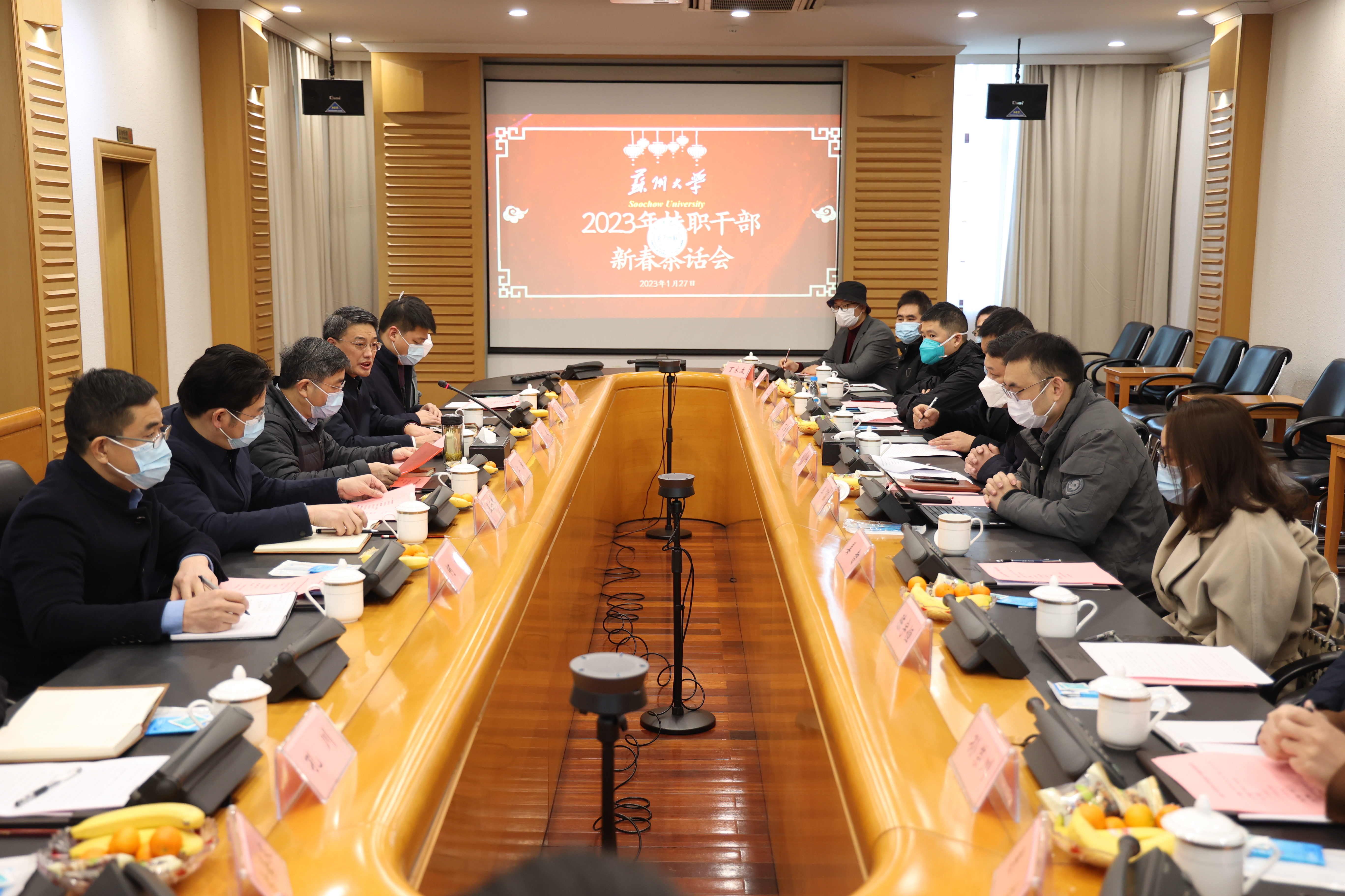 1月27日上午,我校在红楼会议中心召开2023年挂职干部新春茶话会。校党委书记江涌向全校挂职干部及其家属表示诚挚问候、致以新春祝福,勉励挂职干部在推动产学研合作、校地共同发展中展示新担当,做出新贡献。省第十五批科技镇长团成员、省帮扶工作队队员、省派驻村第一书记、苏州市挂职年轻干部、中组部第22批博士服务团成员的16名挂职干部代表,党委办公室、党委组织部、人力资源处、科学技术研究院主要负责同志参加了茶话会。会议由校党委副书记邓敏主持。 江涌代表学校向挂职干部表示感谢和祝福,充分肯定了大家克服诸多困难,到基层服务地方发展所付出的辛勤努力。他指出,2022年面对复杂多变的疫情形势,学校在全体师生的共同努力下,统筹做好疫情防控工作,在党的建设、队伍建设、学科建设、人才培养、社会服务等各项事业中取得了新发展和新成效,挂职干部在精准扶贫、校地共建、推动科技成果转化等方面同样取得了优异成绩。2023年是全面贯彻落实党的二十大精神的开局之年,站在新的起点上,希望挂职干部要进一步提高政治站位,用党的二十大精神统一思想、凝聚力量、推动工作,充分发挥学校在学科、专业、人才等各方面的综合优势,继续当好弘扬苏大人精神的“宣传员”和干群关系的“润滑剂”,做好学校与地方桥梁纽带的“联络员”和促进社会经济发展的“服务员”,为学校和地方高质量发展搭建更有效的校地合作平台,留下苏大人良好的形象和口碑。 会上,张庆、李振、丁海峰、姜智、杨晓勤、陈宇恒、胡增荣、孙荣川、孙迎辉、张浩、丁家友、张维延、徐超、郭才正、古海波、孔川等16位挂职干部先后发言。大家围绕强化校地联动推进科技创新与人才合作、巩固脱贫攻坚成果推进乡村全面振兴、深度融入服务地方经济发展社会发展等方面工作交流了成果与体会,并对2023年工作进行了展望。与会同志纷纷表示,感谢学校给予挂职干部各方面的关心支持,挂职岗位为自身走进改革发展“主战场”、走上项目攻坚“第一线”、走到服务群众“最前沿”提供了良好的机会,挂职历练也让自己在工作意识转变、工作作风优化和工作能力提升方面有了长足进步,为今后开展各类工作奠定了更加扎实的经验基础与思想保障。未来将继续砥砺奋斗,不负学校重托,更好地为学校融入地方经济社会发展出谋划策、联络沟通、贡献力量。 校党委常委、党委组织部部长王云杰表示,挂职干部扛起责任担当,在基层一线锻炼成长,开展了许多开拓性的工作。今后学校相关部门将更加关心支持挂职工作,做好坚强后盾,协调解决实际困难,帮助挂职干部取得更大工作成效。 邓敏在主持会议时强调,挂职时间虽有限,但挂职干部担当作为、履职奉献,沟通合作、团结奋斗无止尽。新的一年,希望挂职干部紧紧围绕贯彻党的二十大精神和习近平新时代中国特色社会主义思想,结合岗位工作实际,用力用功、用心用情擦亮我校干部挂职工作“名片”,为更好服务地方经济发展和学校高质量发展作出更多积极贡献。