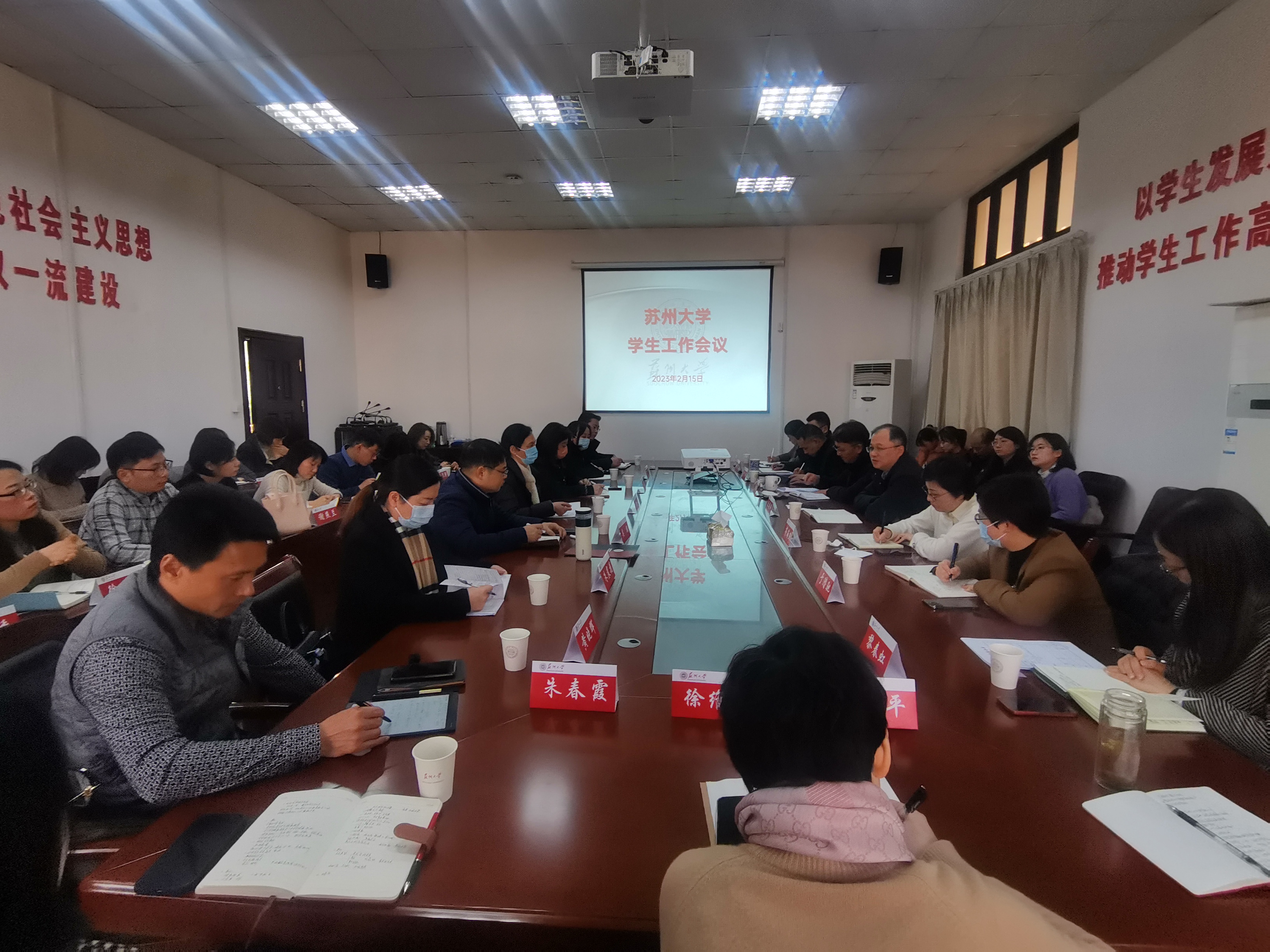 2月15日下午,我校召开新学期学生工作专题会议,研究部署新学期开学工作及开学后学生工作的重点任务。校党委副书记王鲁沛,校团委、保卫部(处)等相关职能部门领导,各学院(部)分管学生工作领导,学生工作部(处)及党委研究生工作部各科室负责人参会。会议由学生工作部(处)部(处)长董召勤主持。