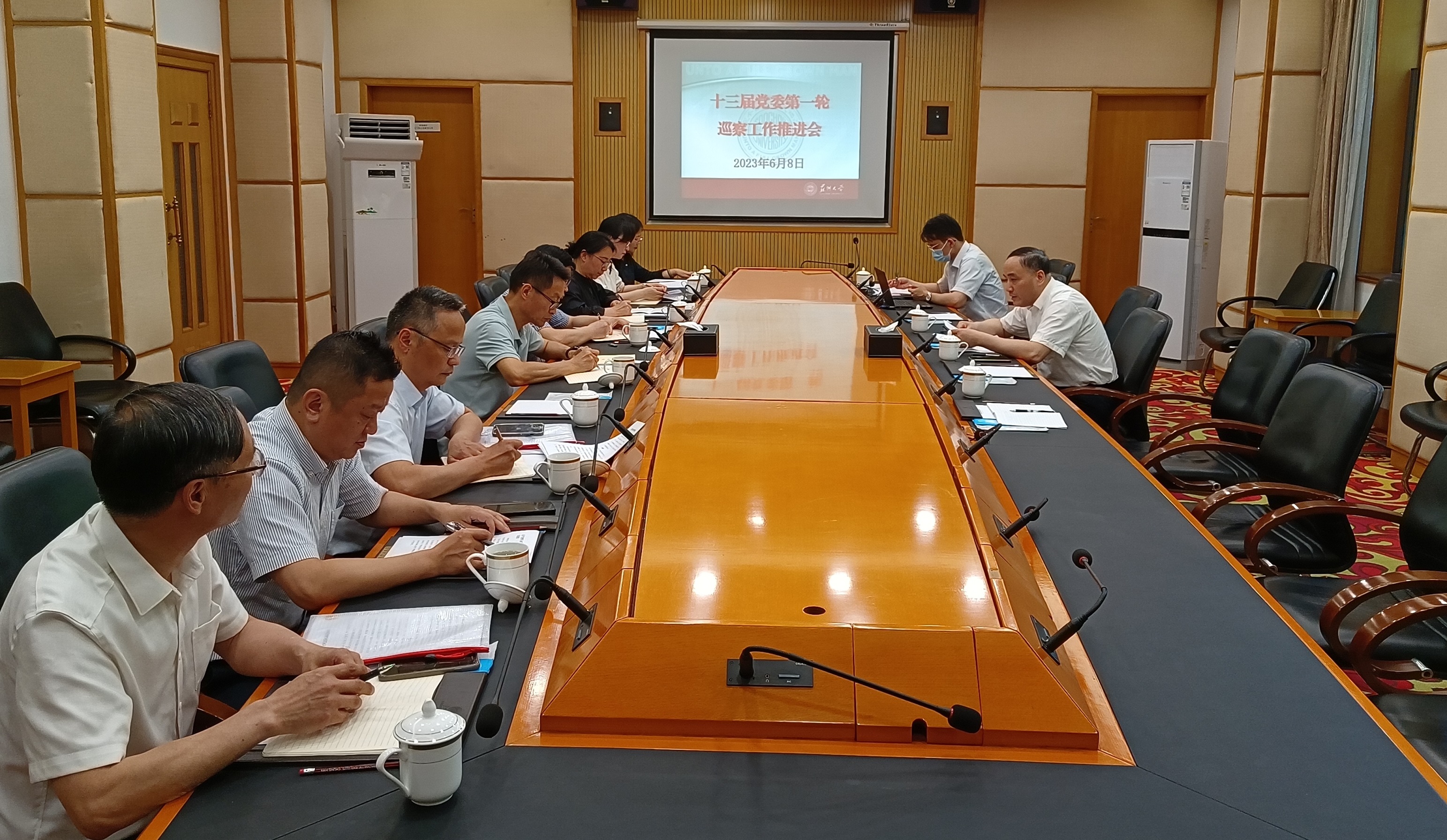 为高质量推进校党委第一轮巡察工作,按照校党委统一部署,6月8日下午,校党委常委、纪委书记、派驻监察专员、巡察工作领导小组副组长宫向阳在红楼会议中心201会议室,主持召开校十三届党委第一轮巡察工作推进会。各巡察组副组长及巡察办相关人员参加会议。