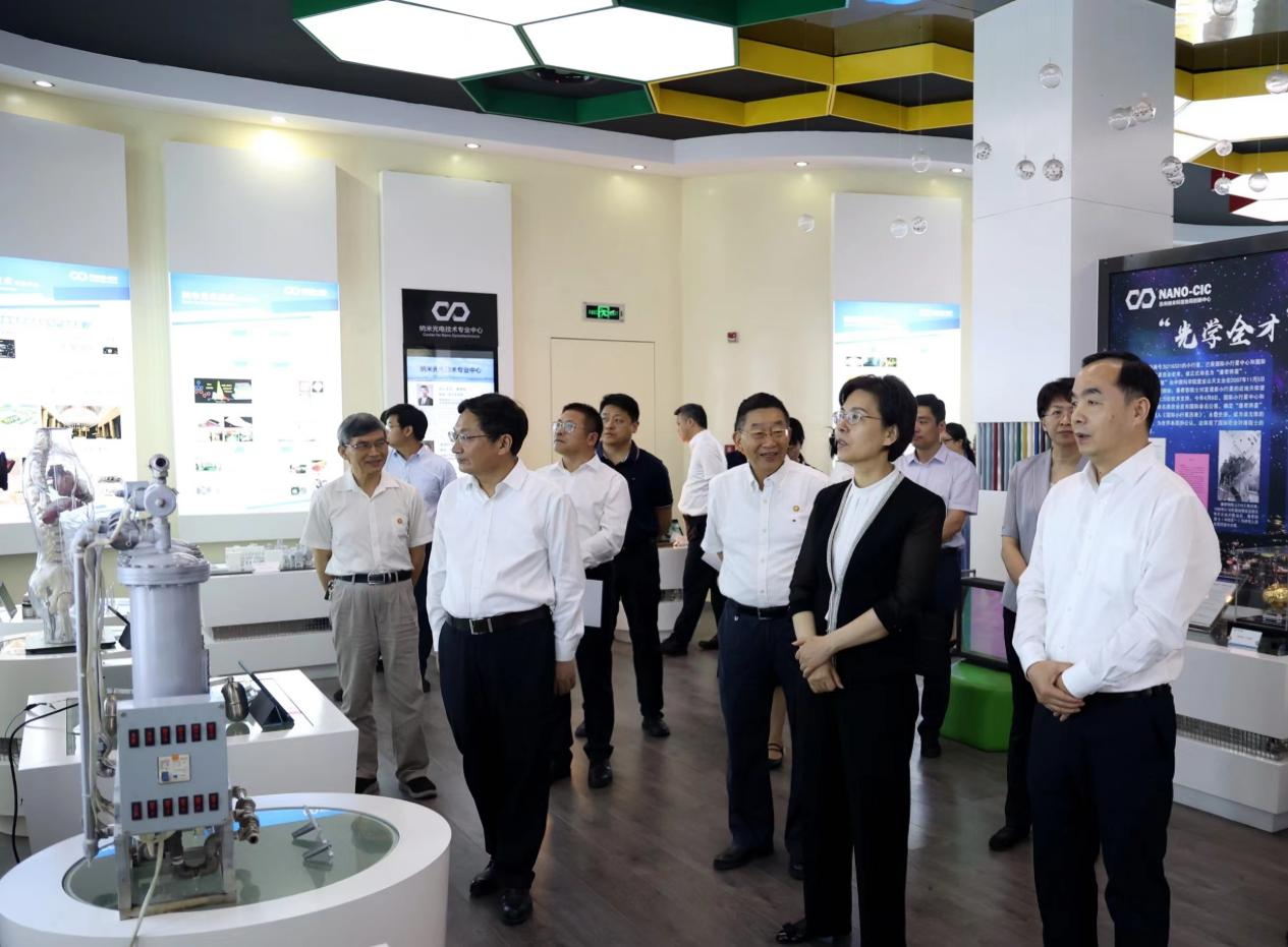 徐缨一行参观了独墅湖校区炳麟图书馆大厅的就业标兵展,实地考察了苏州纳米科技协同创新中心、放射医学与辐射防护国家重点实验室,详细了解学校在人才培养、科技创新、成果转化、校地合作等方面的具体情况。徐缨赞赏了苏州大学科研人员攻坚克难,在产学研一体化推进过程中取得的突破与成效,勉励科研工作者再攀高峰,在科技自立自强方面再创佳绩。