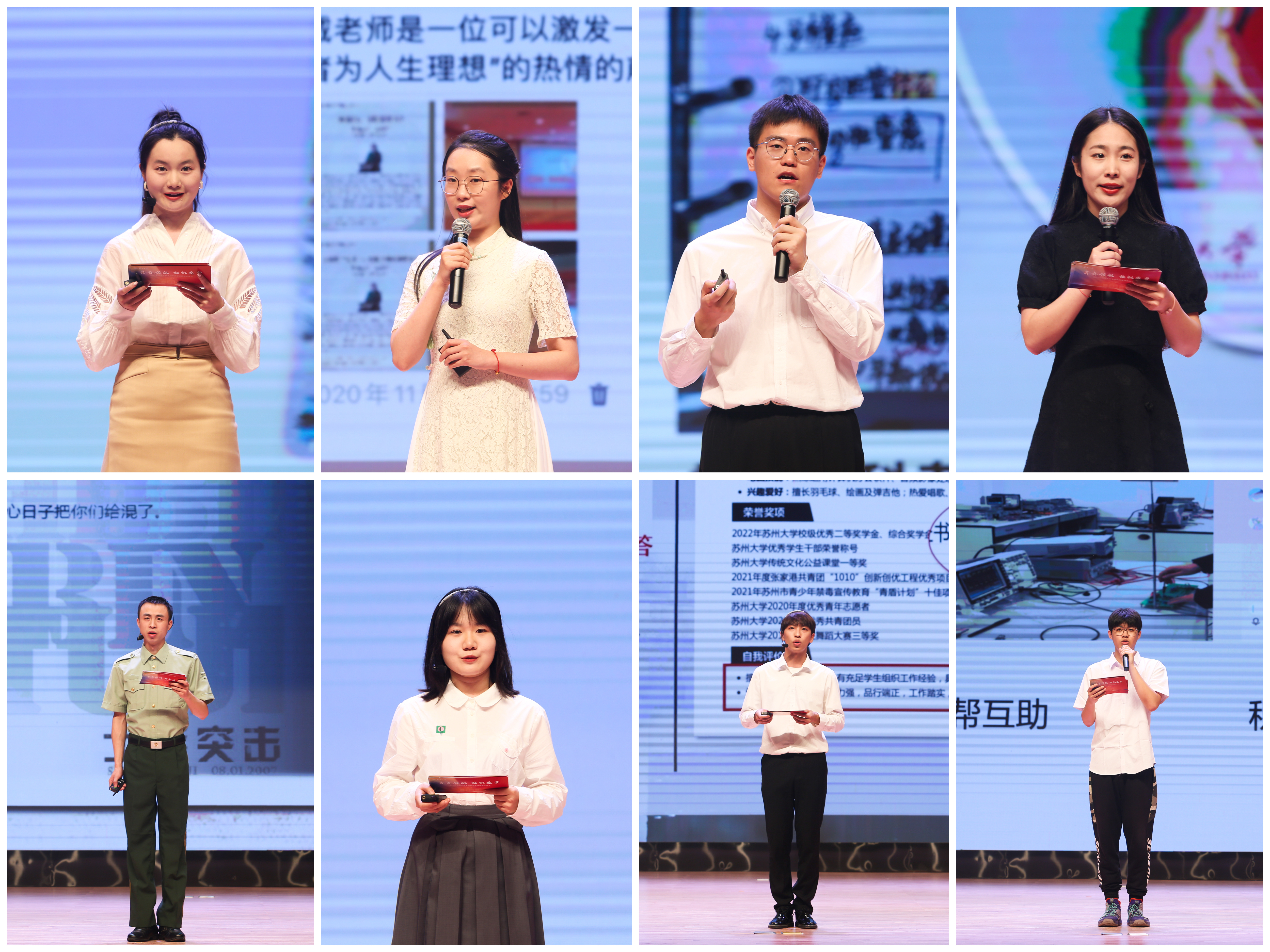 外国语学院顾辰阳、唐文治书院赵雨萌、苏州医学院高羽烜、计算机科学与技术学院王艺洁、纺织与服装工程学院鲜孟森、政治与公共管理学院方思语、文学院黄依龙以及学霸宿舍代表——电子信息学院甘岳林等八名同学依次分享了备战考研的奋斗故事和心路历程。他们用一个个鲜活的备考故事,讲述了对梦想的执著,对科学真理的憧憬,鼓励学弟学妹们在求学的路上要志存高远、持之以恒,以锲而不舍的决心和毅力攀登学术高峰,追寻真理的光芒。