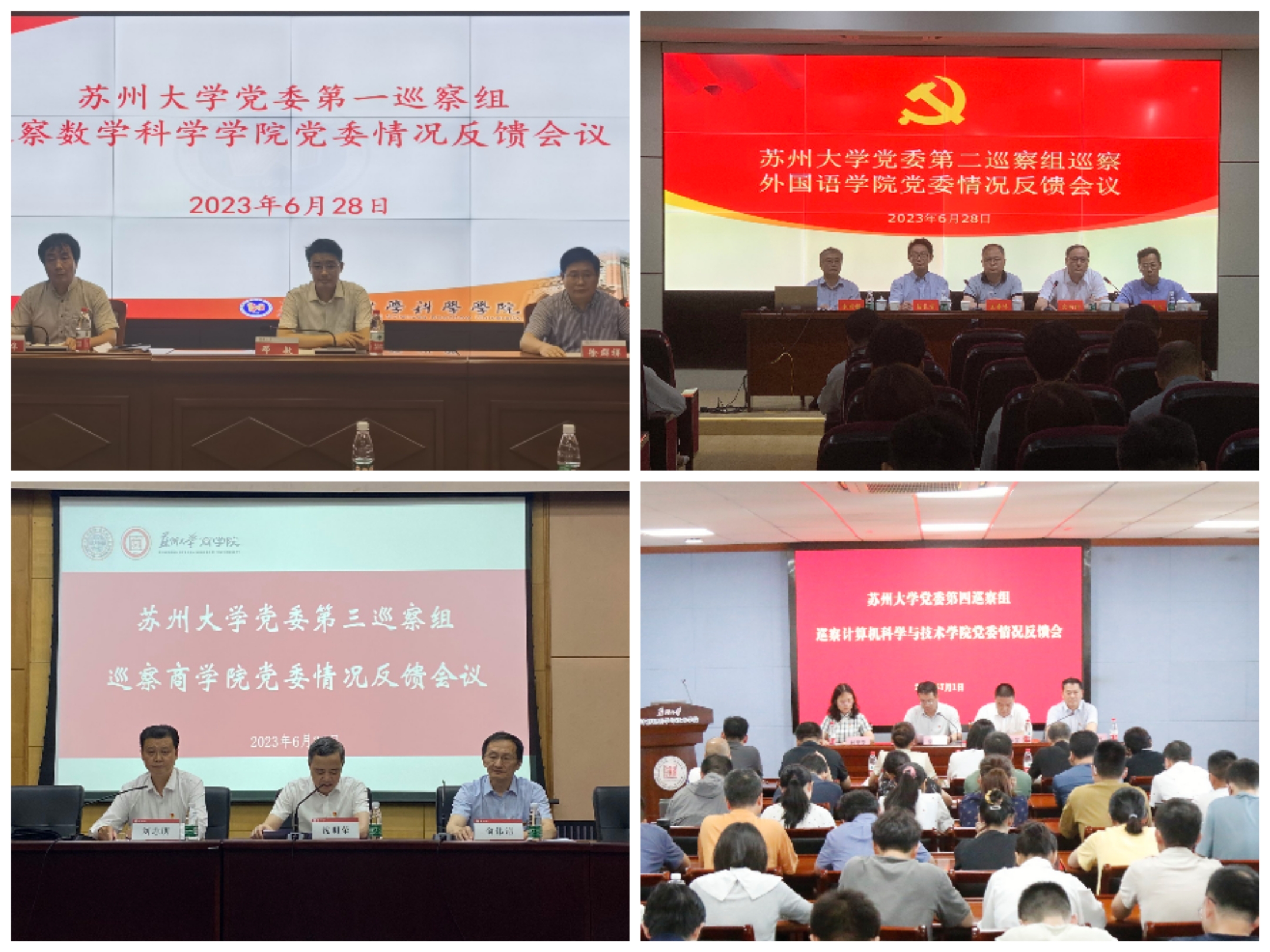 根据校党委巡察工作统一部署,校十三届党委第一轮巡察八个巡察组意见反馈工作于6月28日至7月1日全部完成。各巡察组组长向被巡察党组织反馈巡察意见,巡察工作领导小组副组长、成员单位主要负责人分别在巡察反馈会上讲话。各巡察组全体成员、各被巡察党组织党政领导班子成员及全体教职工参加了反馈会。