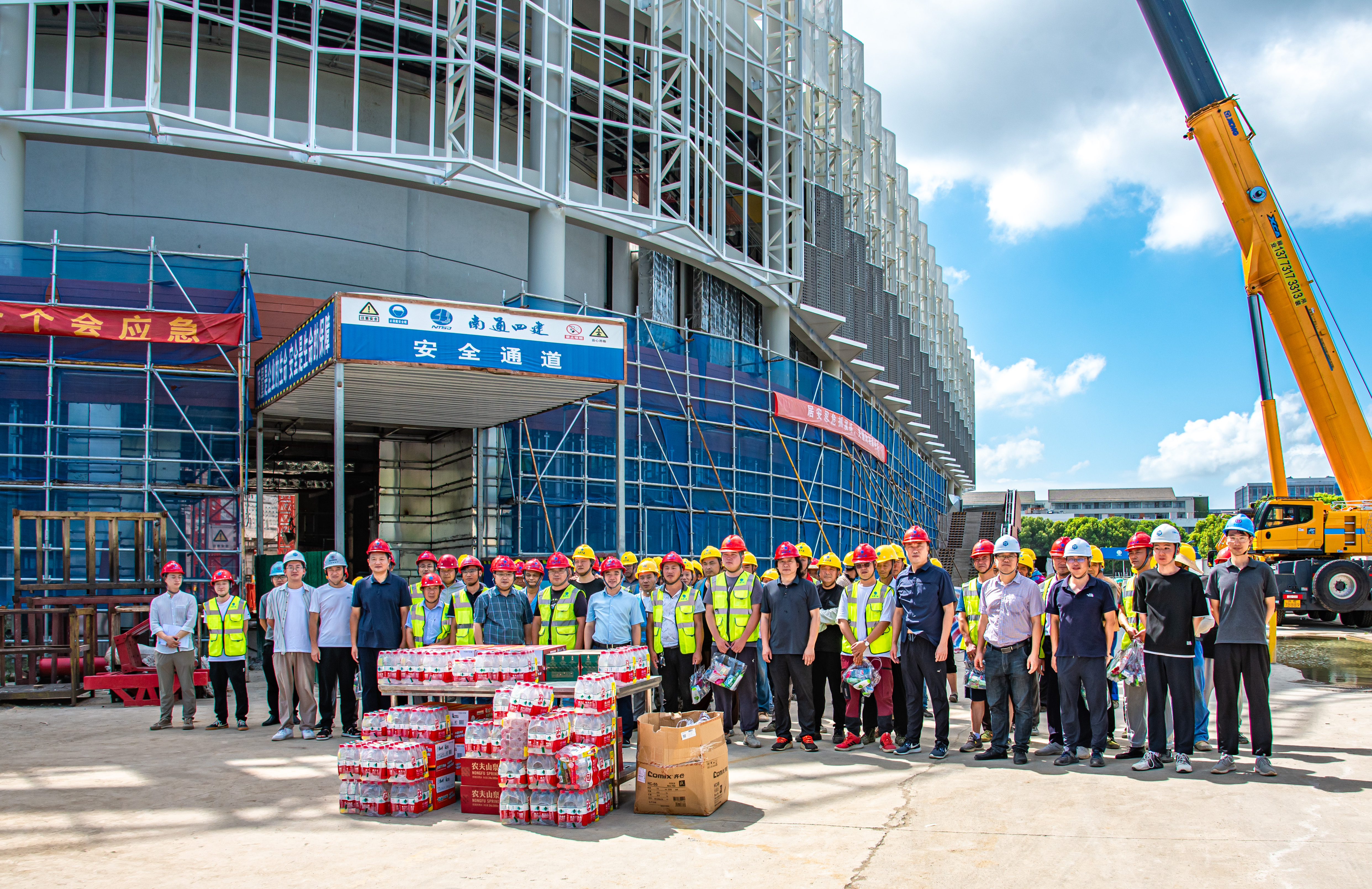 查佐明一行先后来到独墅湖校区公教楼、独墅湖校区五食堂、独墅湖校区体育馆与学生活动中心、东区7号8号宿舍、本部逸夫楼等施工现场,为施工人员送上毛巾、花露水等消暑用品,对一线人员兢兢业业的工作态度和为学校建设发展做出积极贡献的精神给予肯定,感谢大家不畏辛苦坚守岗位,并叮嘱大家注意安全,做好防暑降温工作、劳逸结合,保重身体。