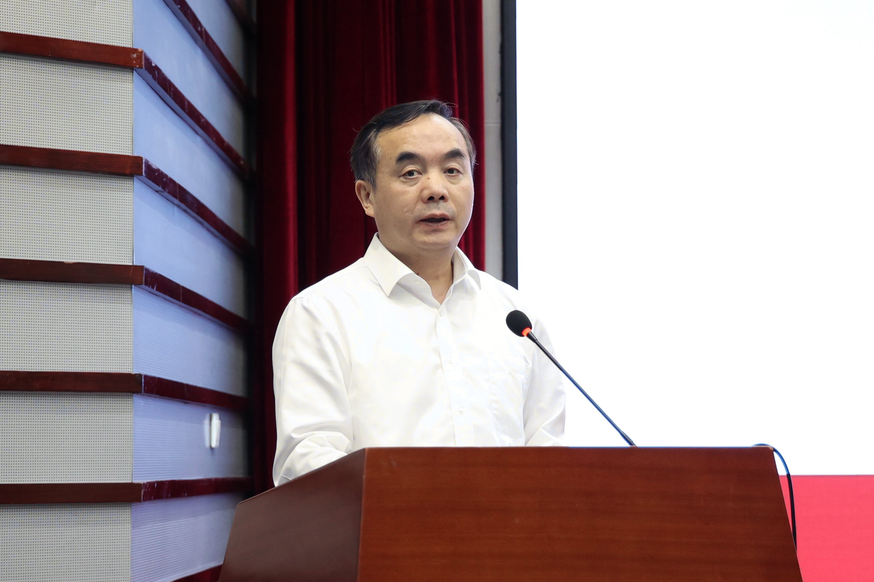 文学院党委书记宋清华、数学科学学院党委书记逢成华,分别代表校十三届党委第一轮巡察的巡察组和被巡察党组织在会上作交流发言。