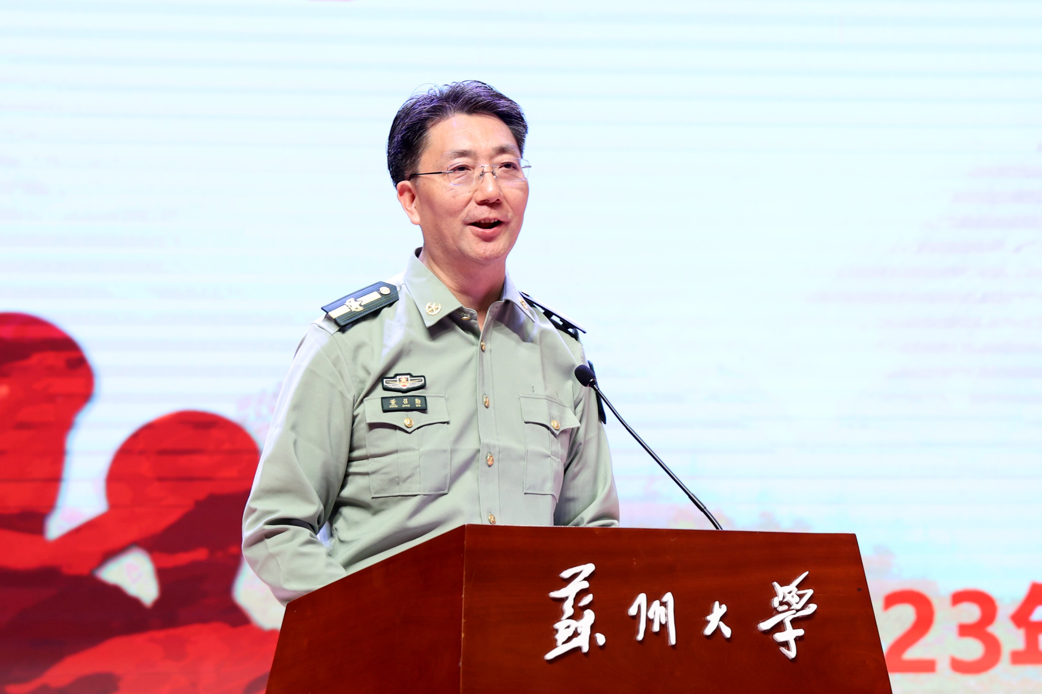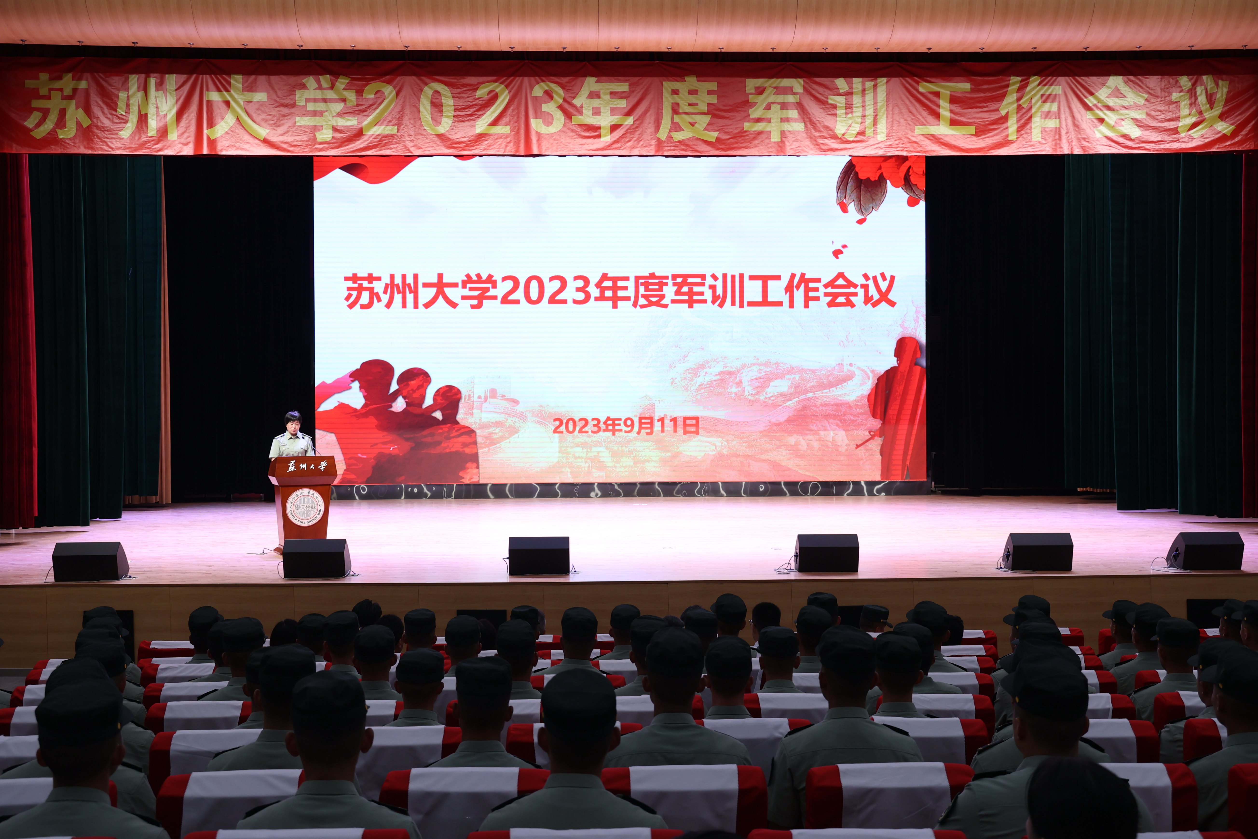 9月11日上午,苏州大学2023年度军训工作动员会在天赐庄校区存菊堂召开。校党委副书记邓敏,党委常委、副校长查佐明,中国人民解放军陆军某部领导、苏州大学军训师师长谢教官,我校学生工作部(处)部(处)长、人民武装部部长、苏州大学军训师政委董召勤,全体承训教官,学校军训工作领导小组成员单位相关负责人,各军训团、营领导,2023级本科生和辅导员出席动员大会。会议由学生工作部(处)副部(处)长、人民武装部副部长宋海英主持。