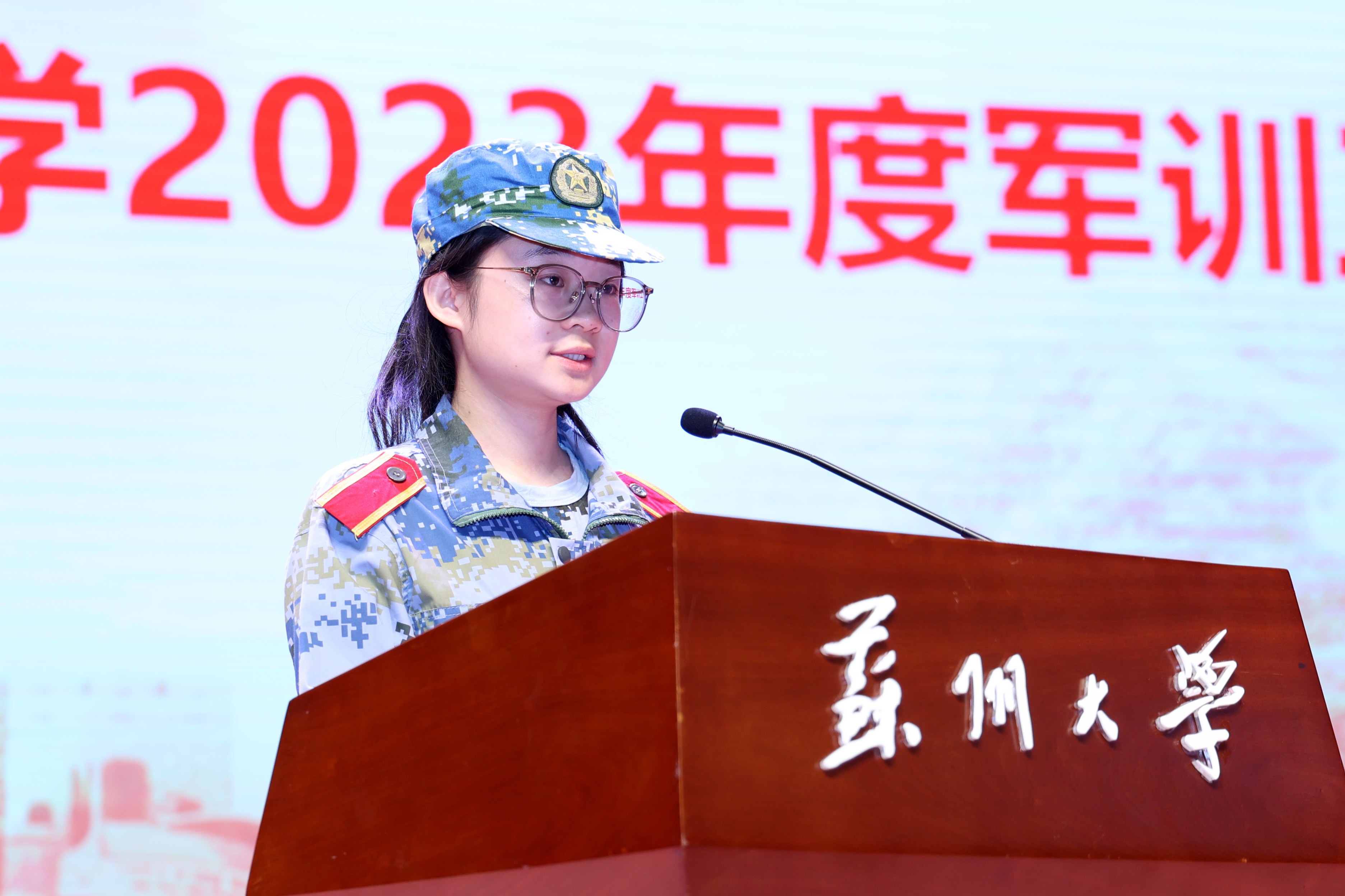 谢教官代表全体承训官兵向苏州大学对人民子弟兵的信任表示衷心感谢。他指出,为期两周的军训是一项神圣而又艰巨的光荣任务,全体承训教官定会牢记使命、不负重托,遵规守纪、严谨作风,帮助同学们掌握好各类军事基础技能、锤炼好过硬的严谨作风、锻造好顽强的奋斗意志。希望同学们能通过军训为下一步的学习和生活打下坚实的思想、心理和身体基础,争做堪当民族复兴重任的年轻人。