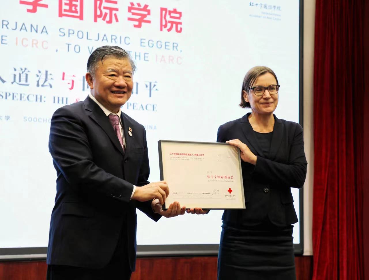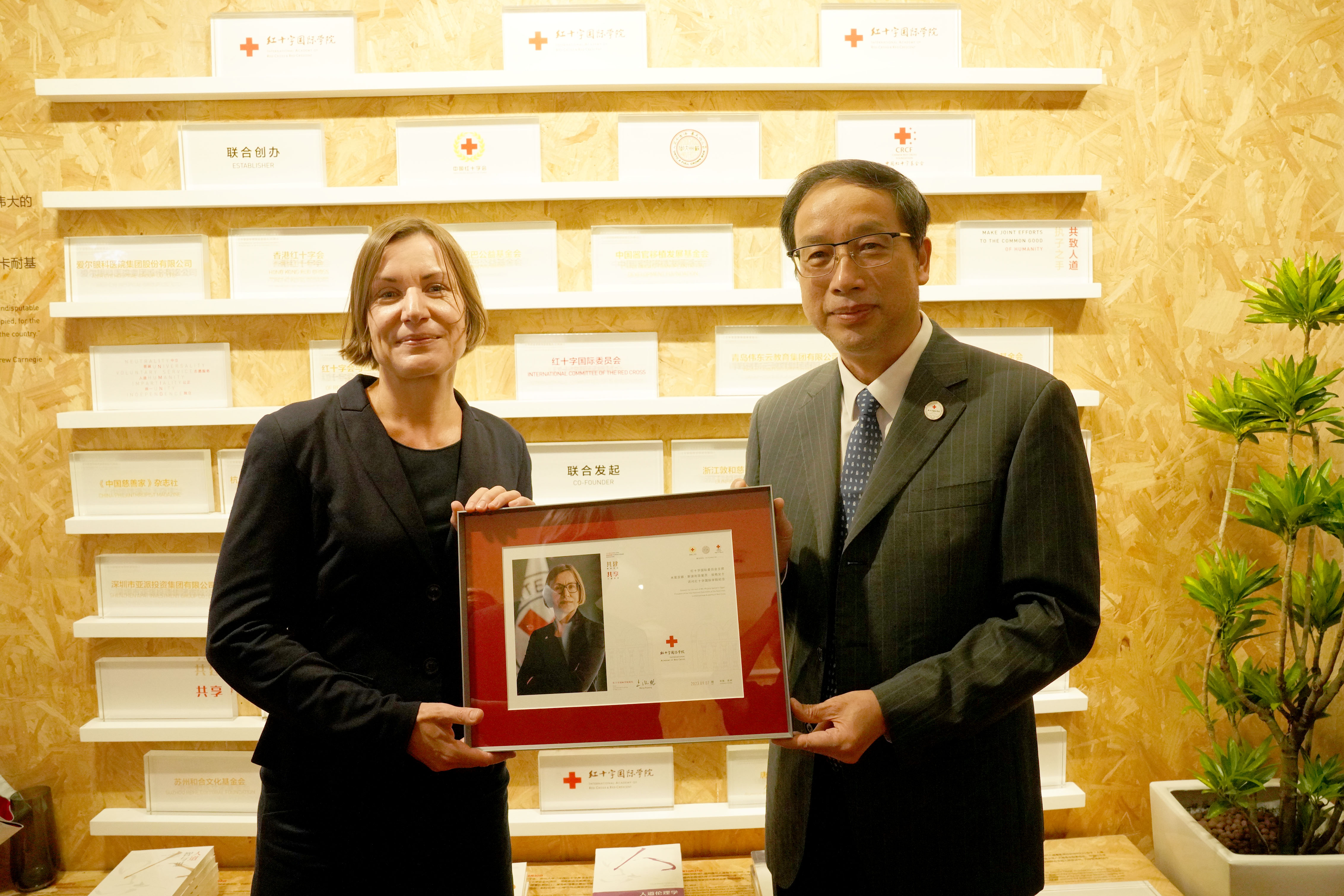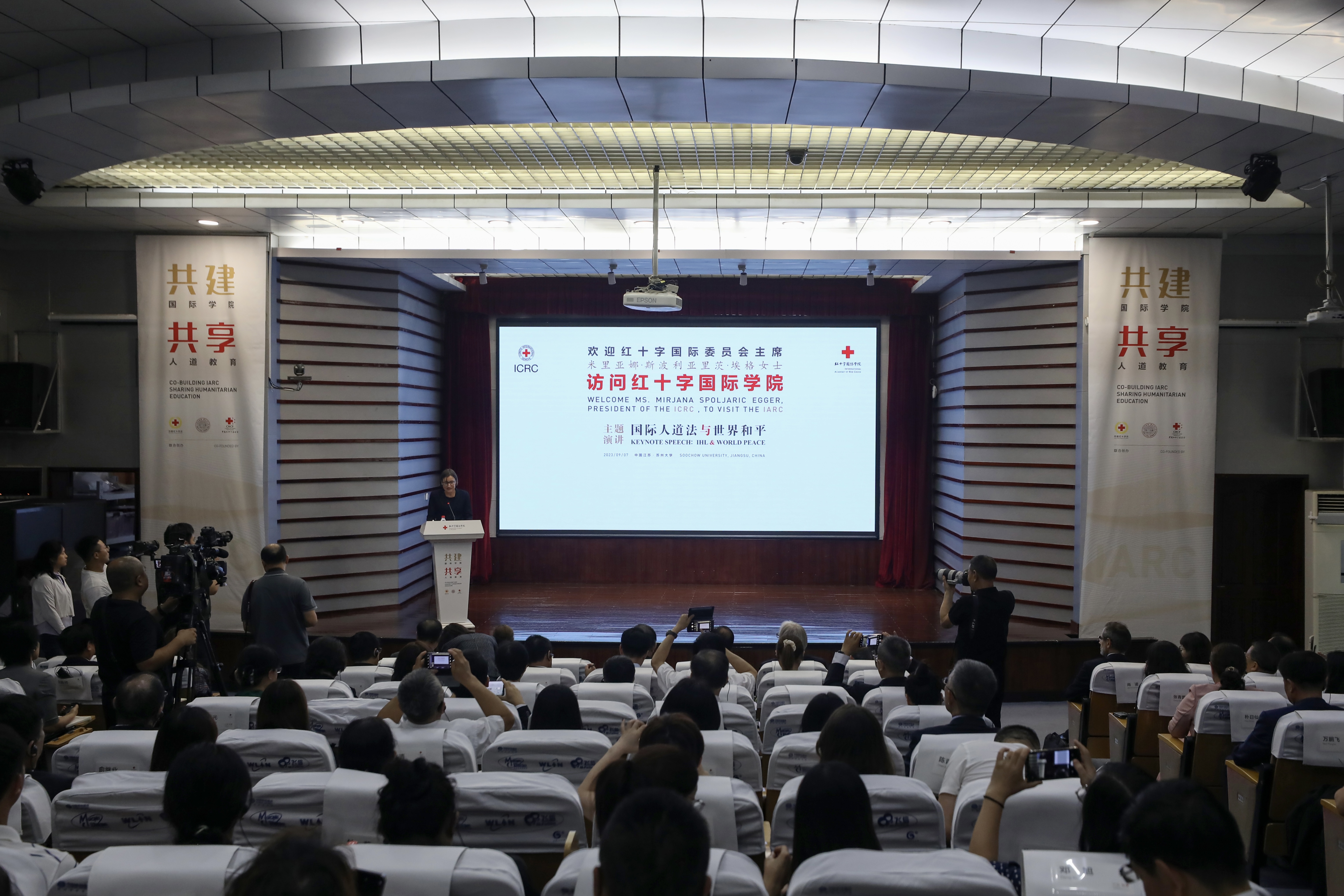 9月7日,红十字国际委员会(ICRC)主席斯波利亚里茨在中国红十字会副会长王平的陪同下,访问我校红十字国际学院,并发表题为“国际人道法与世界和平”的主题演讲。中国红十字会会长、红十字国际学院名誉院长陈竺出席活动,并向红十字国际委员会颁发“红十字国际学院联合共建人”荣誉证书。