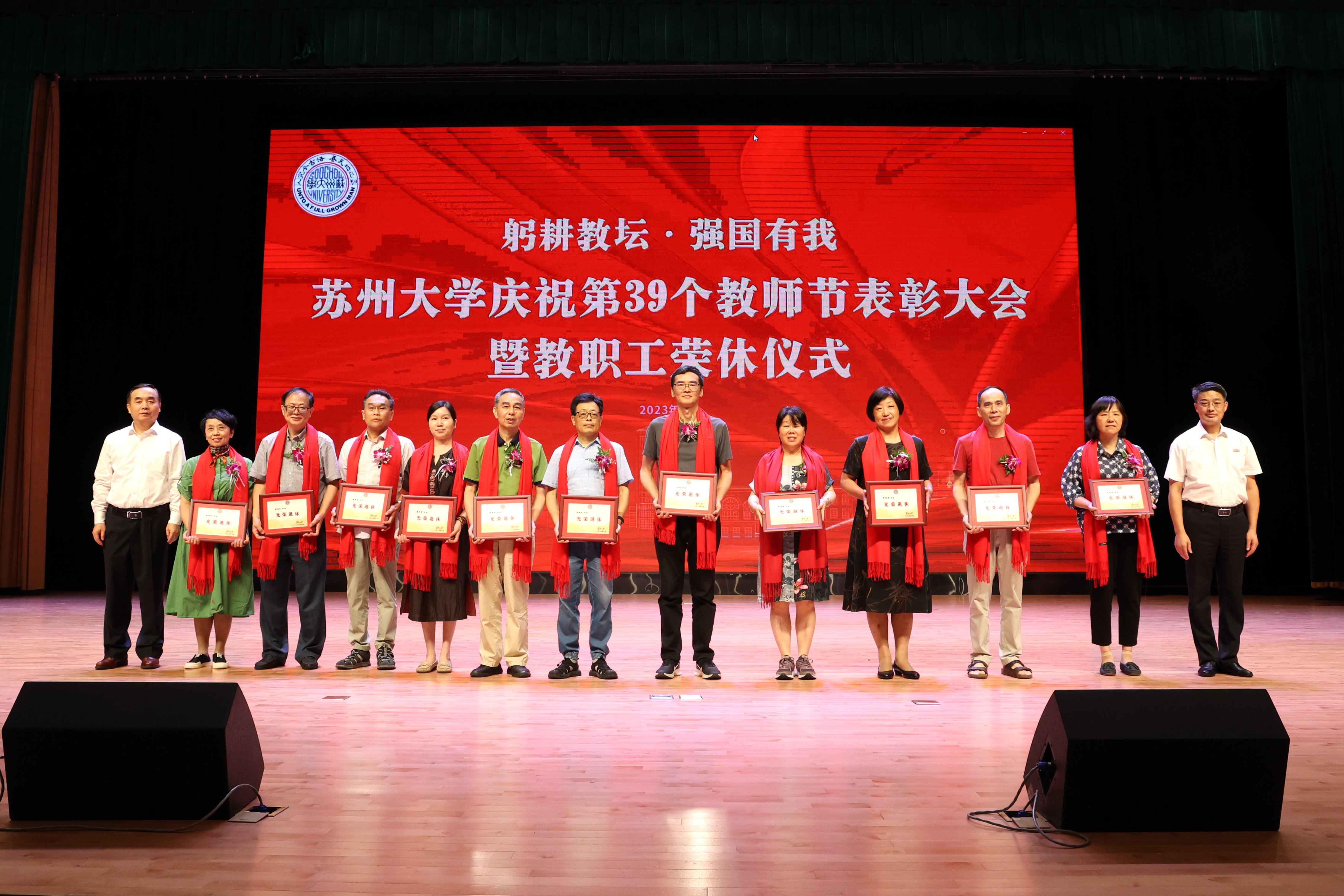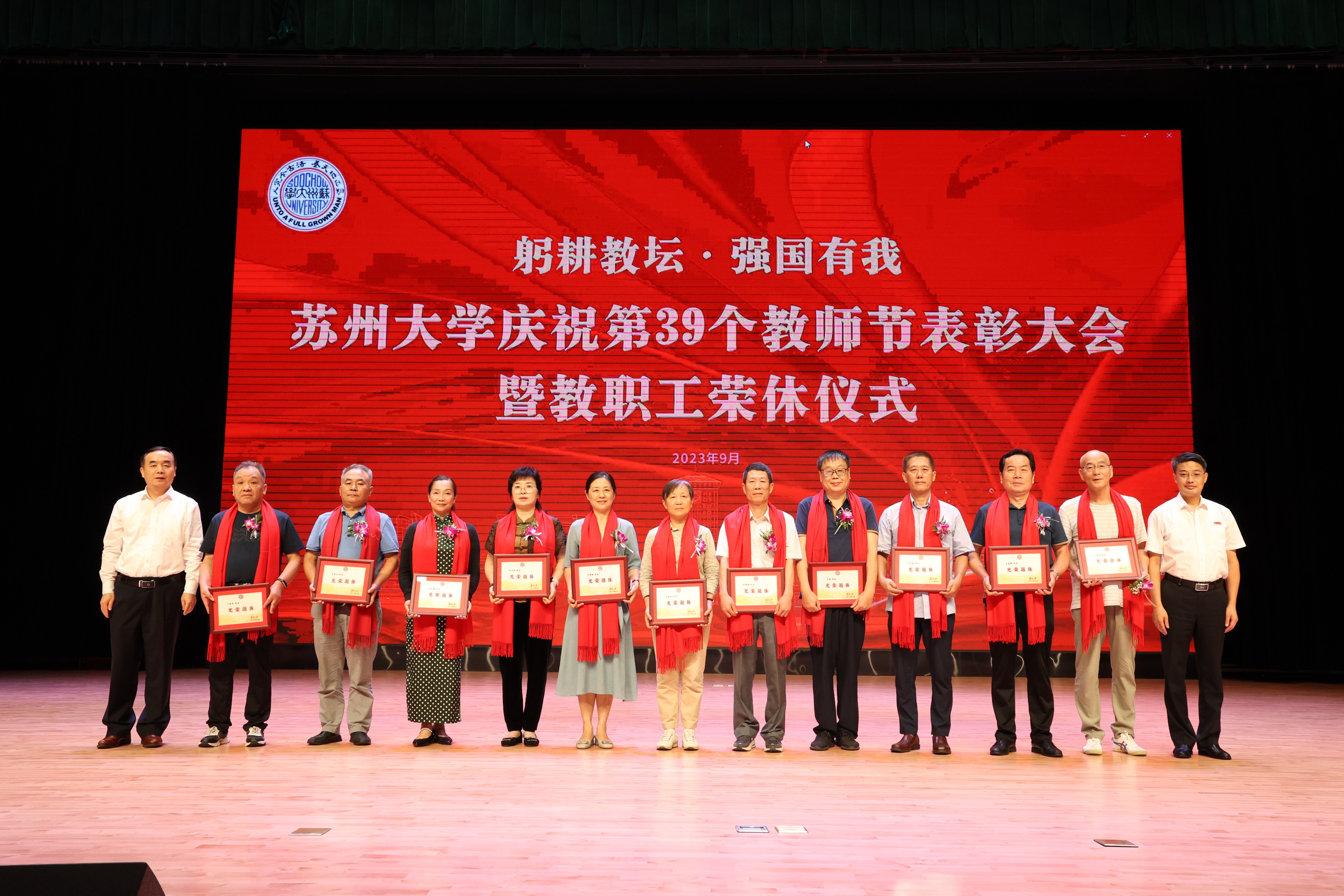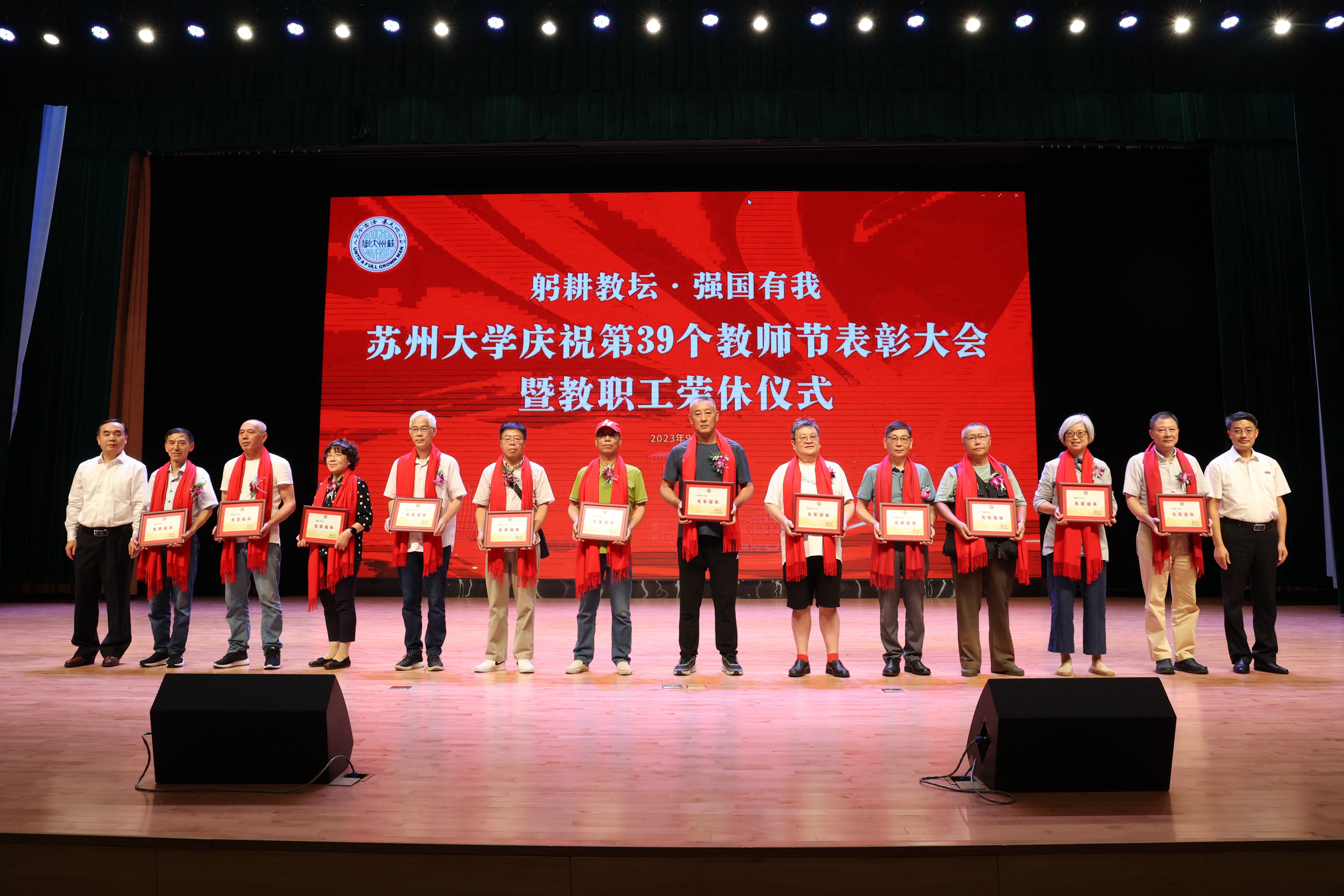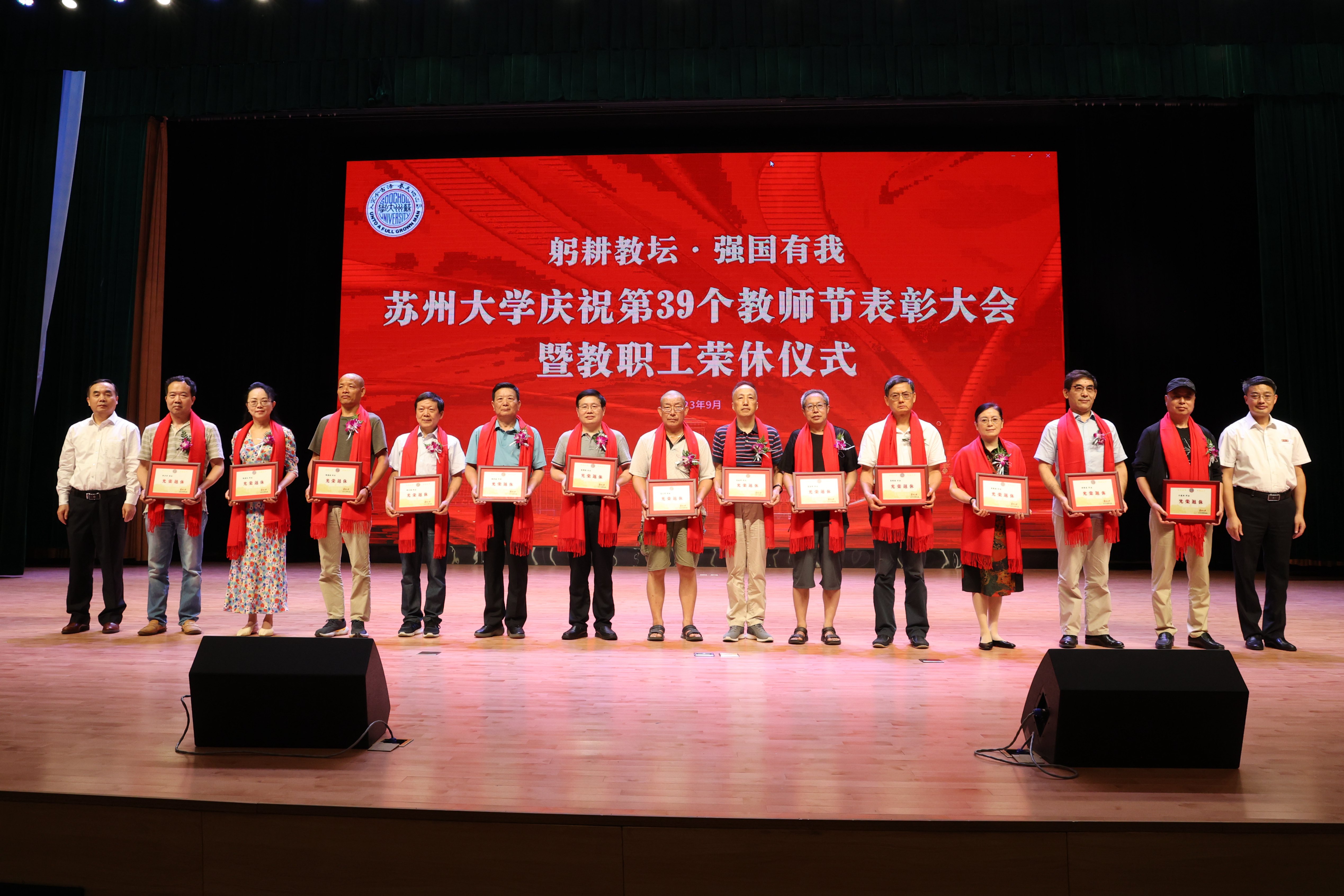 在第39个教师节来临之际,我校举行系列活动庆祝教师节。9月8日下午,苏州大学庆祝第39个教师节表彰大会暨教职工荣休仪式在天赐庄校区存菊堂举行。校党委副书记、校长张晓宏,在校校领导,部分院士,“高尚师德奖教金”获奖教师,荣休教职工以及工作满30年的教职工代表,各学院(部)、部门、直属单位主要负责人,教职工代表,学生代表参加了会议。会议由校党委常委、副校长姚建林主持。