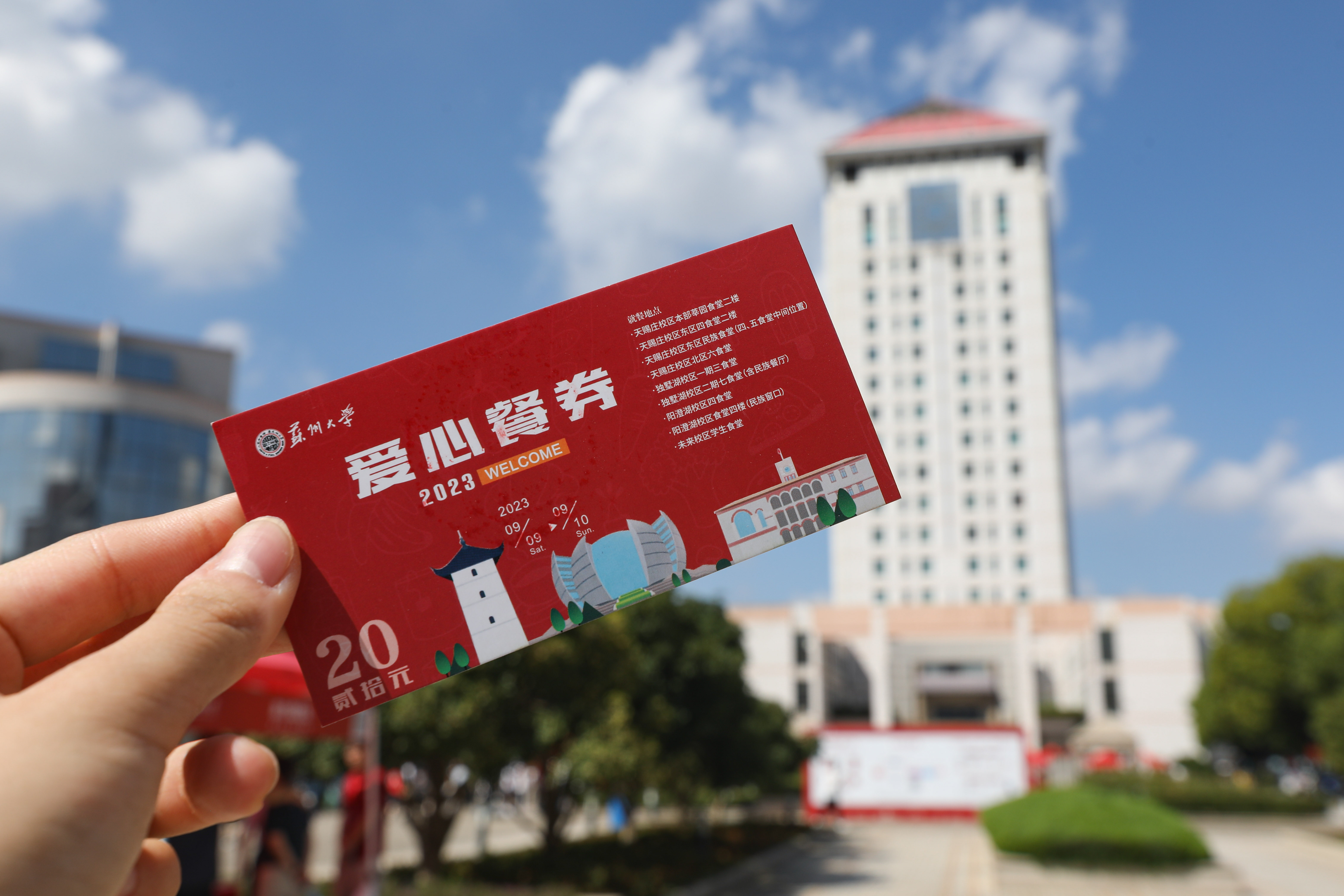 报到现场,学校专门设置了“绿色通道”,并为家庭经济困难学生准备了“爱心第一餐”餐券和“助梦大礼包”。同时,设立资助政策咨询区、助学贷款业务办理区、爱心礼包发放区等,大大提高了困难学生的入学办理效率。“很顺利,很暖心!学校给我父母也准备了餐券。”咨询过后,一位新生为苏大“一站式”入学服务点赞。
