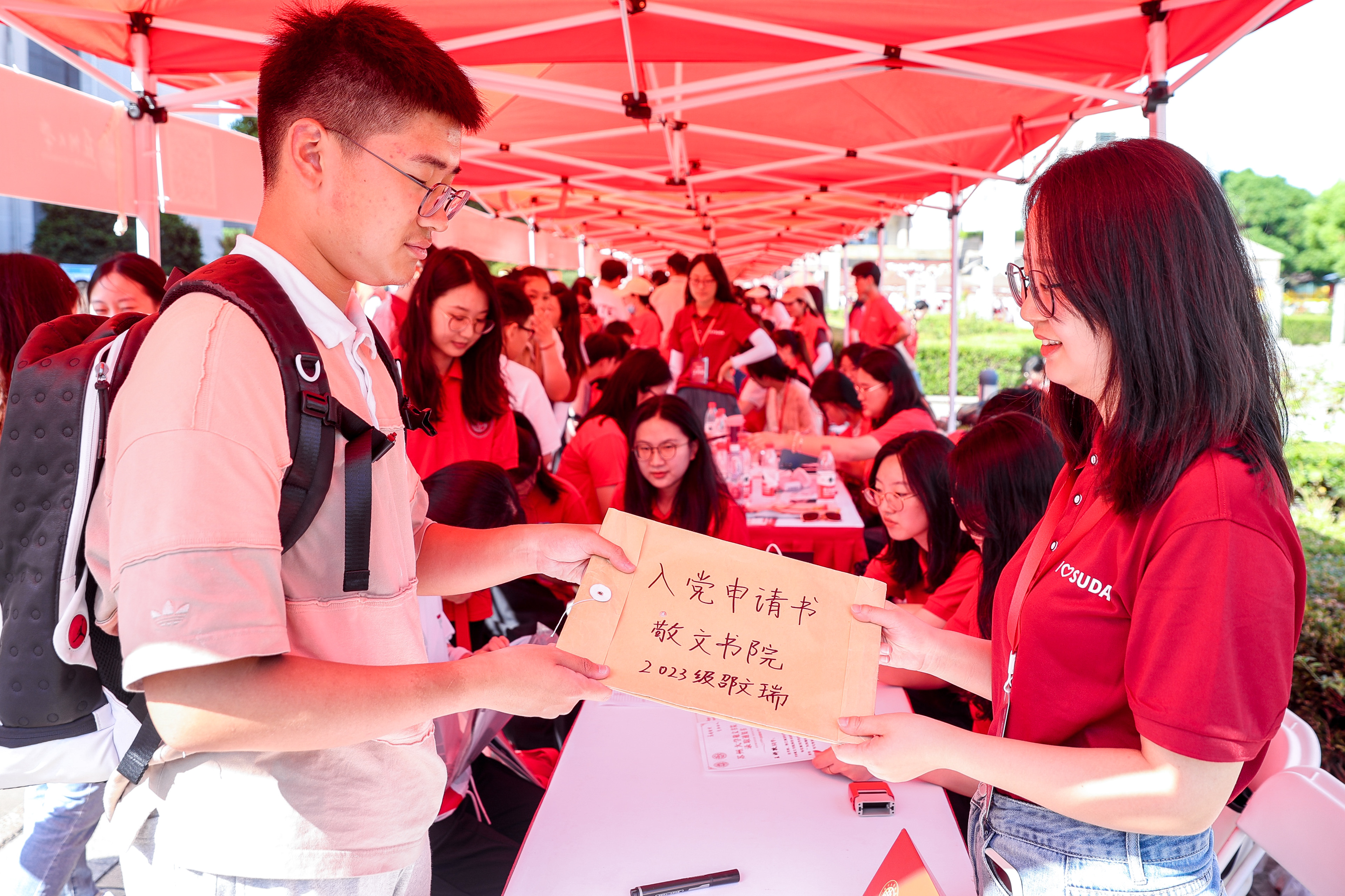 “老师好,我想提交入党申请书……”在敬文书院迎新点,新生邵文瑞郑重地将入党申请书递交到辅导员手里。据了解,邵文瑞的父母都是党员,从小他就在耳濡目染中树立加入中国共产党的志向。他说,回首自己的成长历程,感觉每一步成长都离不开党的关怀与培养。“暑假里,我就已经写好了入党申请书,前几天在书院公众号看到推送新生入党指南,让我对入党流程有了更深入的了解,就想在大学第一天提交入党申请书,这对我来说有不同的意义。”邵文瑞激动地说。