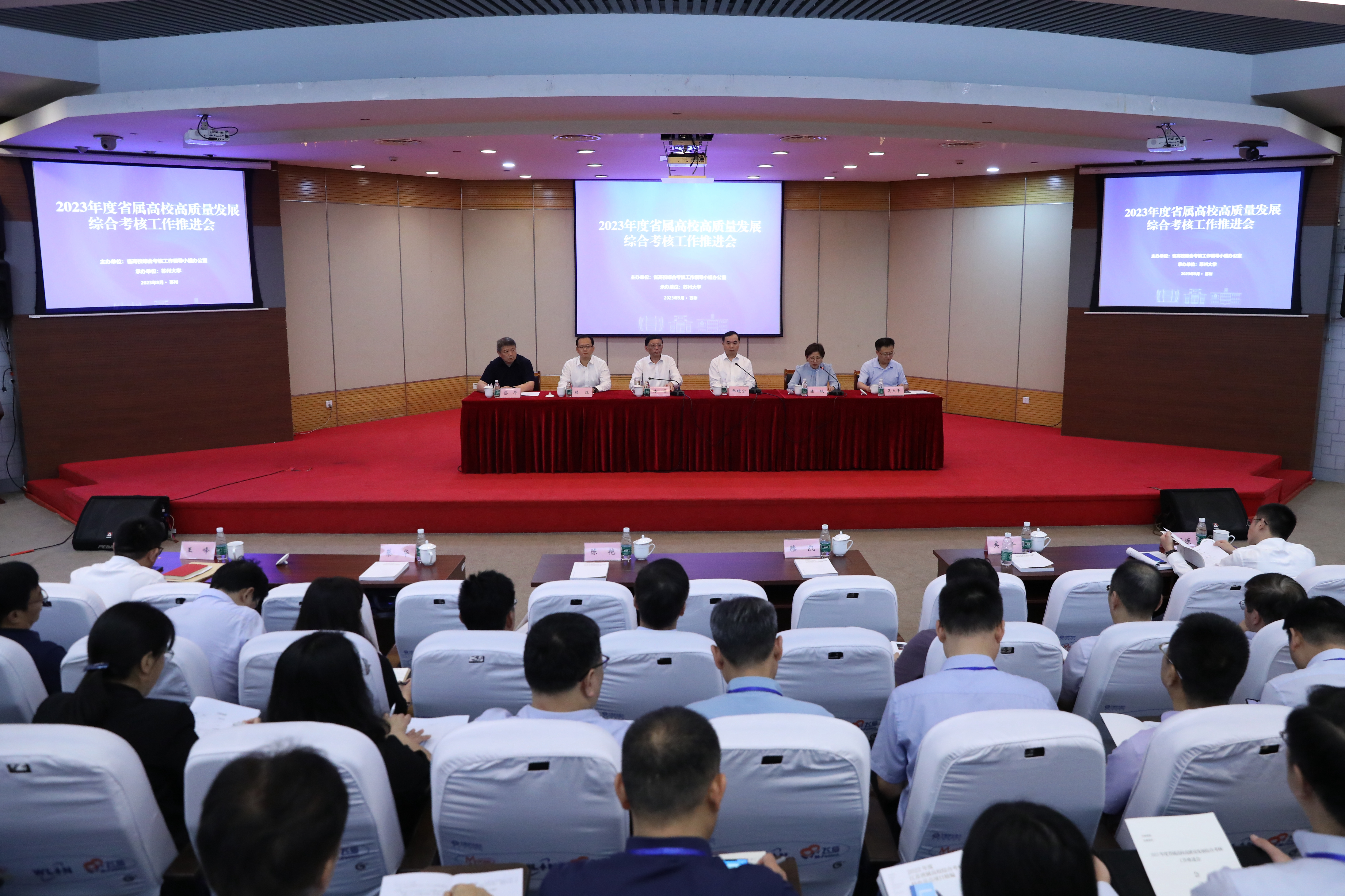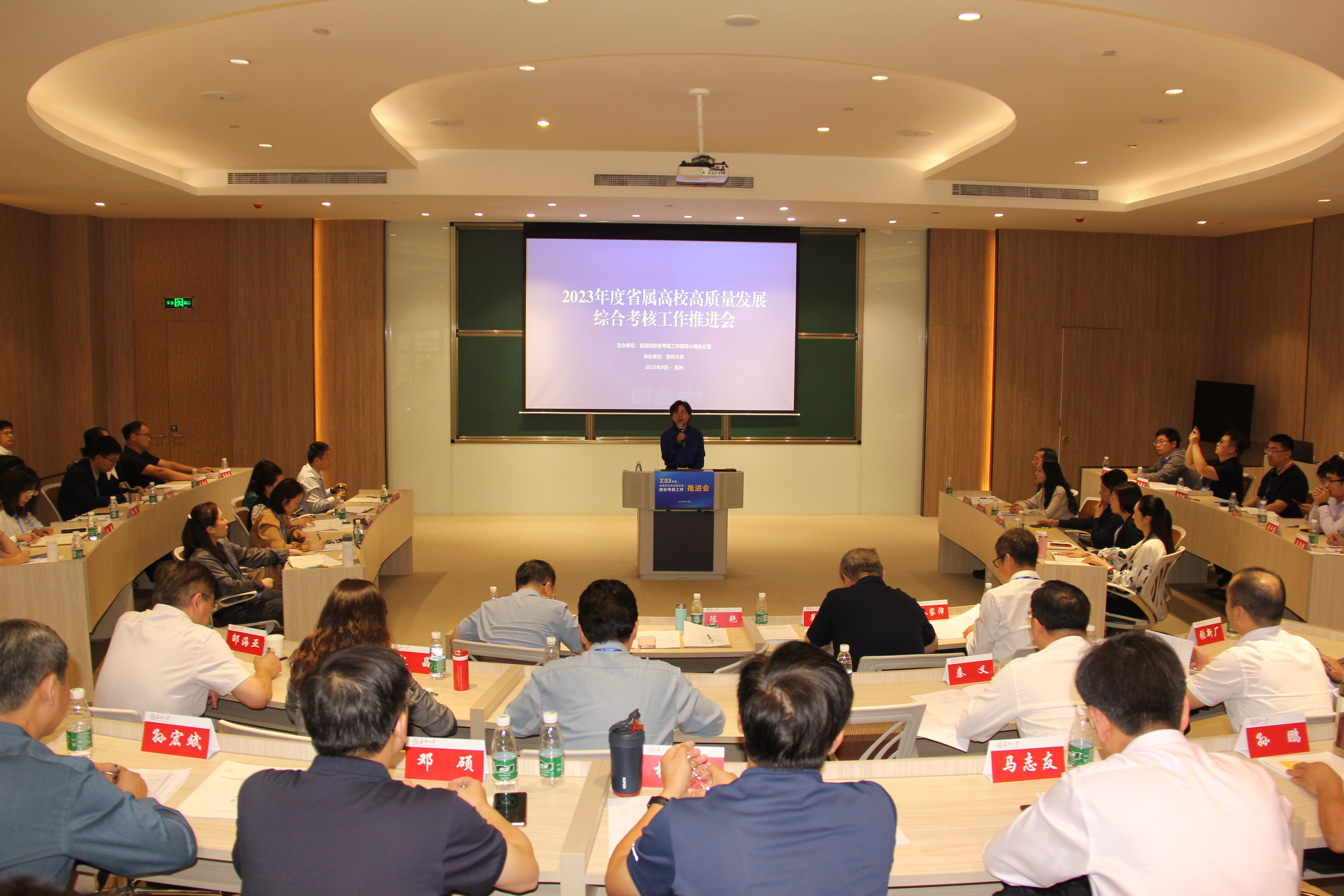 9月22日至23日,由江苏省教育厅主办、我校承办的2023年度省属本科高校高质量发展综合考核工作推进会在独墅湖校区举行。省委教育工委副书记、省教育厅党组成员潘漫,我校党委副书记、校长张晓宏出席会议并讲话。《群众》杂志社原副总编辑、江苏高质量发展评价研究院战略研究中心主任苗成斌作专题报告。省委组织部干部五处副处长滕凯到会指导。省教育厅考核牵头处室负责人、各省属本科高校党委组织部主要负责人及相关人员共70余人参加会议。会议由省教育厅组织处处长陈艳主持。