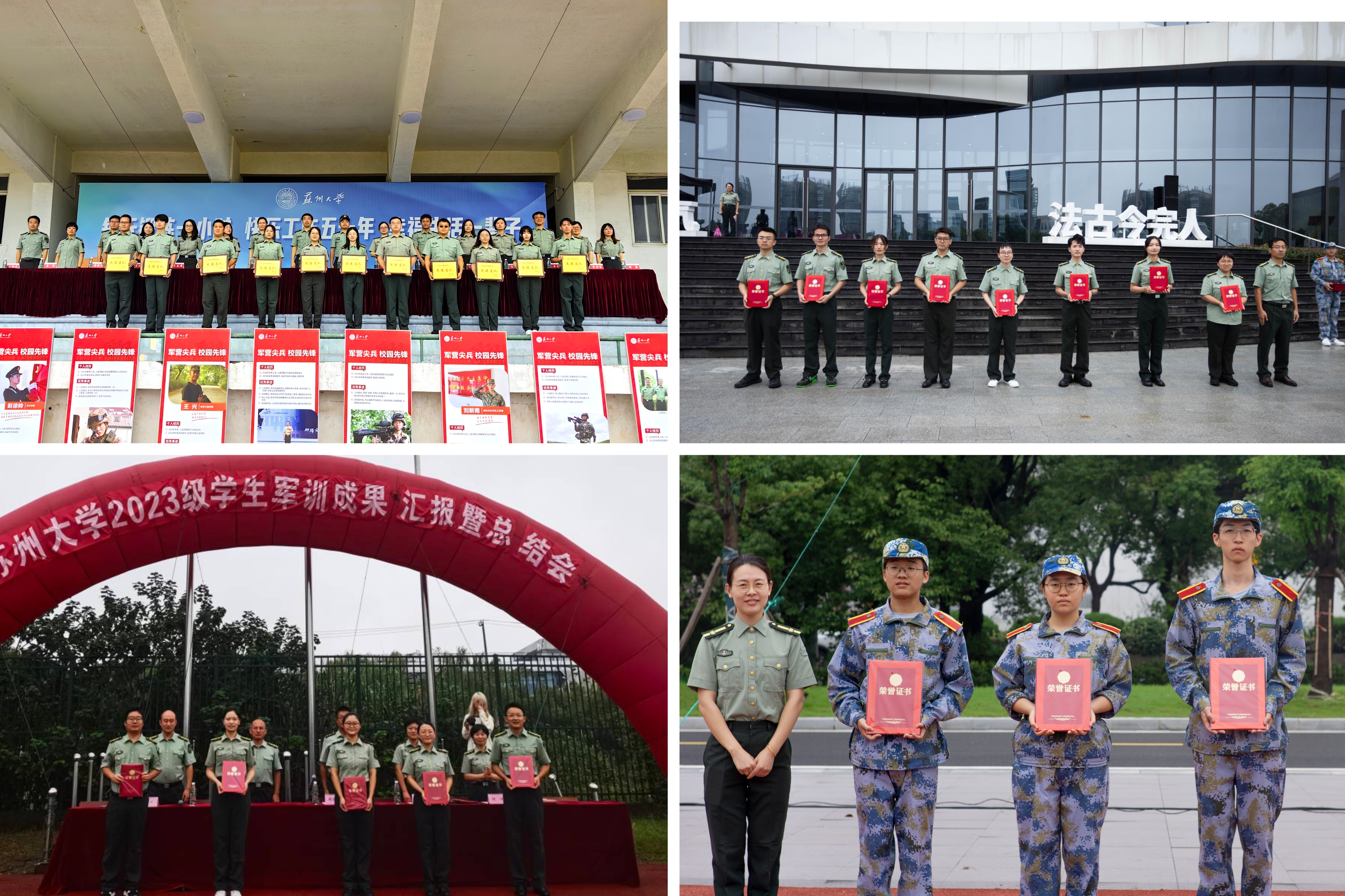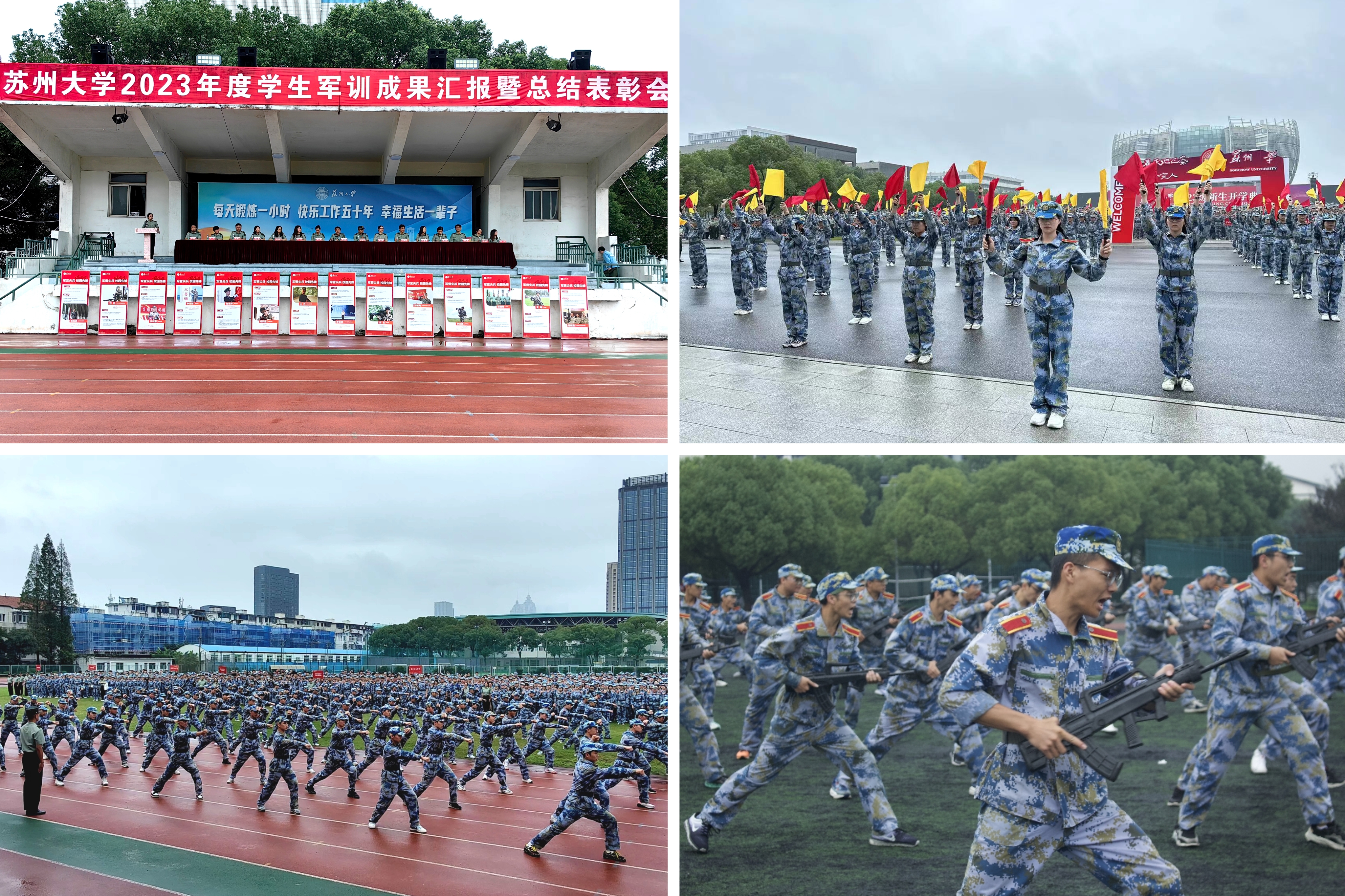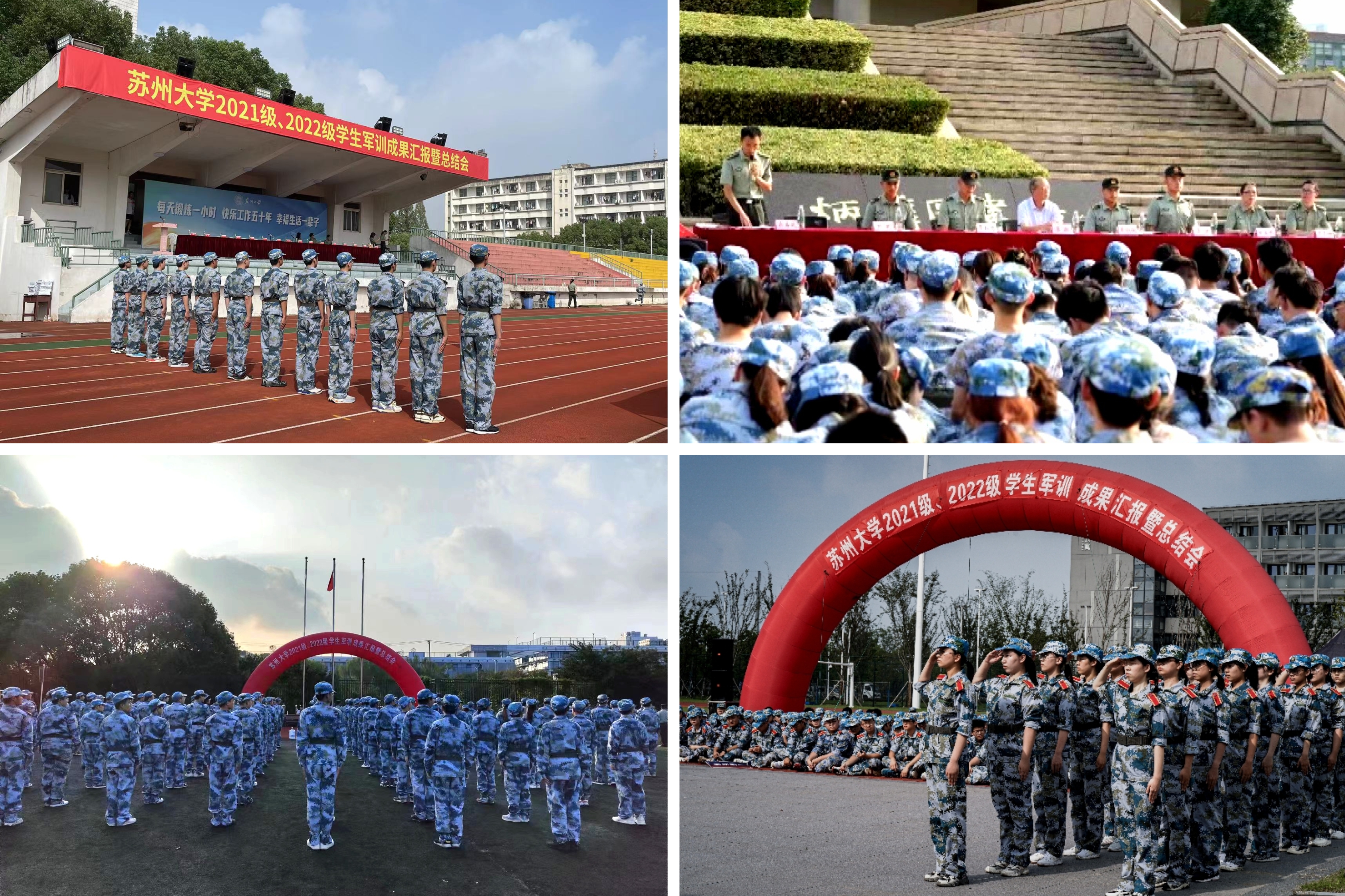 金秋九月,苏大校园里军歌嘹亮,迷彩飞扬。9月24日,我校以各军训团为单位分别在天赐庄校区操场、独墅湖校区恩玲广场、阳澄湖校区操场以及未来校区操场举行了学生军训成果汇报暨总结表彰会,学生军训工作圆满落下帷幕。