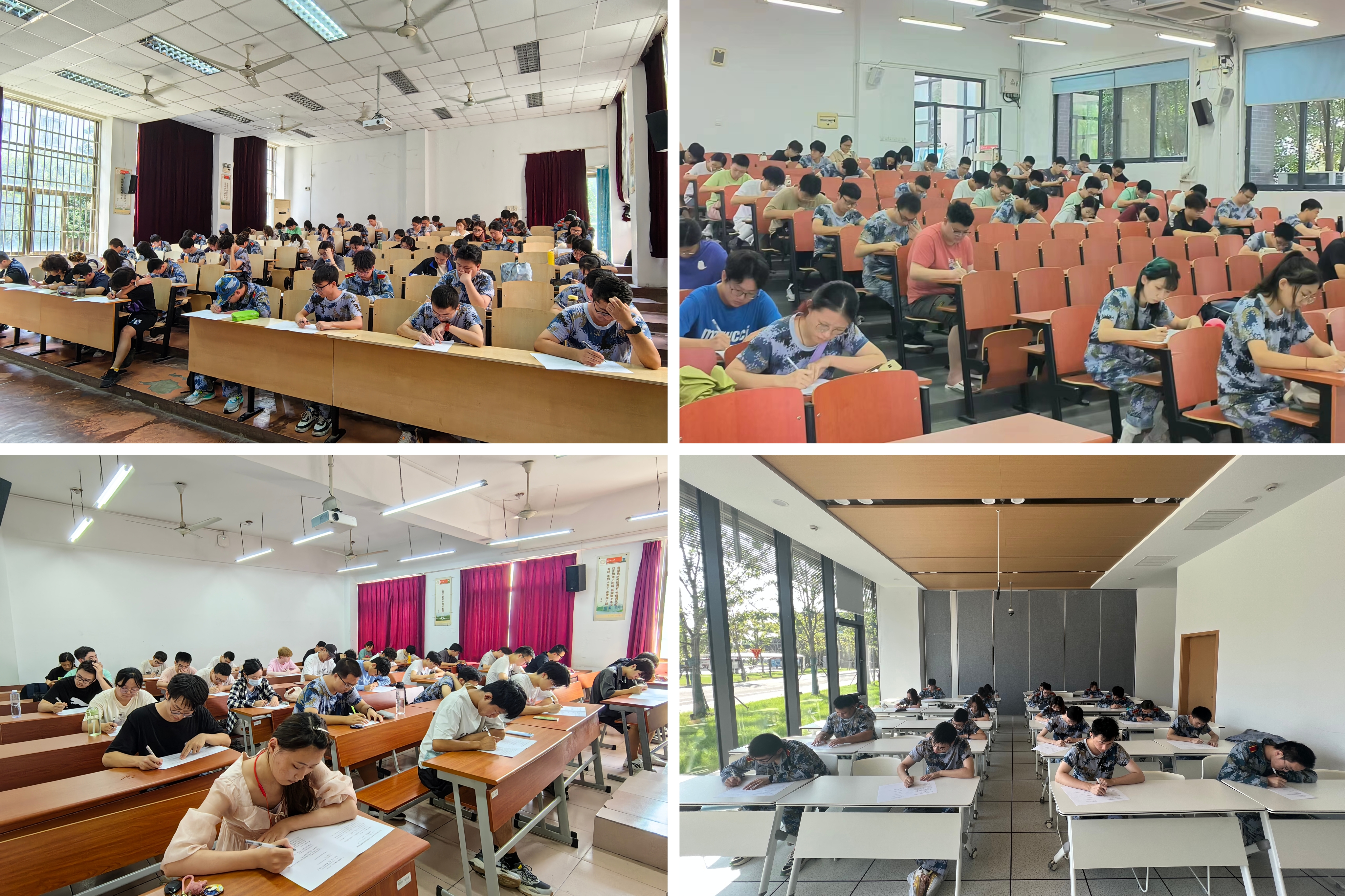 学生军训期间,我校分别组织了2021级、2022级和2023级学生进行理论抽考,督促学生在军事技能训练的同时,了解和掌握习近平强军思想、时事热点、军事理论知识等方面的内容。