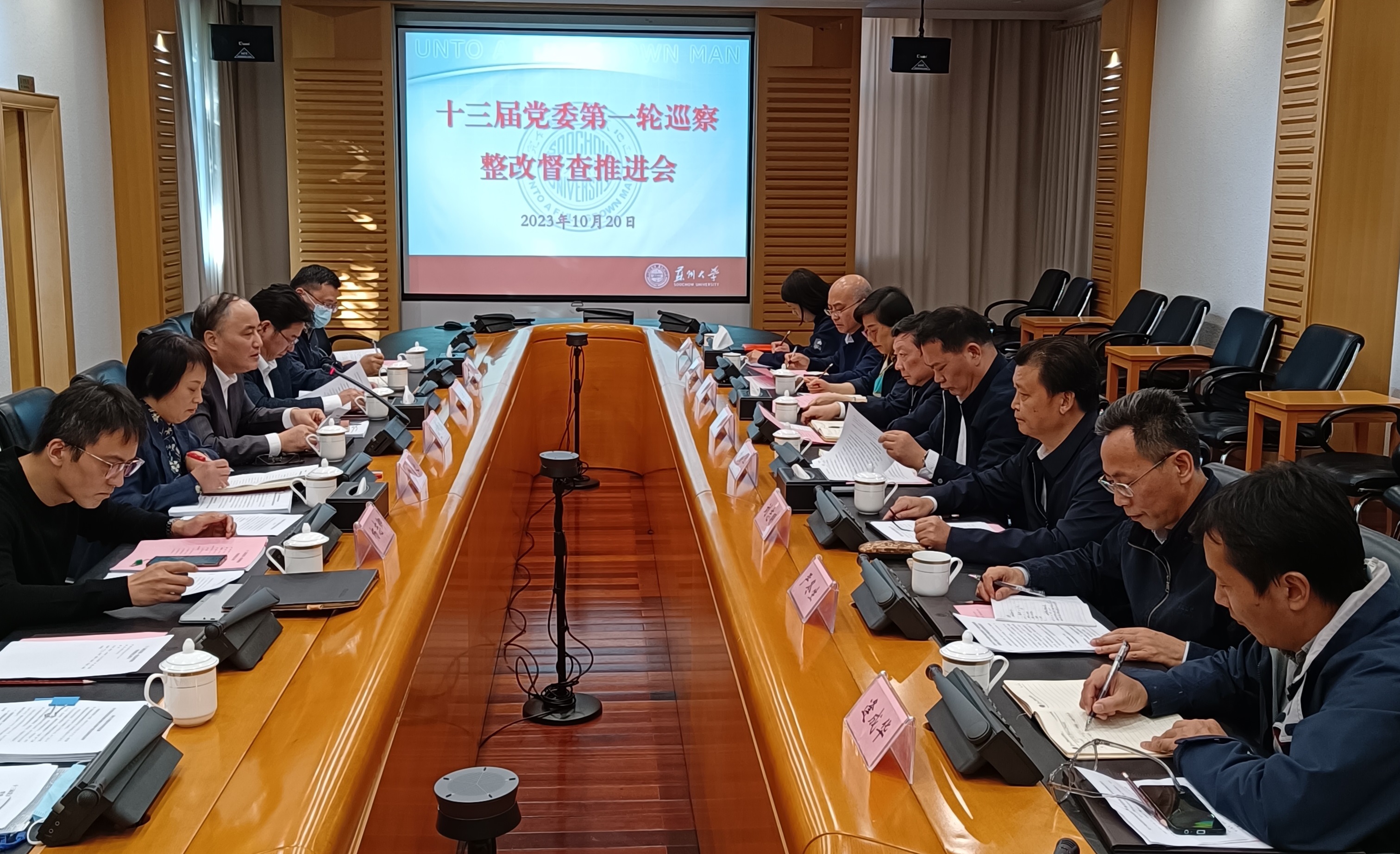 为加强巡察整改和成果运用,扎实做好巡察整改“后半篇文章”,10月20日下午,校党委常委、纪委书记、派驻监察专员、巡察工作领导小组副组长宫向阳在天赐庄校区红楼会议室主持召开校十三届党委第一轮巡察整改督查推进会。校党委常委、党委组织部部长王云杰,校纪委副书记陶培之,纪委办公室(巡察办公室)、监督检查处主要负责人,以及第一轮被巡察党组织书记参加会议。