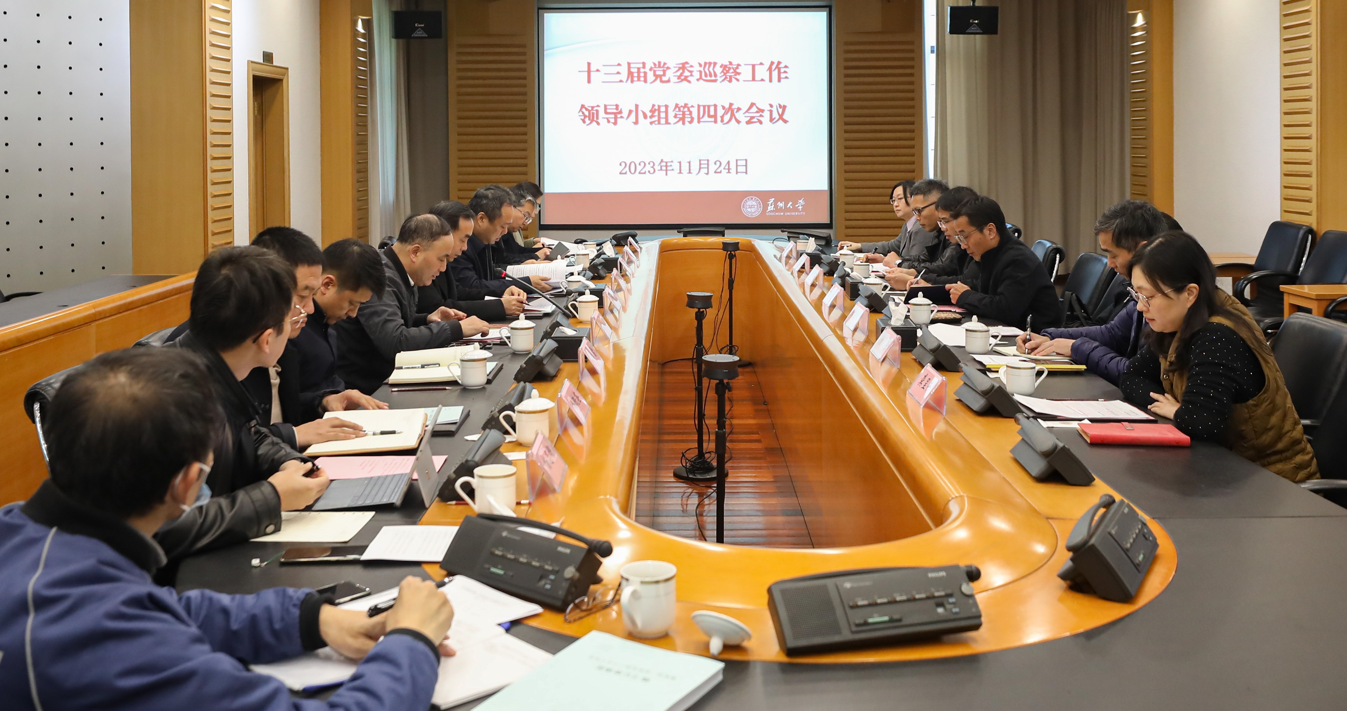 为深入推进校十三届党委第二轮巡察工作,11月24日上午,校党委巡察工作领导小组在红楼会议中心召开第四次会议。校党委书记张晓宏,校党委巡察工作领导小组成员出席会议,各巡察组组长、副组长,巡察办公室工作人员参加会议。会议由校党委常委、纪委书记、派驻监察专员、领导小组副组长宫向阳主持。