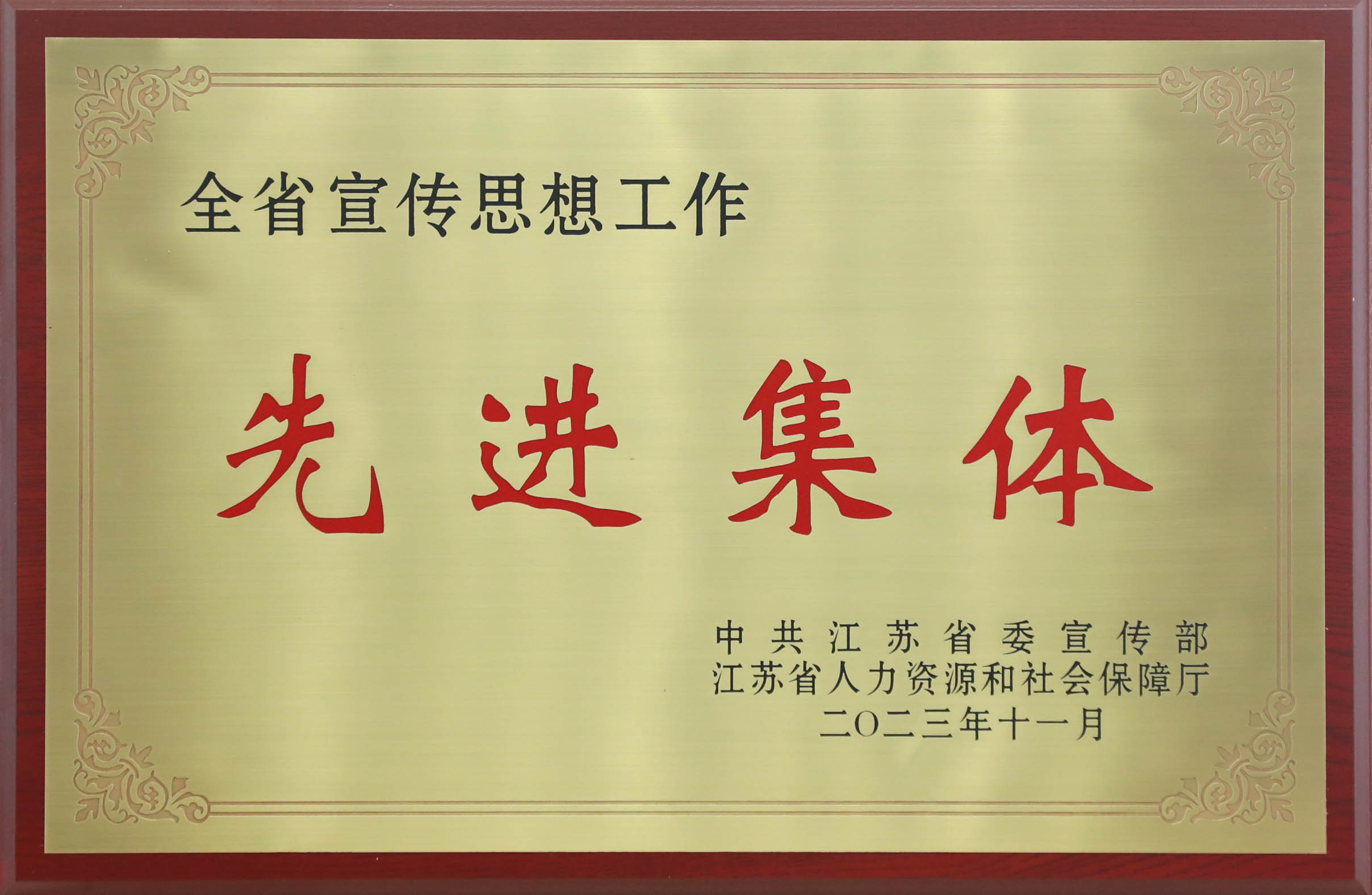 据悉,省委宣传部、省人力资源和社会保障厅此次共授予30 名同志“江苏省宣传系统先进工作者”称号,40个单位“江苏省宣传思想工作先进集体”称号,120名同志“江苏省优秀宣传思想工作者”称号。该奖项每五年评选表彰一次,我校党委宣传部是省属高校中唯一获此荣誉的单位。