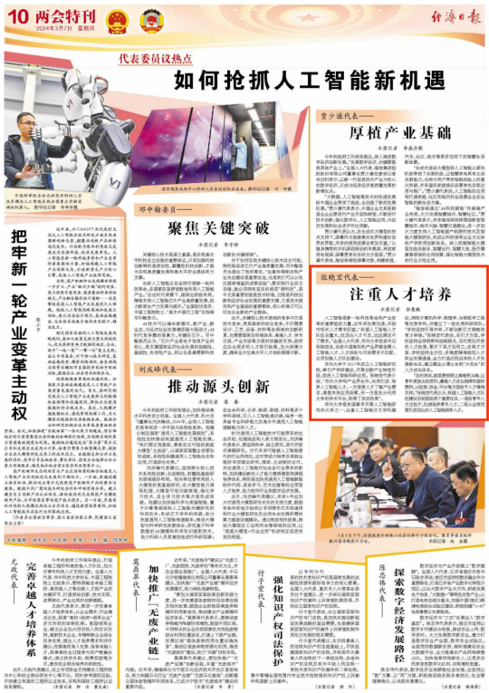 《经济日报》:张晓宏代表——注重人才培养