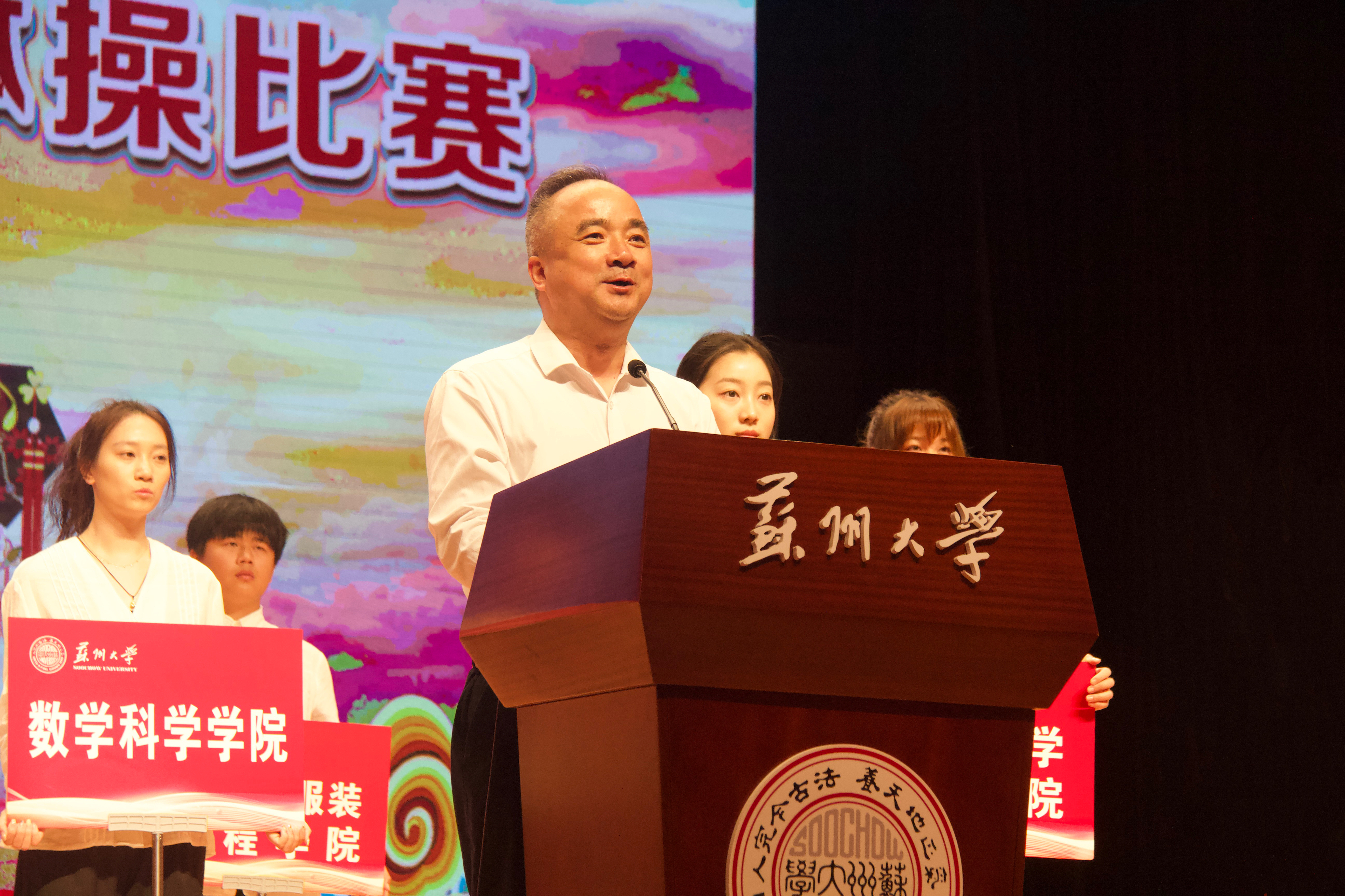 为弘扬中华优秀传统文化,丰富学生精神文化生活,促进我校戏曲进校园常态化、普及化,向学校建校124周年献礼,5月18日,由校体育运动委员会、艺术教育中心联合主办,校学生艺术联合会承办的苏州大学第六届戏曲广播体操比赛在天赐庄校区存菊堂举办。校党委常委、副校长查佐明,相关职能部门和学院(部)负责人出席活动。比赛得到了各学院(部)的大力支持与广大学生的积极参与,共有来自26个学院(部)的近600名同学参加比赛。