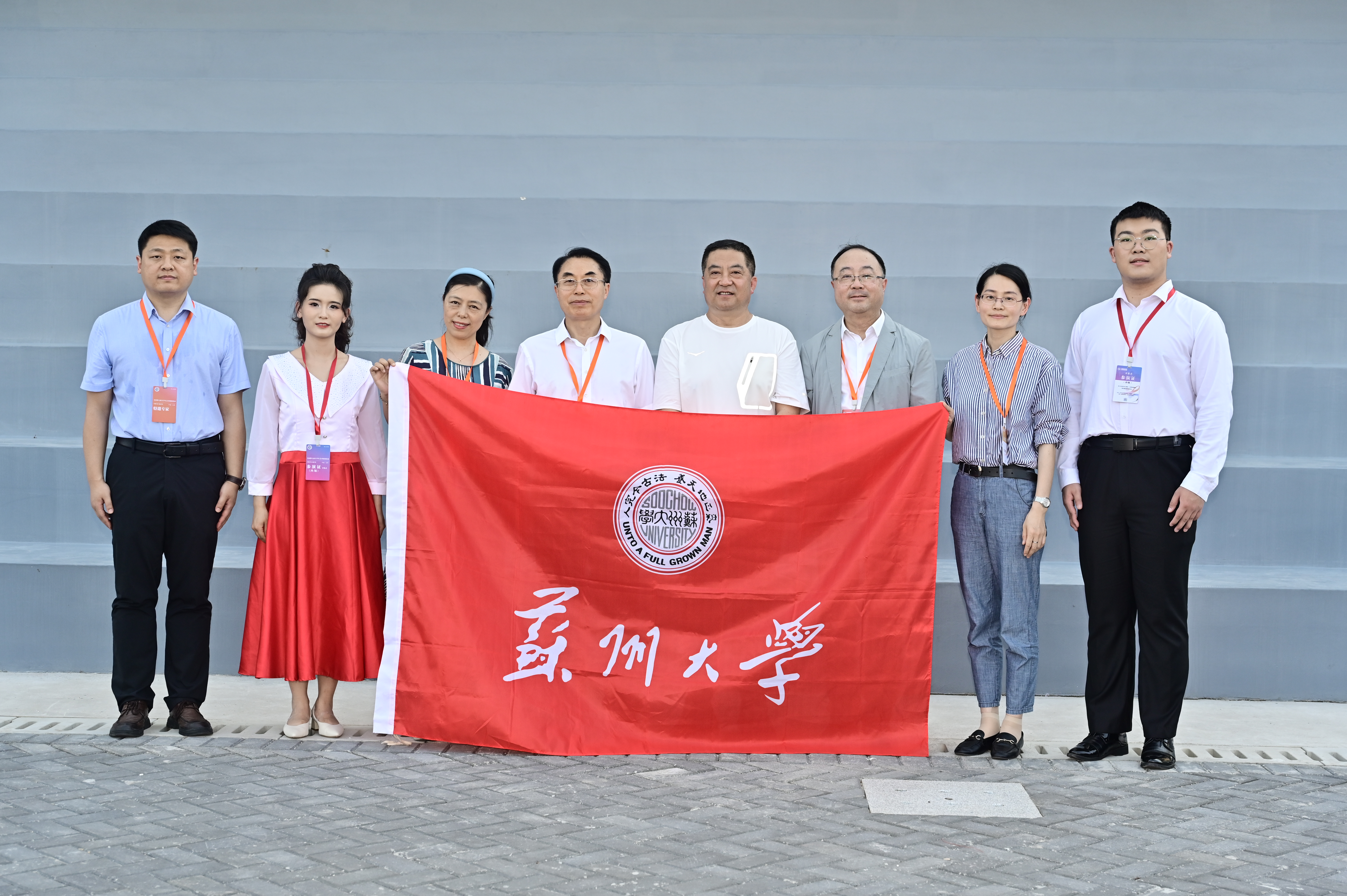我校高度重视、积极备战本届全国大学生艺术展演,共派出由130余名师生组成的展演队伍,规模是历届之最。全体参演人员以高昂的斗志、坚定的步伐、充满活力的状态,借助深刻反映国家、学校和中华优秀传统文化内涵的一系列原创作品,展现了“苏大精神”的独特魅力。展演期间,省教育厅二级巡视员李金泉专程到活动现场看望慰问我校展演师生代表,与大家合影留念并加油鼓劲。