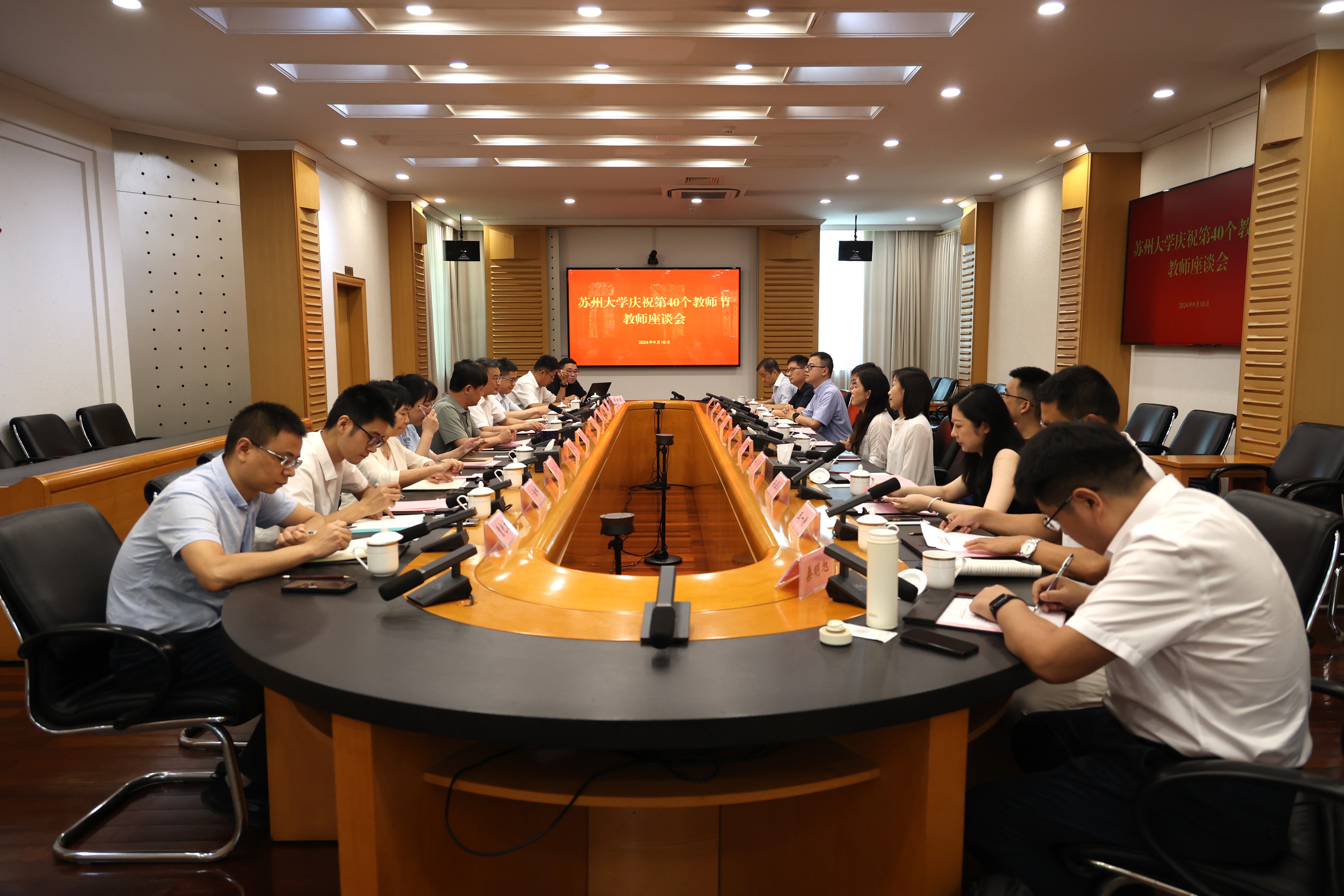 9月10日下午,苏州大学庆祝第40个教师节表彰大会暨教职工荣休仪式在天赐庄校区存菊堂举行。校党委书记张晓宏,校长、中国工程院院士应汉杰,在校校领导,部分院士,“立德树人奖教金”获奖教师,荣休教职工以及工作满30年的教职工代表,各学院(部)、部门、直属单位主要负责人,教职工代表,学生代表参加会议。会议由校党委副书记邓敏主持。