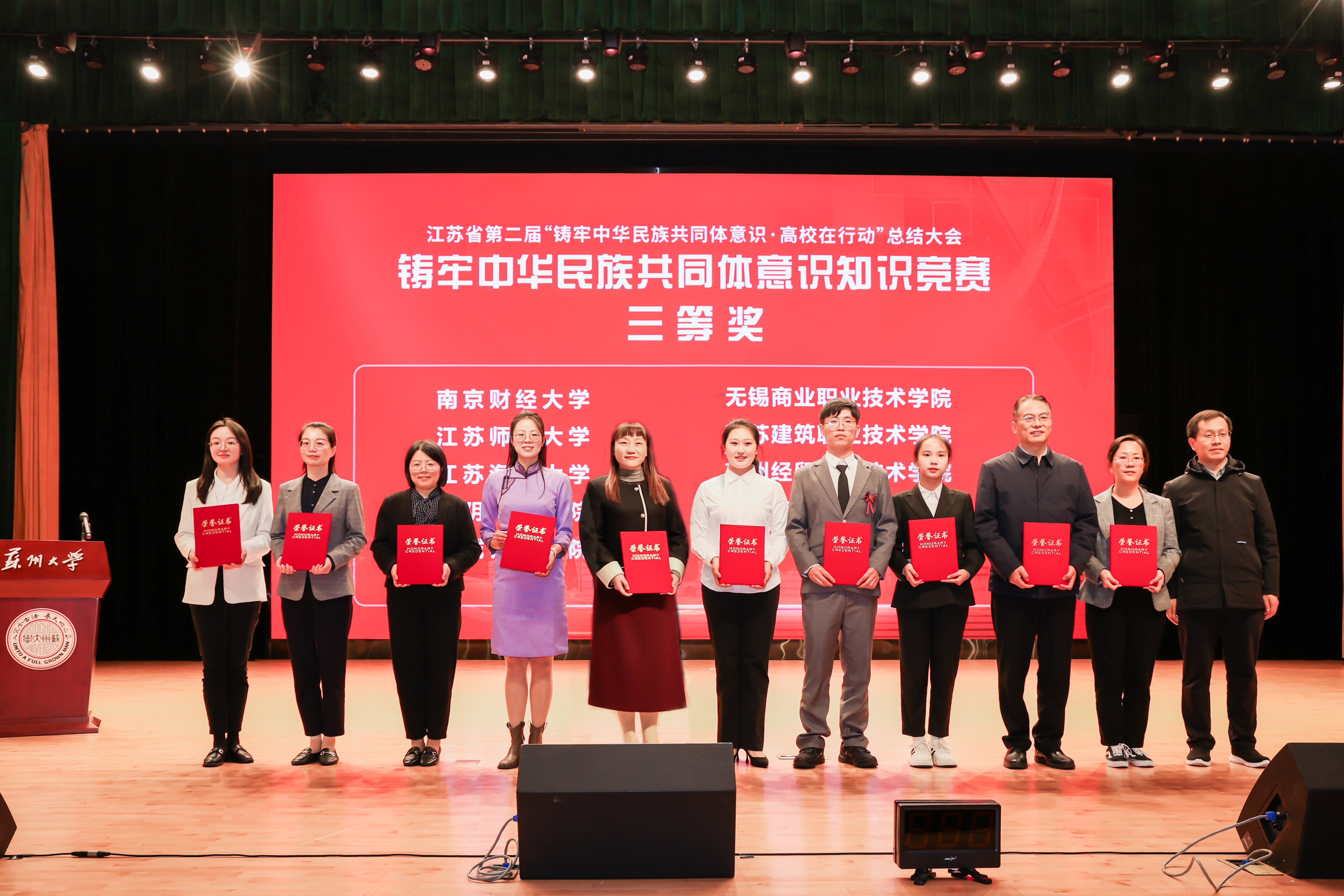 活动现场举行了铸牢中华民族共同体意识知识竞赛决赛。在全省初赛中脱颖而出的8所本科院校和8所高职院校,通过决赛现场必答、抢答和风险题三轮激烈角逐,产生2名一等奖、4名二等奖和10名三等奖。江苏第二师范学院“彩虹伞·儿童学园”作为“十佳”社团代表,分享了他们在构建中华民族共有精神家园、探索民族团结进步教育方面取得的成效。